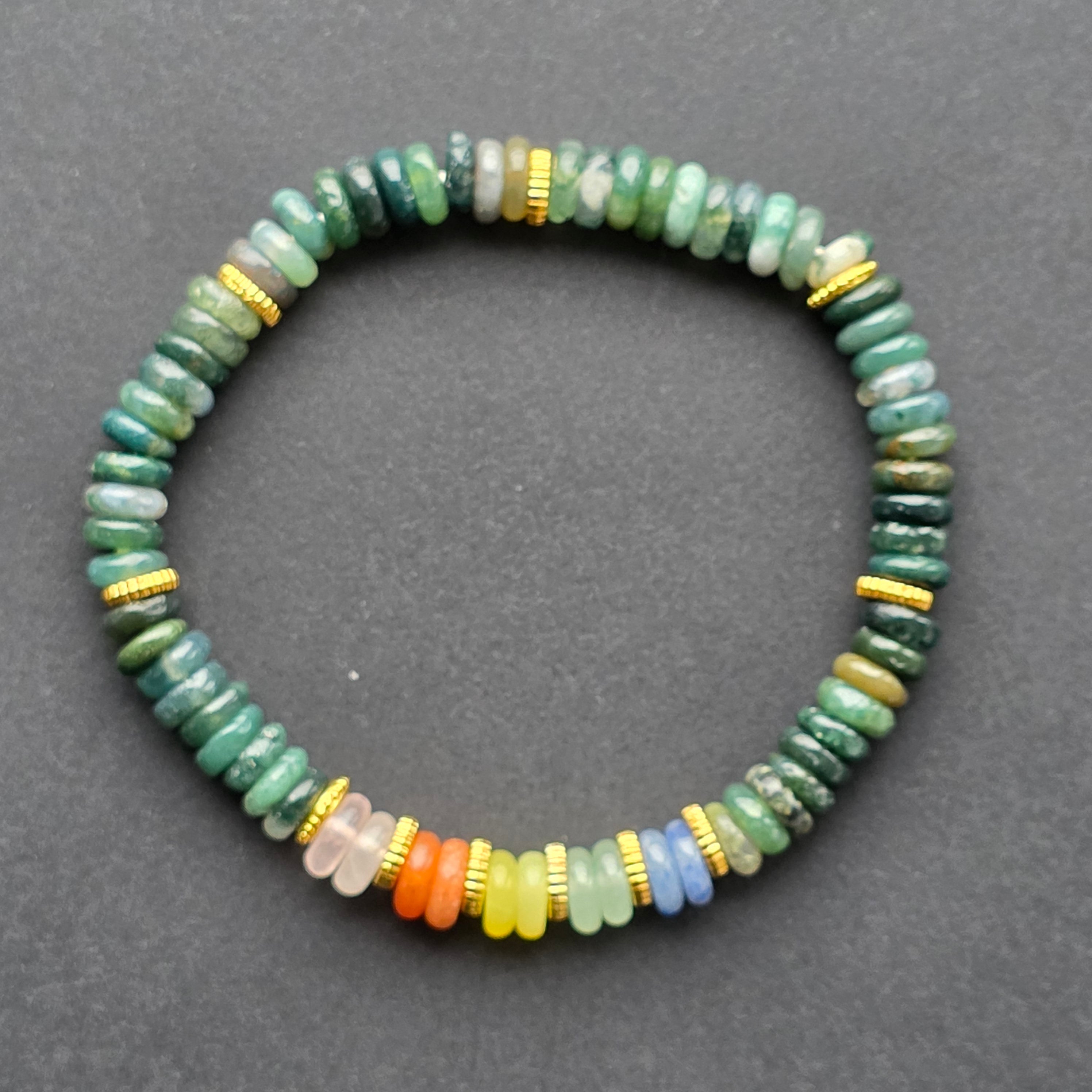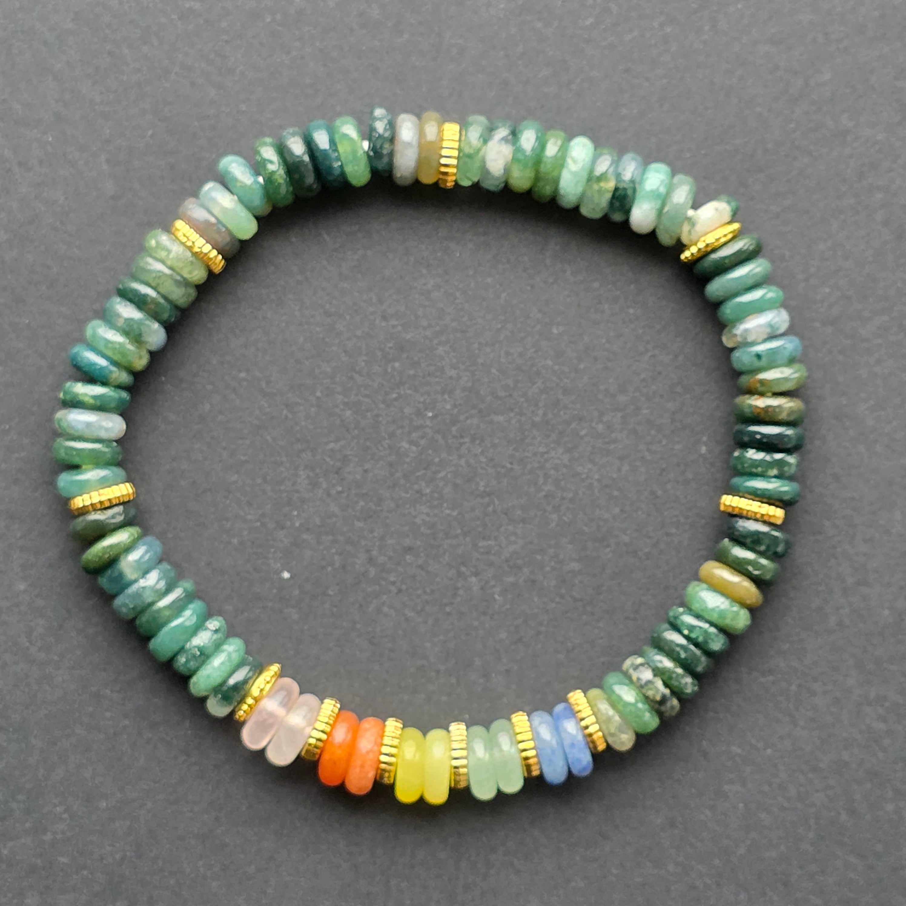 Description - Bratara discuri agat muschi moss | 7 chakre