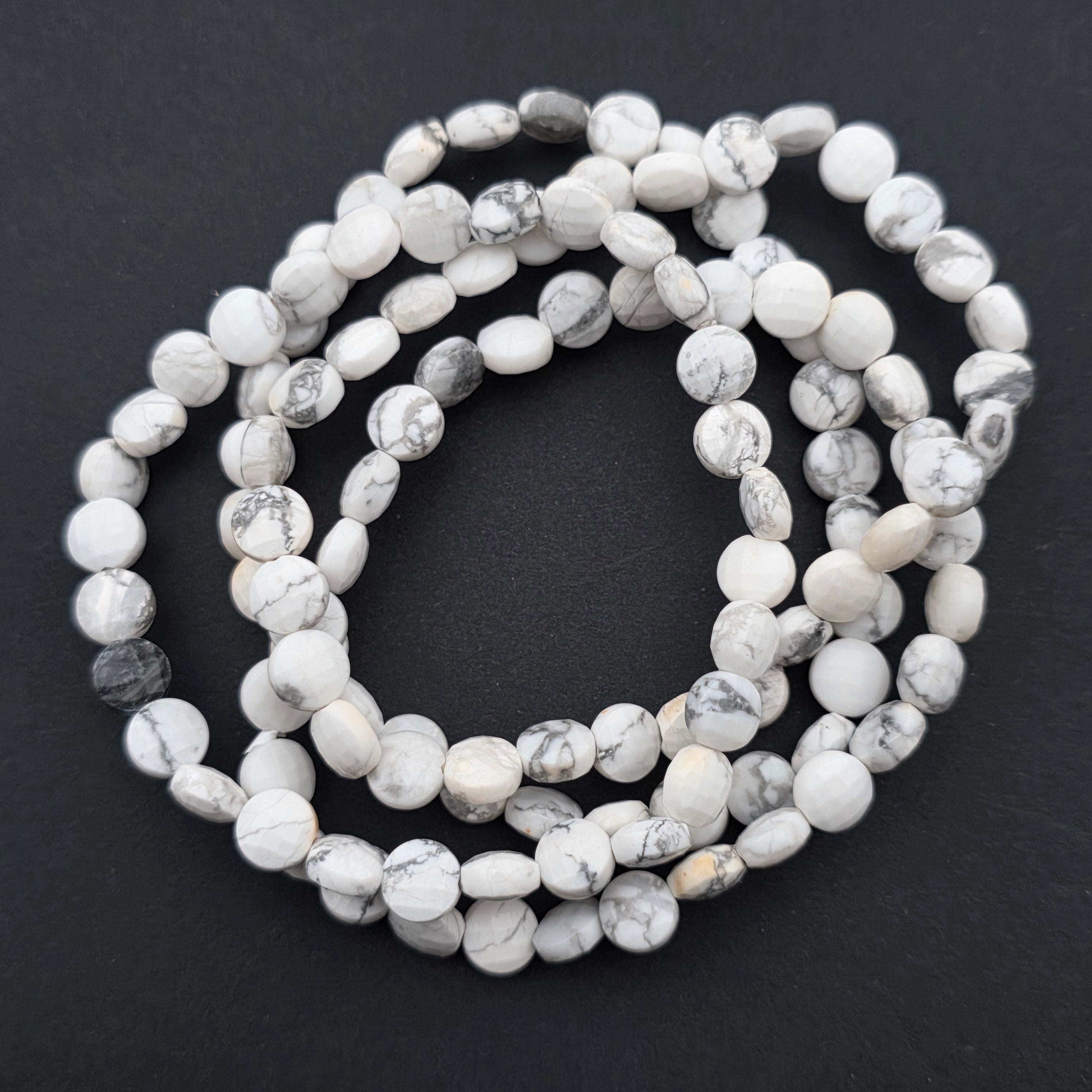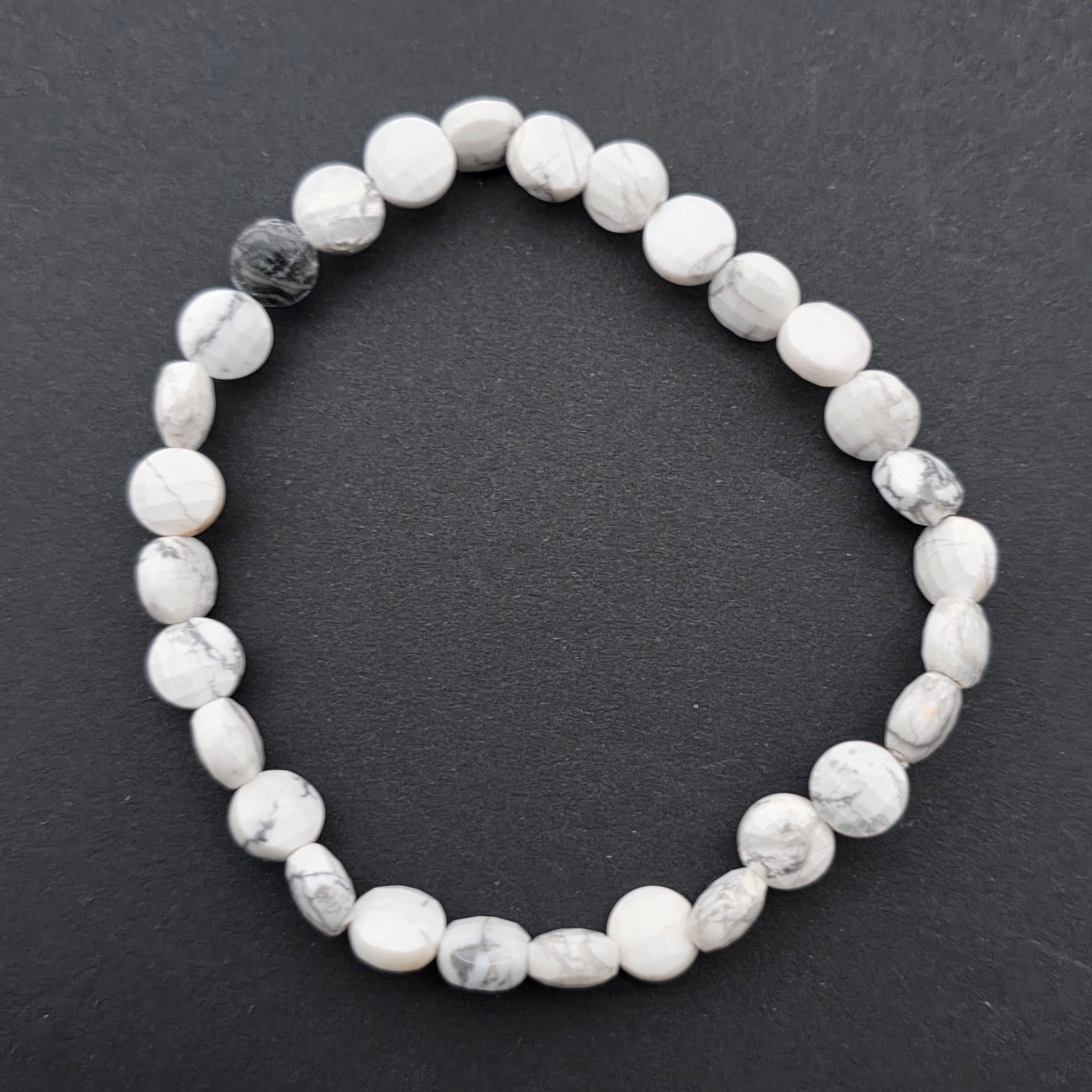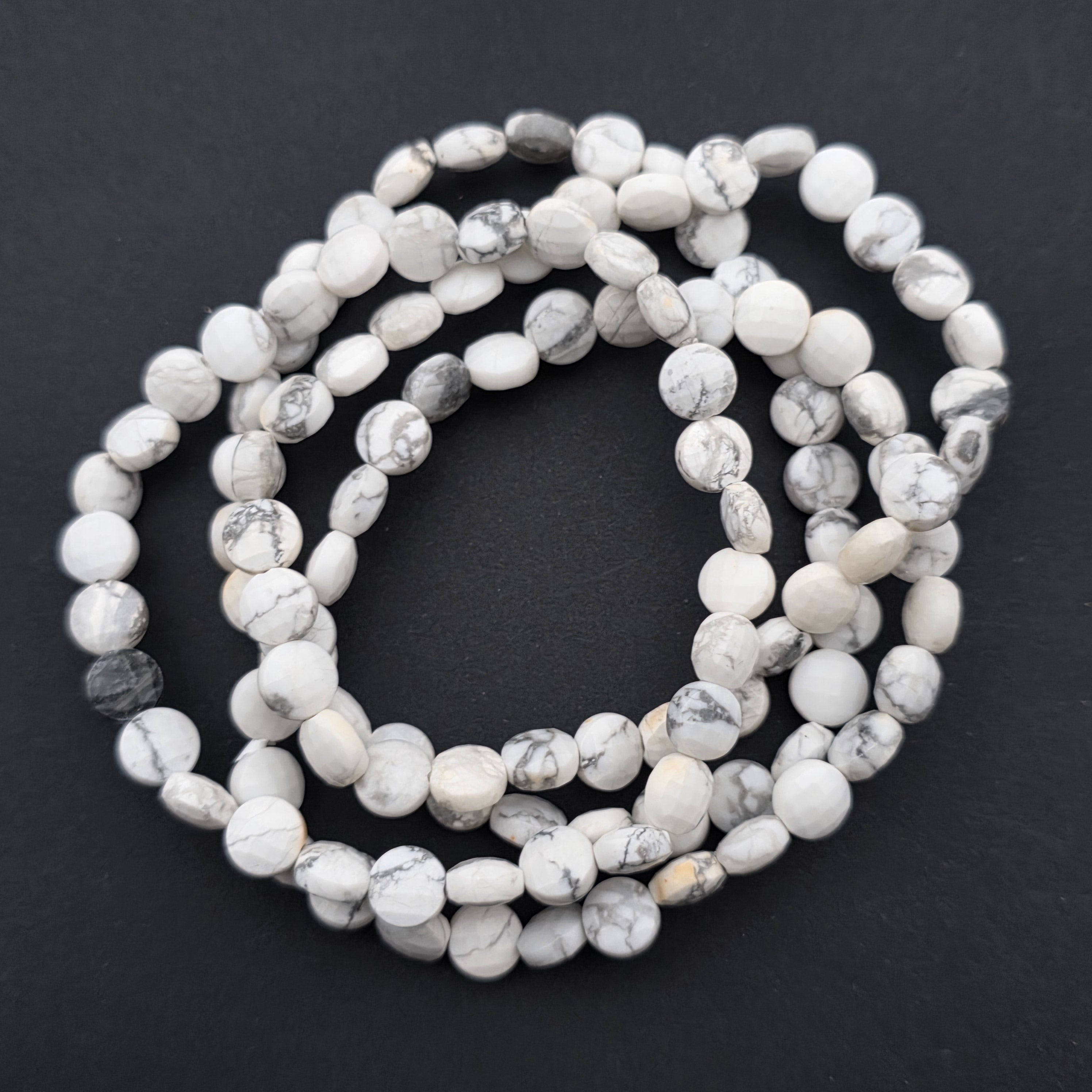 Description - Bratara discuri ovale fatetate howlit alb 6x4 mm