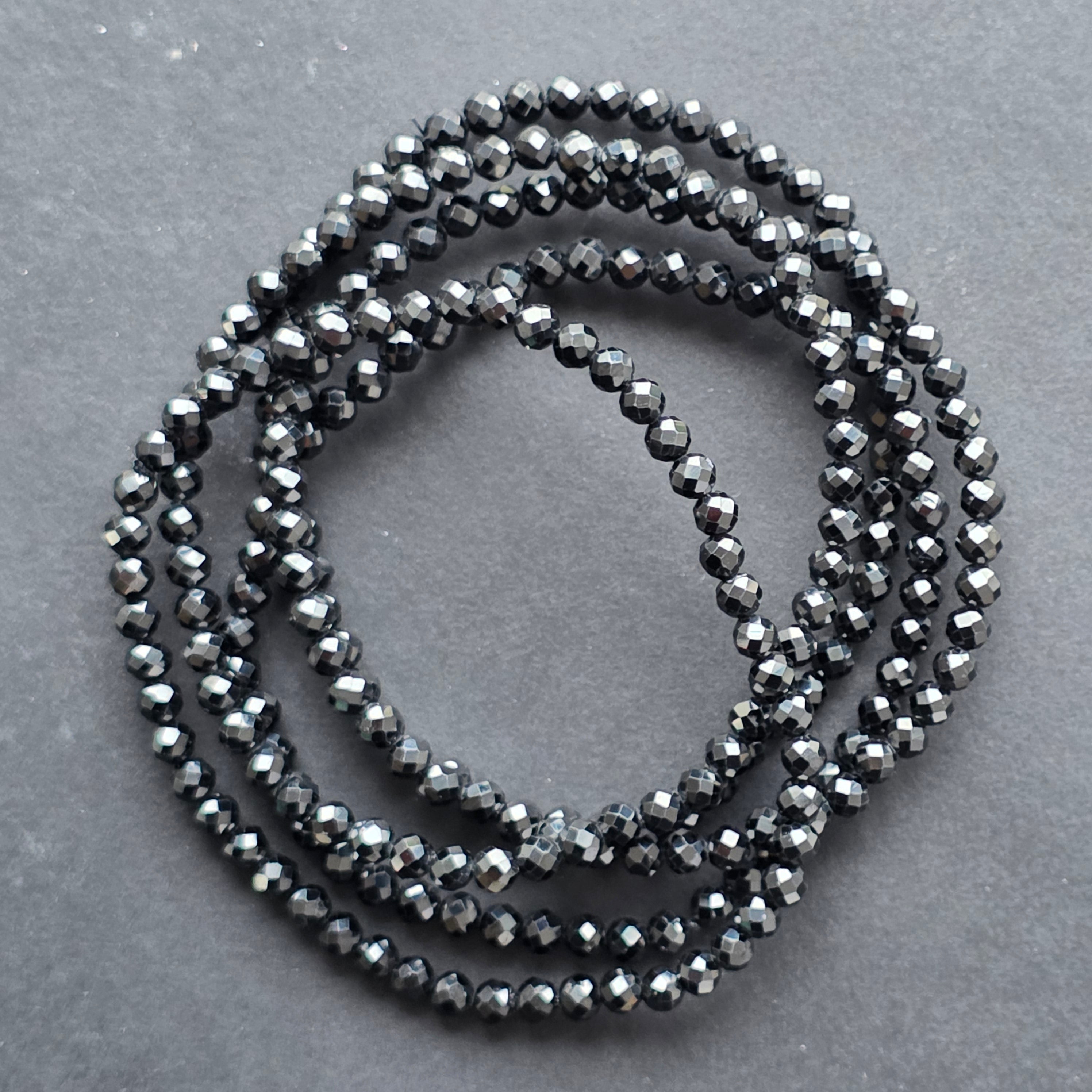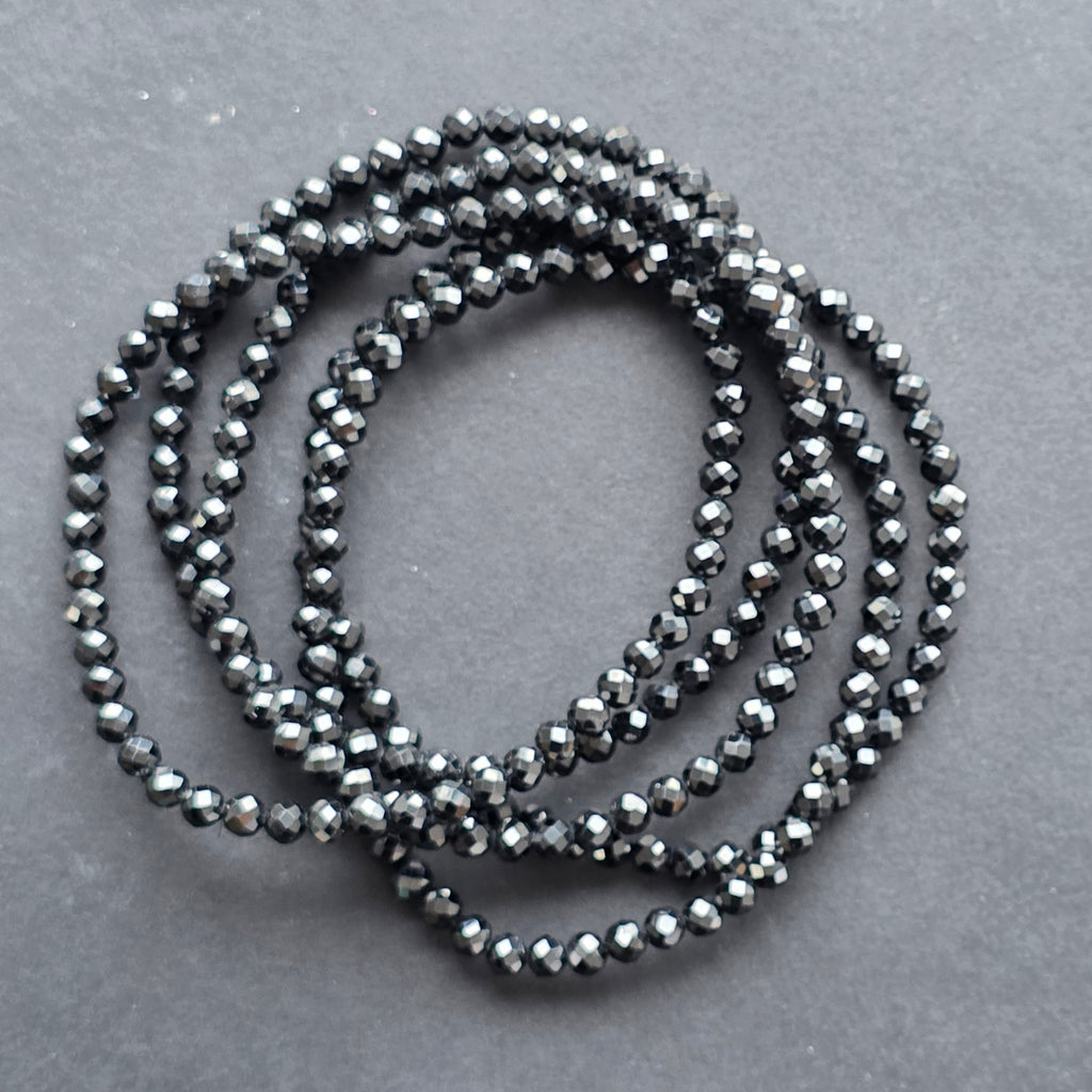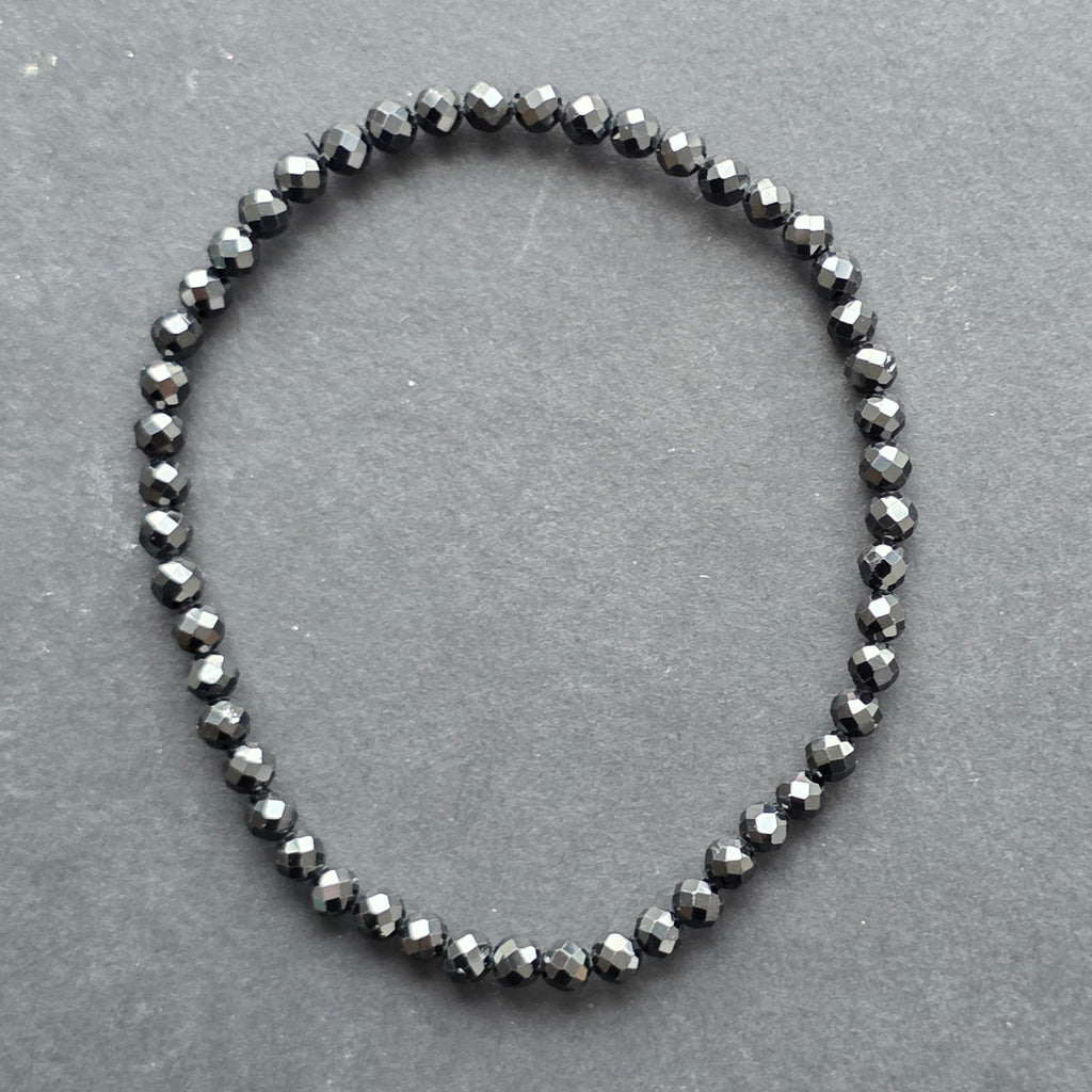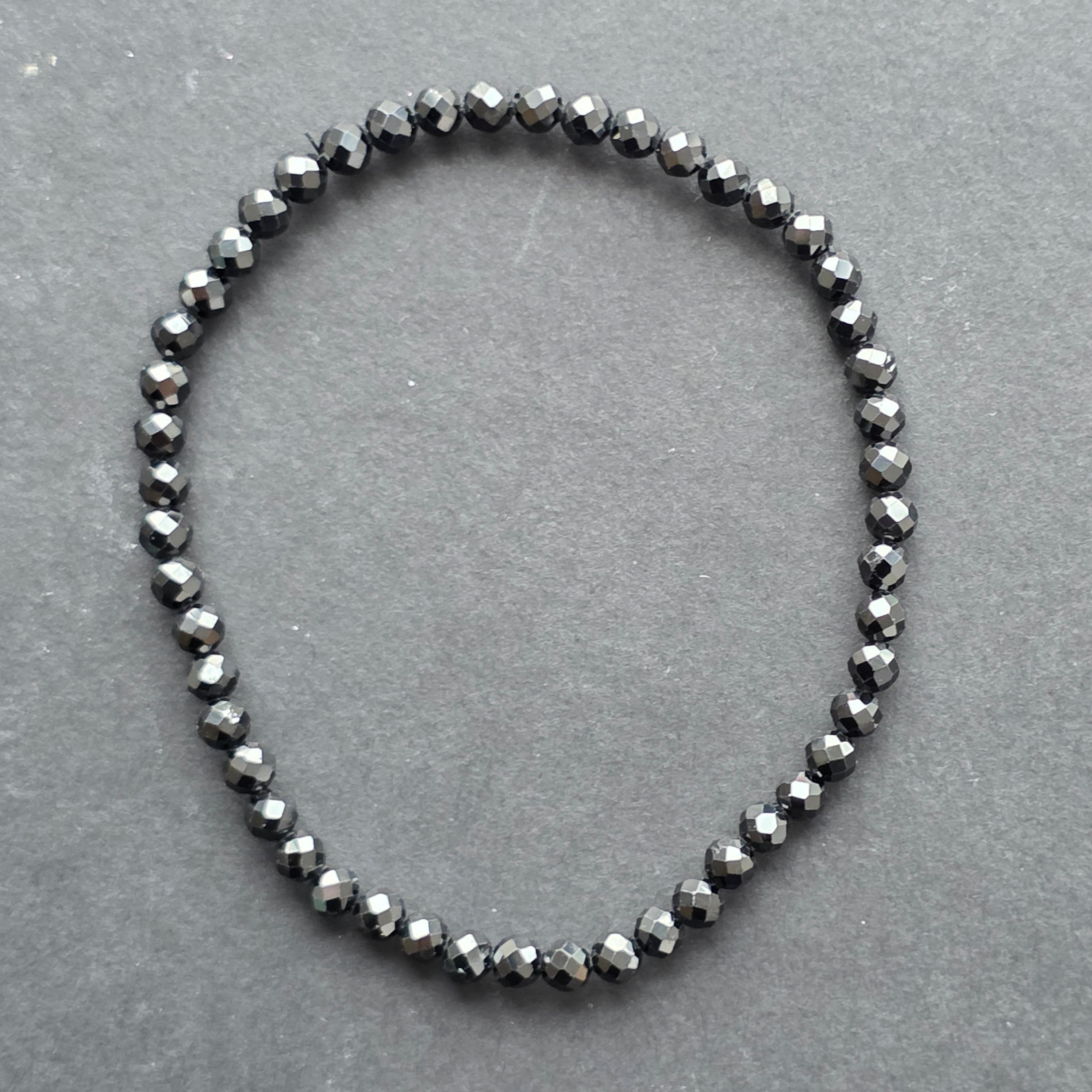 O bijuterie fină, dar cu o prezență puternică – această brățară din spinel natural, cu mărgele fațetate de 4 mm, dezvăluie o strălucire profundă, misterioasă, asemenea unui cer de noapte în care se reflectă lumina stelelor. Fiecare fațetă captează lumina diferit, creând un joc subtil de umbre și reflexe argintii.