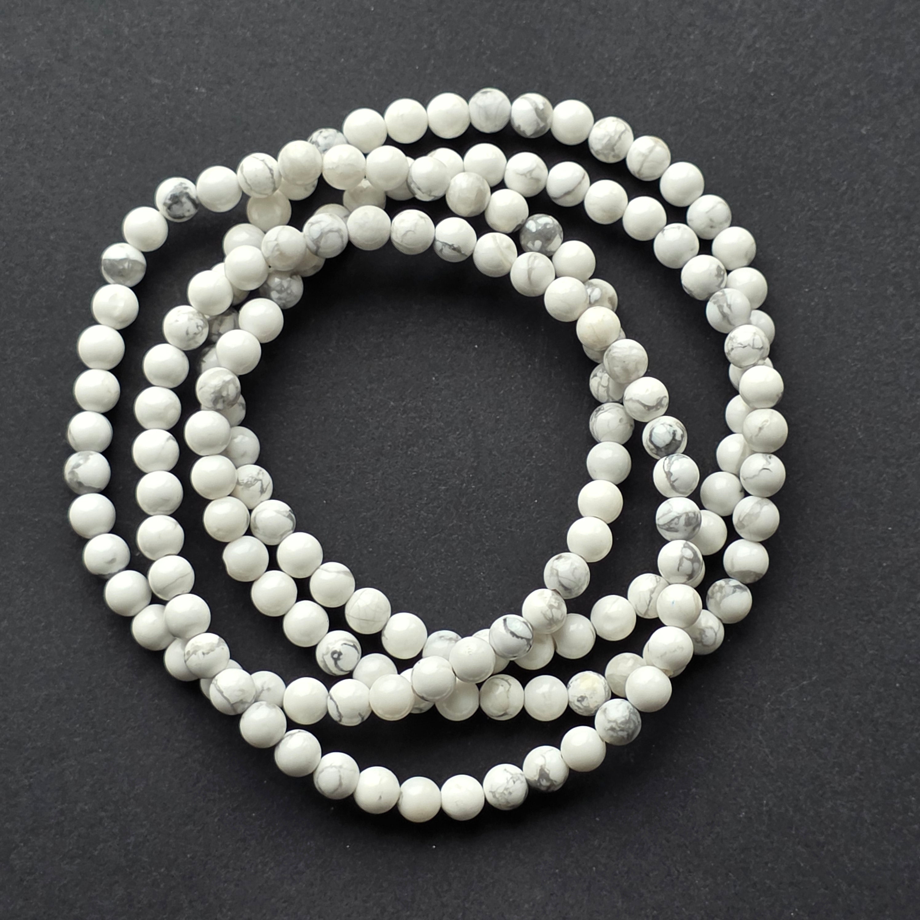 Brățara realizată din mărgele mici de 4–5 mm are o prezență subtilă, rafinată. Albul cremos al pietrei contrastează cu liniile gri, creând un efect vizual natural și organic, specific howlitului autentic. Este un accesoriu care nu caută să iasă în evidență prin intensitate, ci prin simplitatea lui calmă – un detaliu discret, dar plin de personalitate.