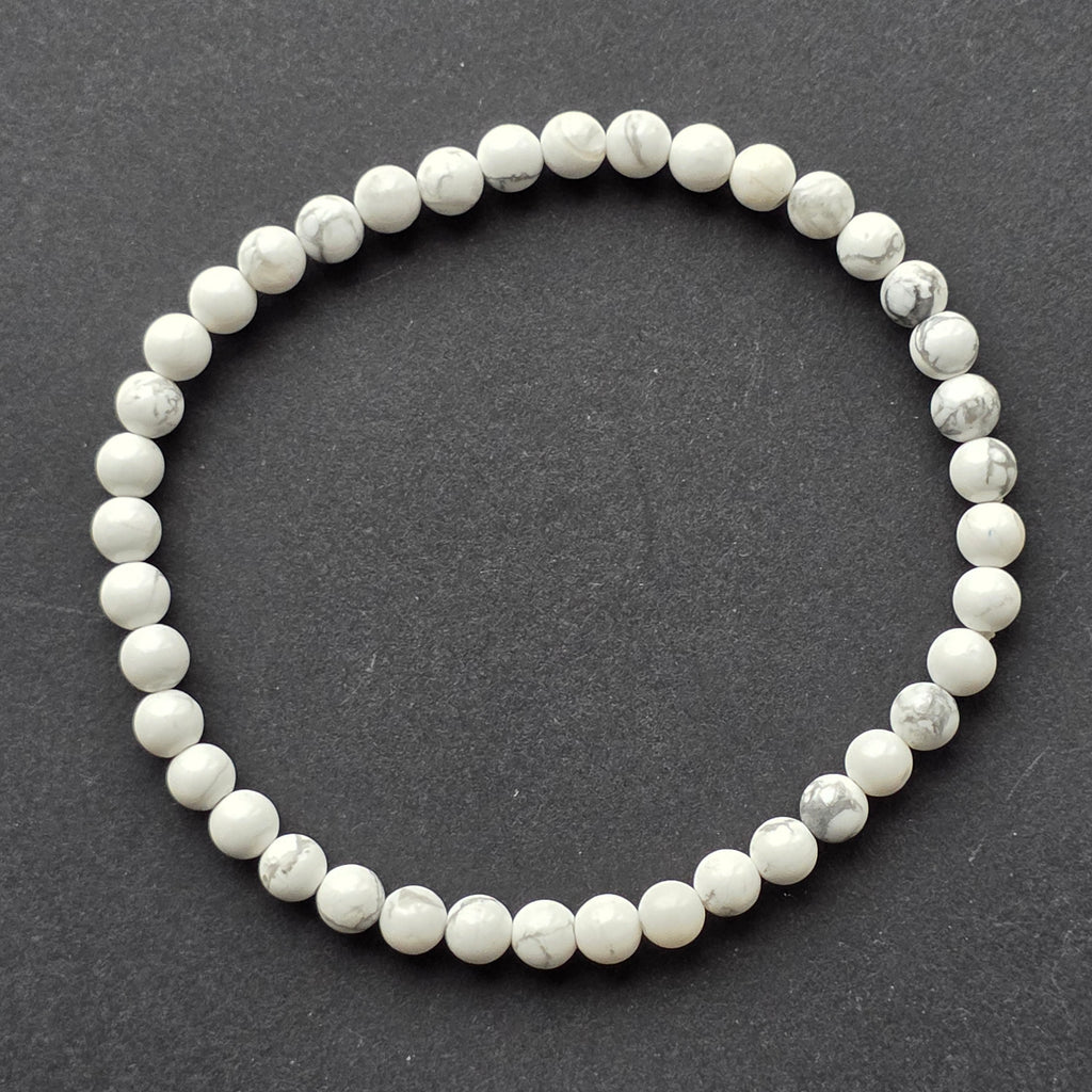 Howlitul alb este o piatră cu o frumusețe liniștită și minimalistă, cunoscută pentru venaturile sale gri fine, ca niște schițe delicate trase peste o suprafață de porțelan mat. Fiecare mărgea păstrează un desen unic, iar împreună formează o brățară armonioasă, luminoasă și ușor de purtat, potrivită atât pentru stiluri elegante, cât și pentru cele casual.