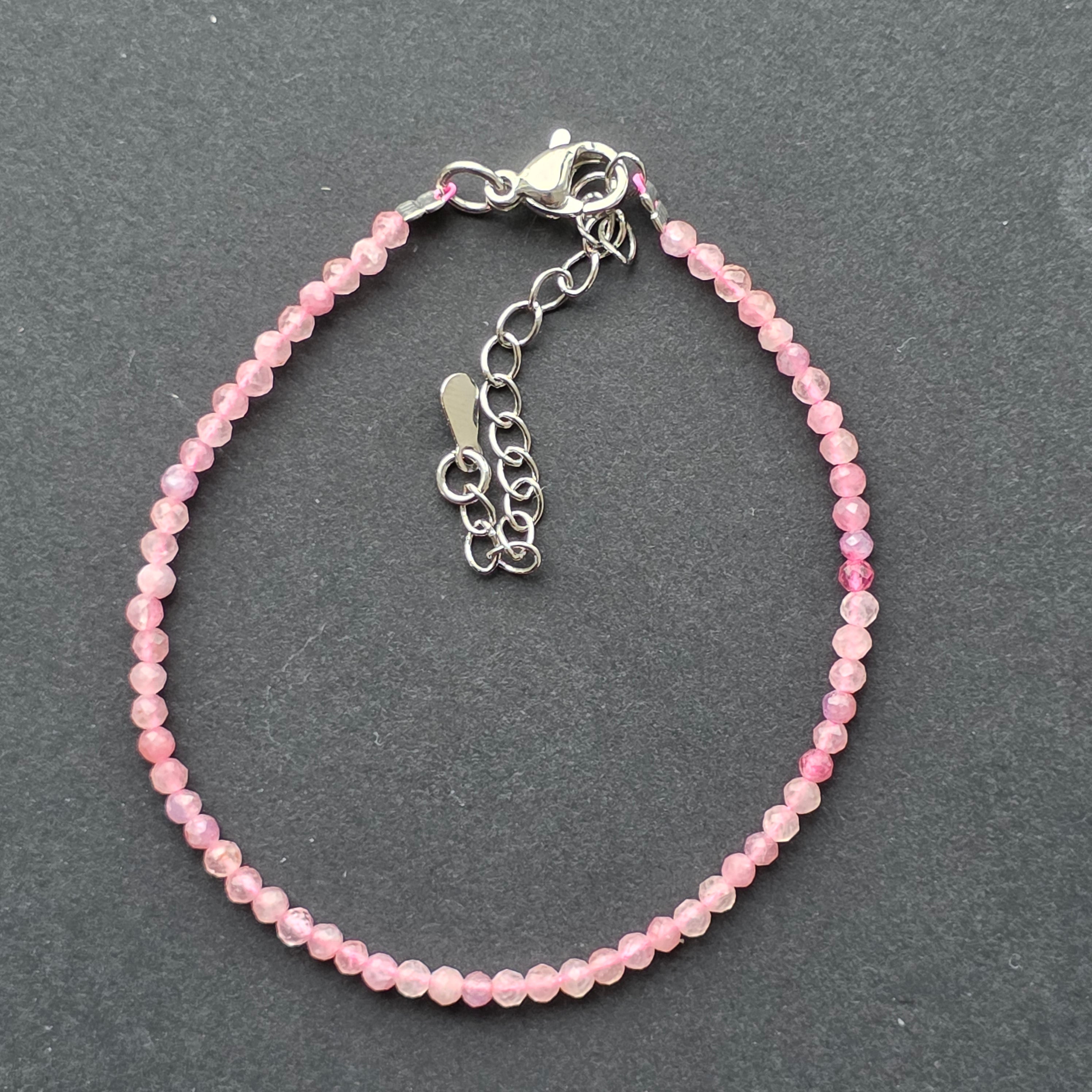 Cuartul roz este una dintre cele mai îndrăgite pietre ale lumii minerale, cunoscut pentru delicatețea și lumina sa caldă. În această variantă „mix”, fiecare mărgea păstrează o nuanță ușor diferită — de la roz lapte foarte deschis până la rose pudrat sau transparent, ca reflexele unei dimineți liniștite. Cu dimensiuni fine de doar 2 mm, mărgelele fațetate surprind lumina într-un mod discret, asemenea unor picături ce pulsează cu blândețe.