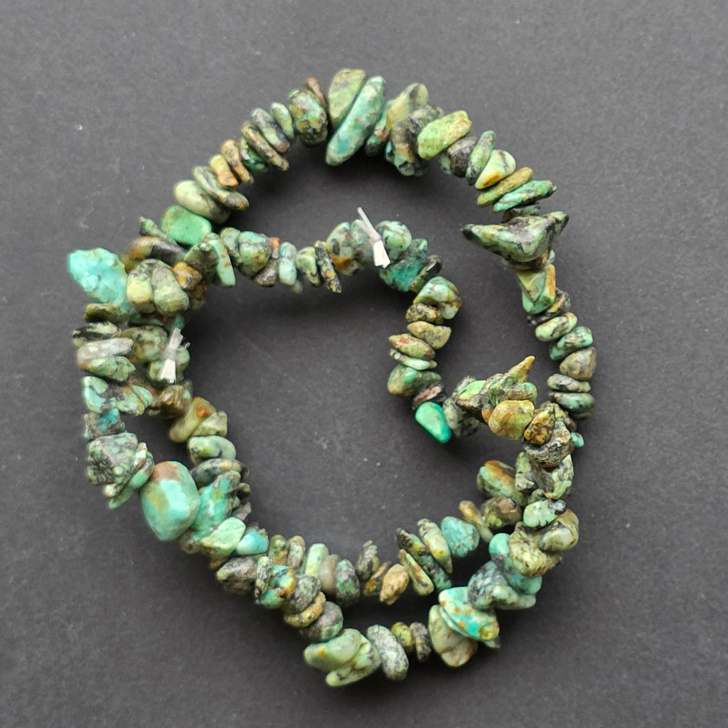 • Piatra: turcoaz african (African Turquoise) – chipsuri neregulate, șlefuite manual