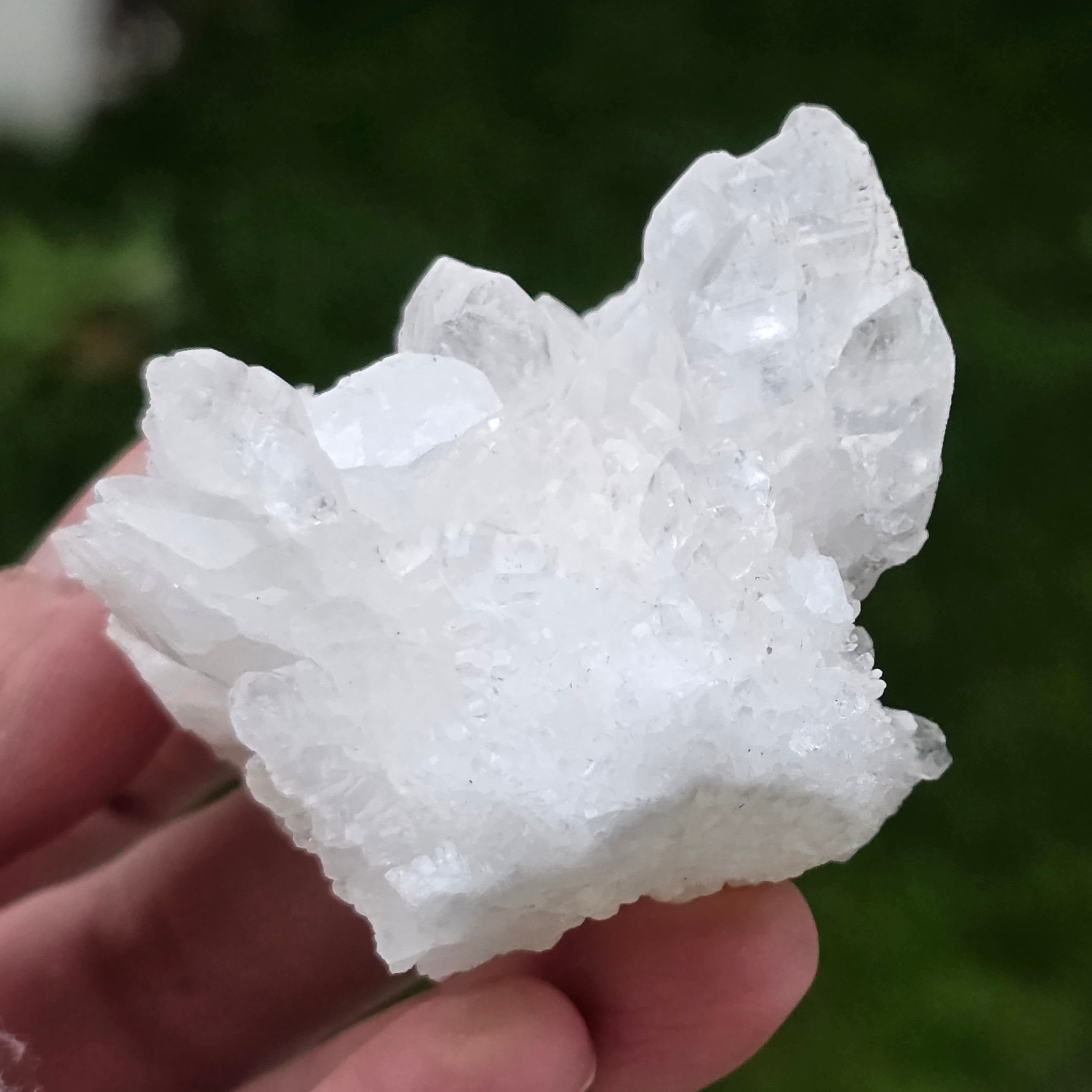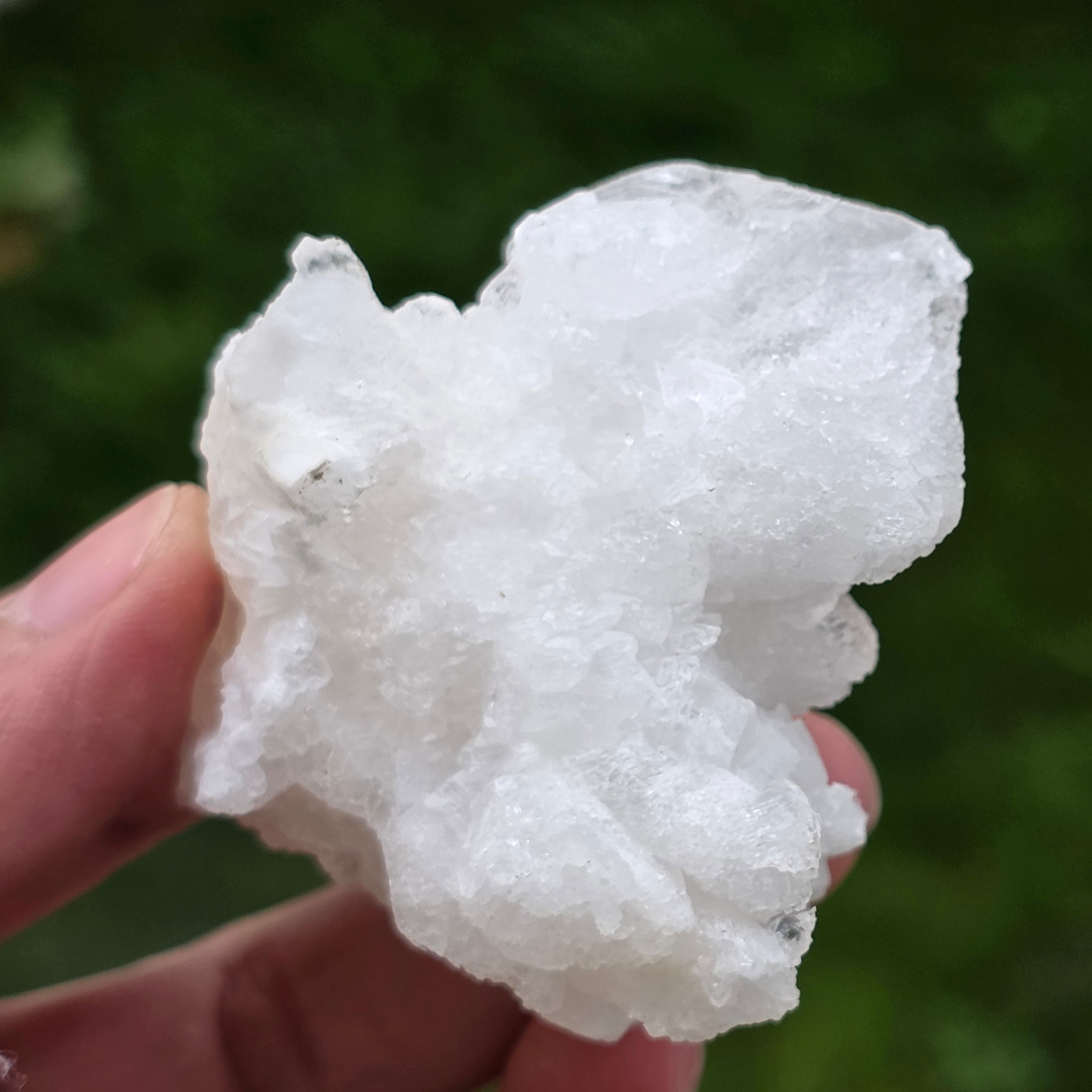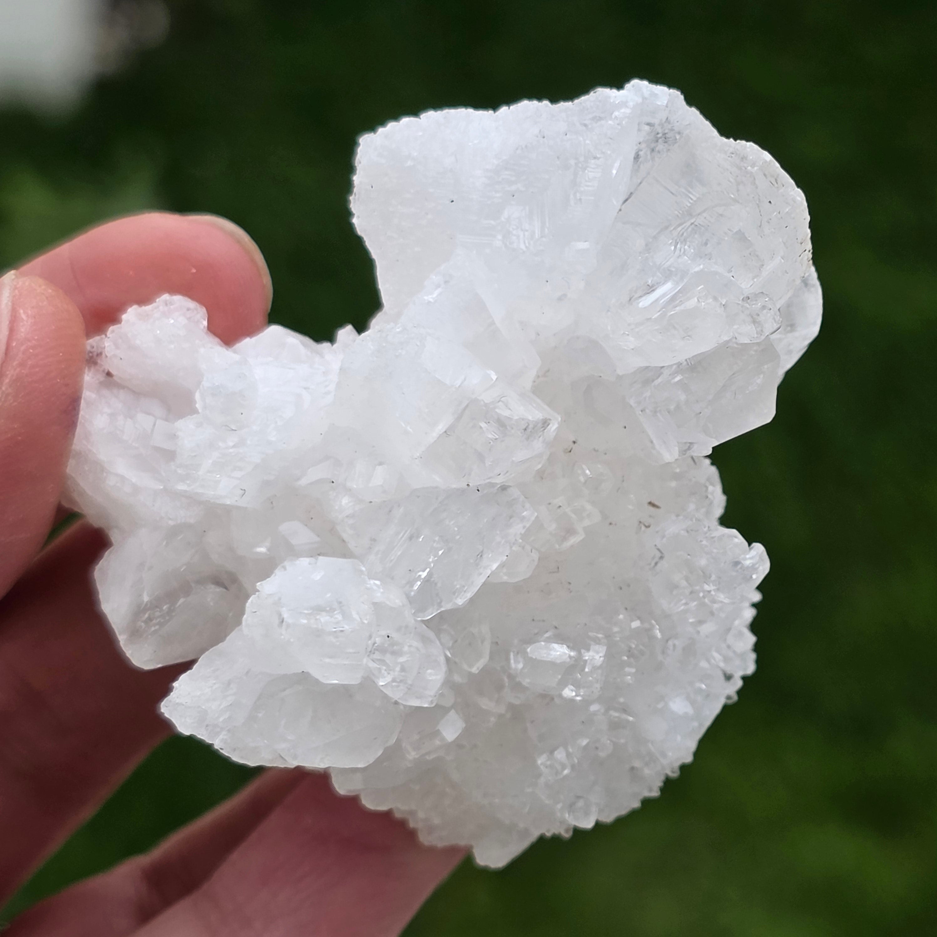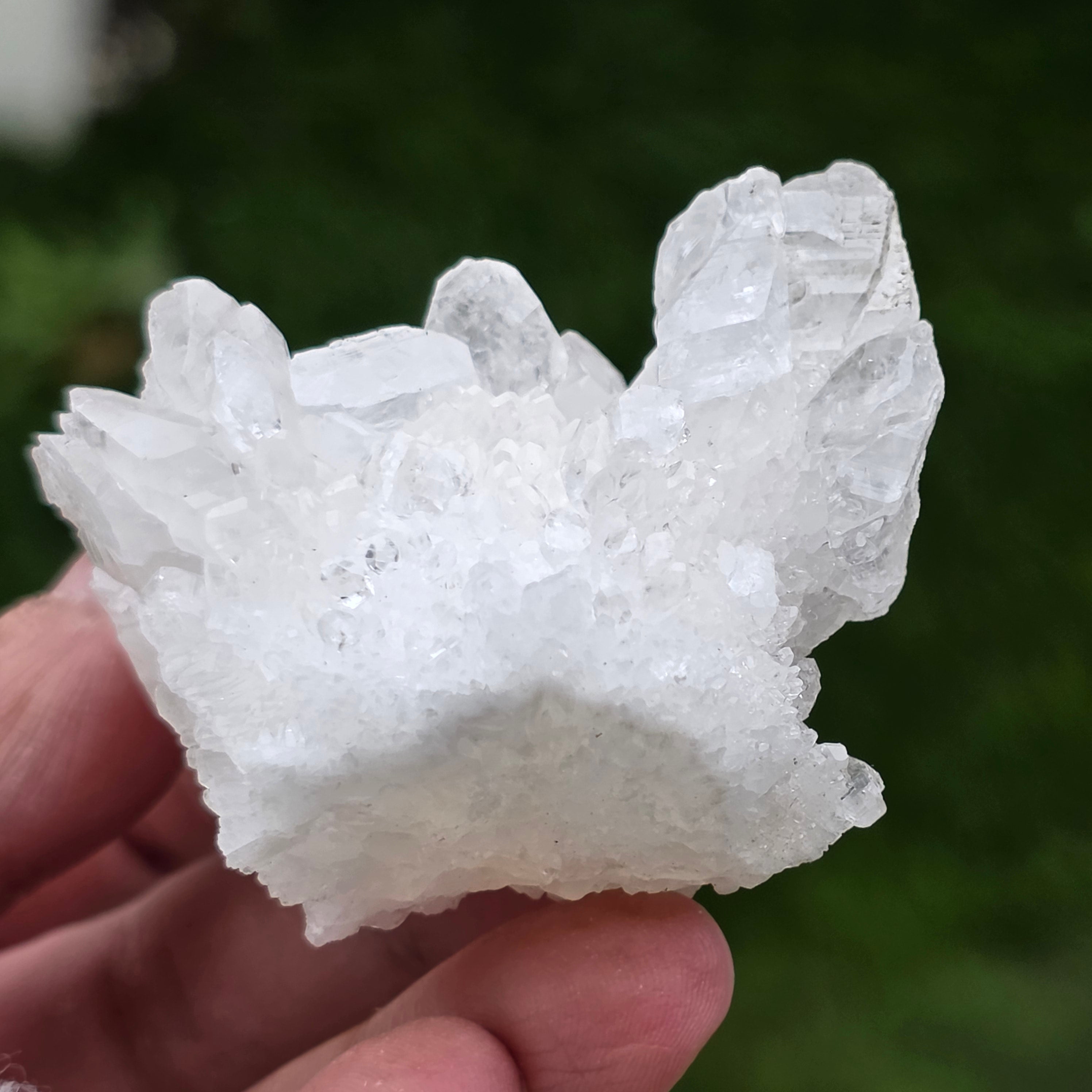 Cristalele sunt dispuse în structuri neregulate, rotunjite, cu suprafețe ușor sclipitoare, amintind de formațiuni întâlnite în interiorul peșterilor. Textura bogată și volumul bine definit conferă fiecărui exemplar un caracter autentic și expresiv, foarte apreciat în colecțiile de minerale și ca piesă decorativă naturală.