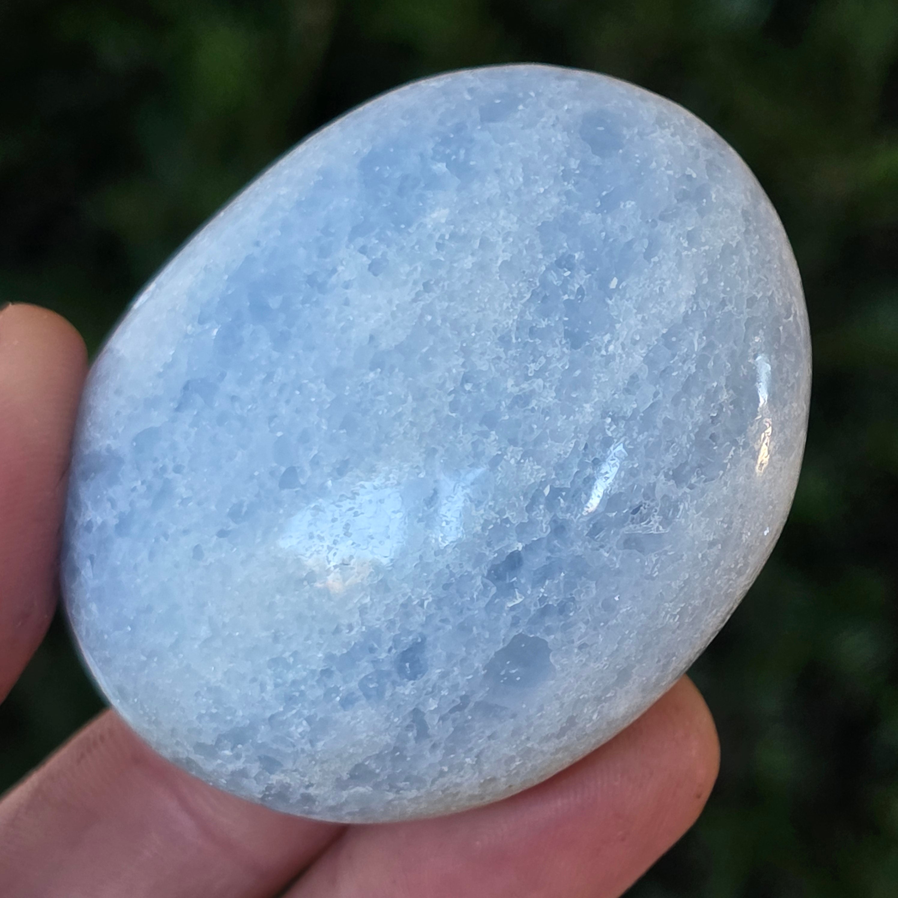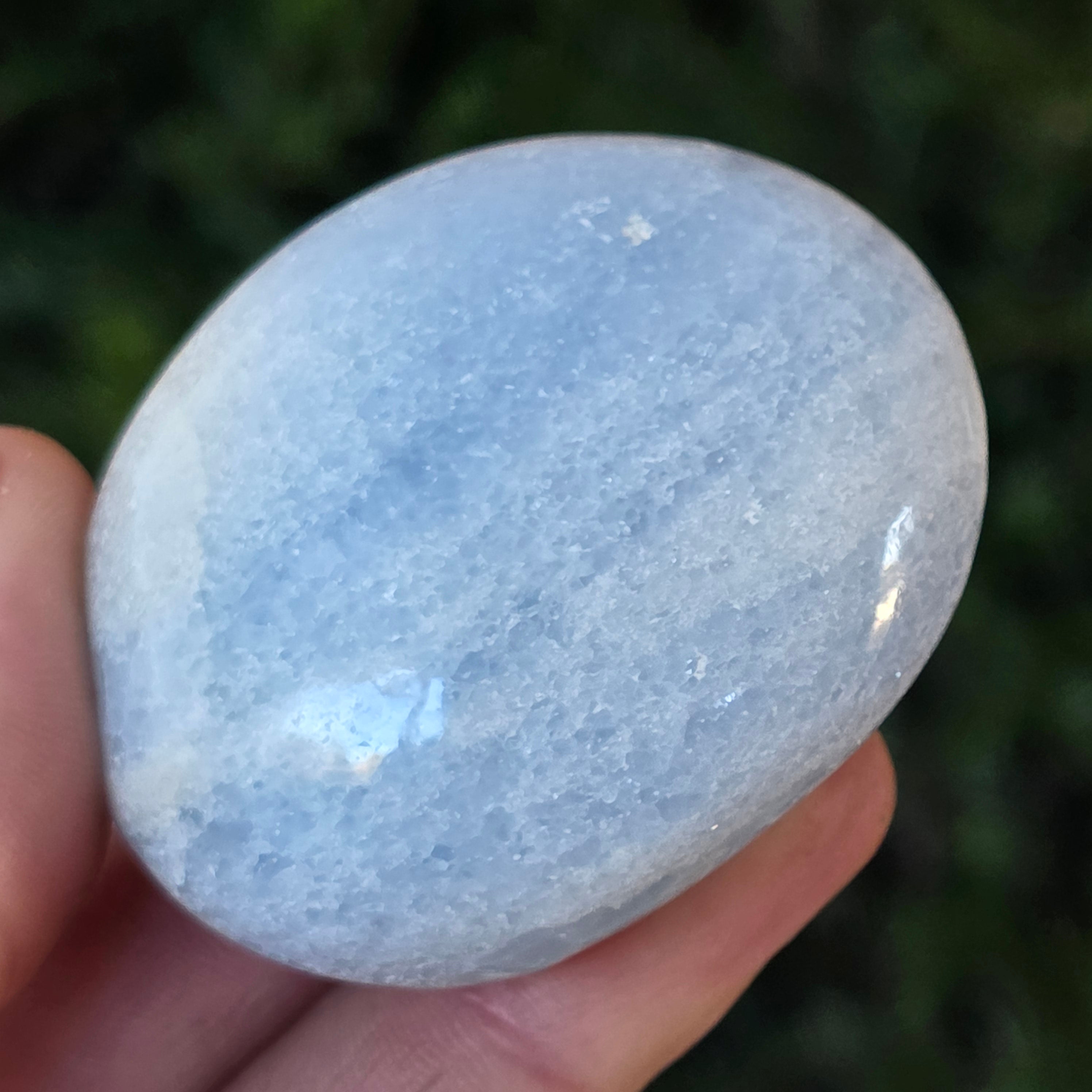 Blue caclite, also known as alabaster, is a semi-precious stone with strong metaphysical properties.