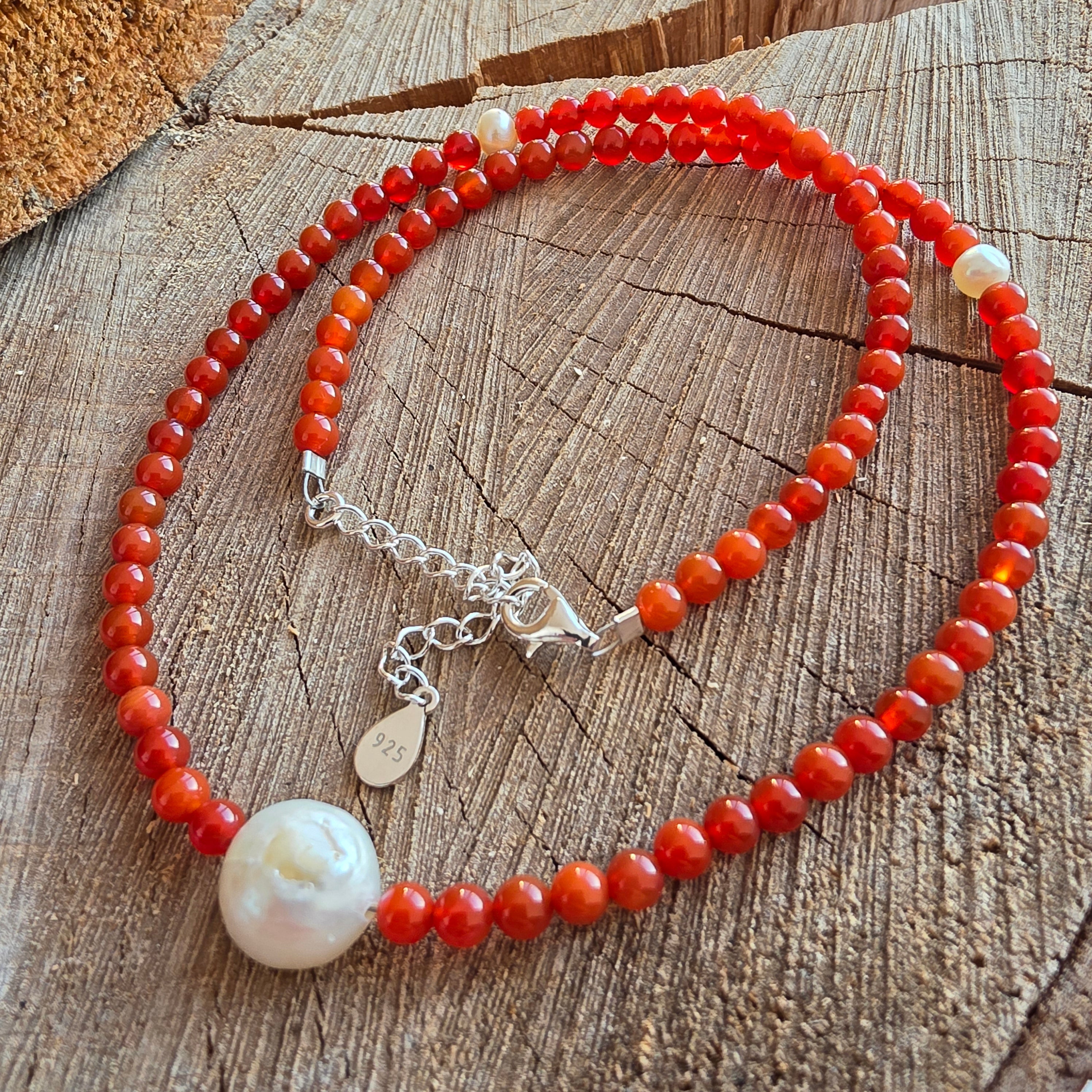 Materials: natural carnelian 4 mm beads, accent pearls 0.5-1 cm, 925 silver