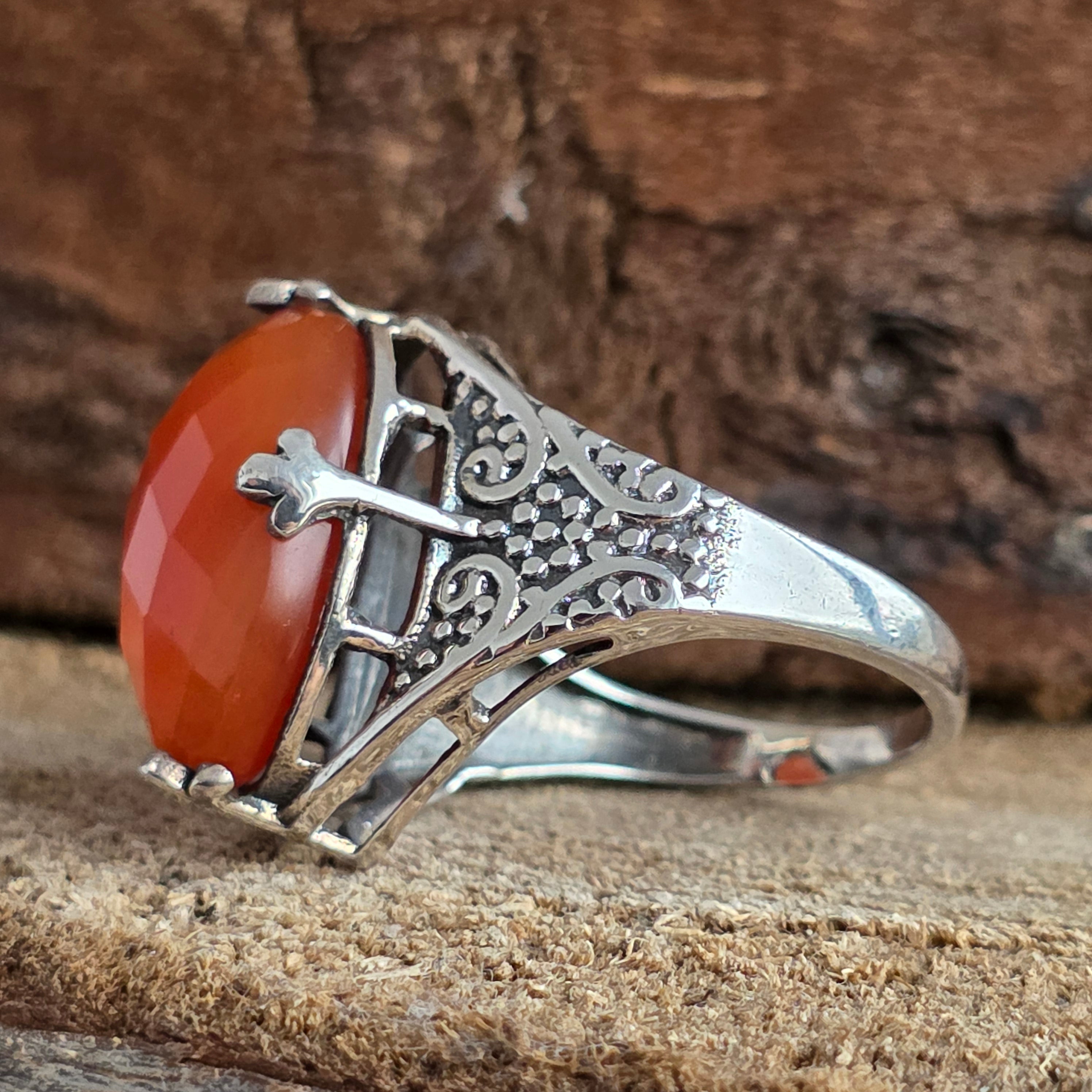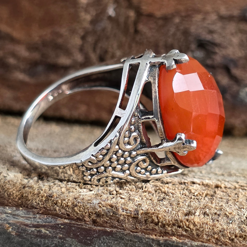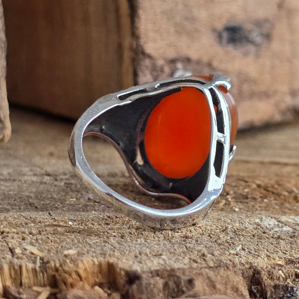 Powerful and vibrant, this one 925 silver ring it celebrates the warmth of the earth through intensity natural carnelian, a stone of courage, vitality and solar energy.