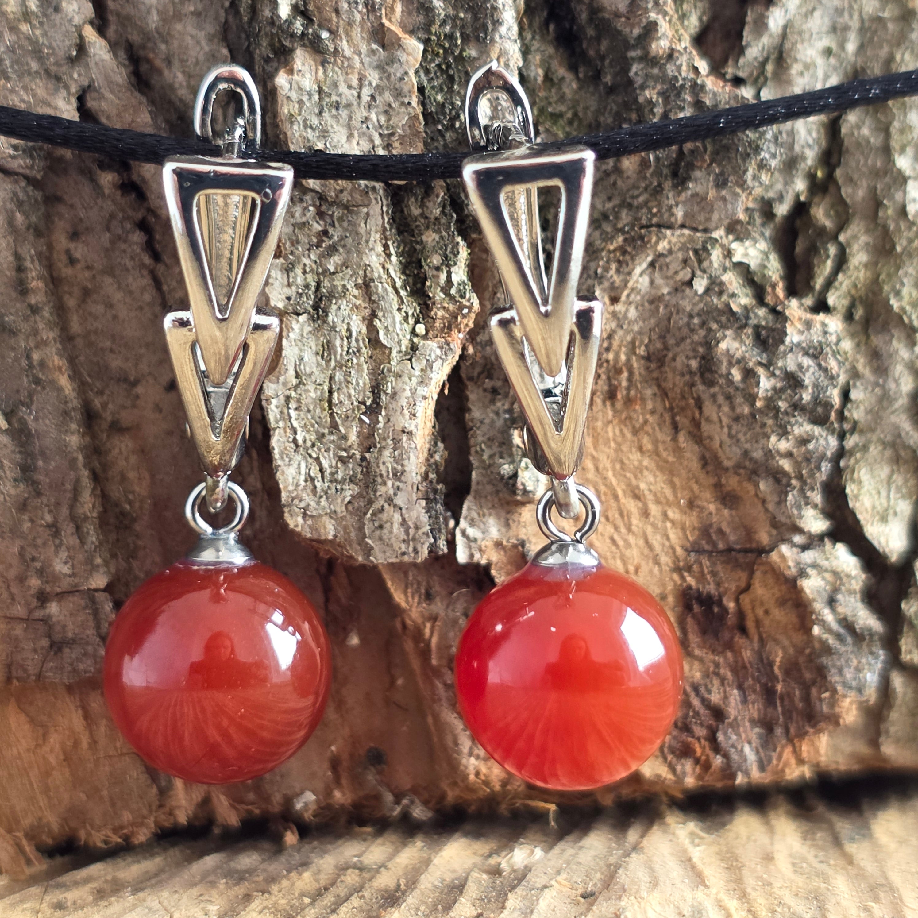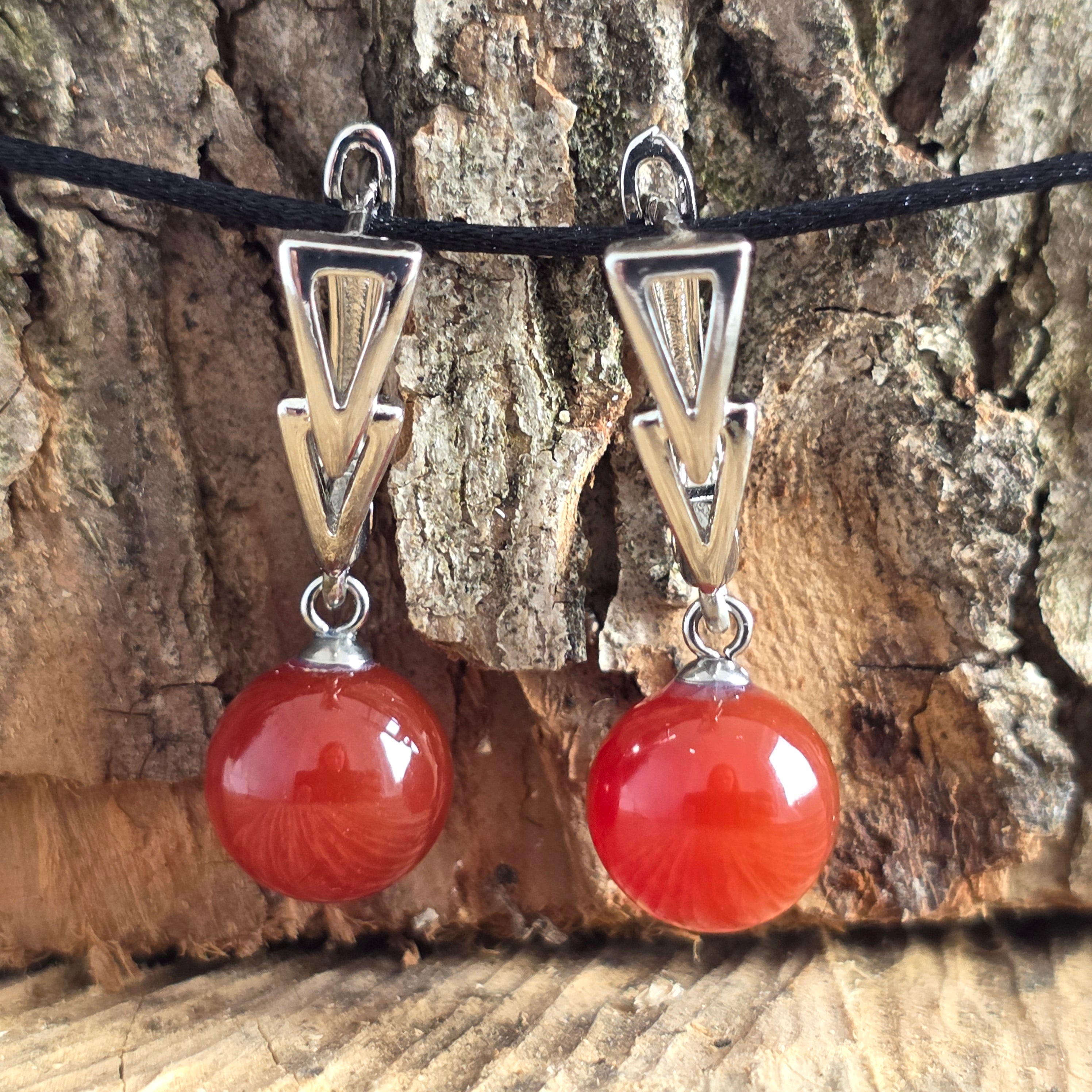 Carnelian Sphere Earrings Arrow Locking