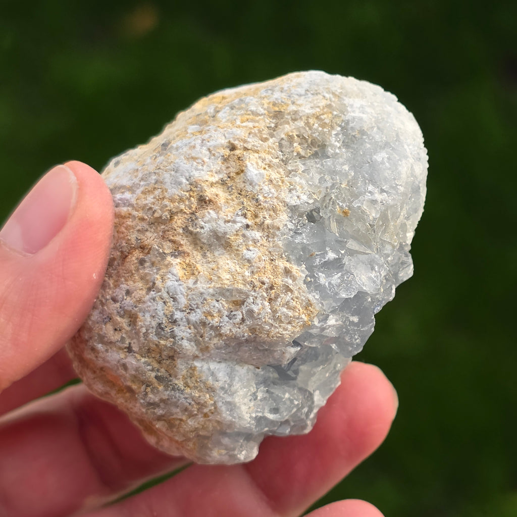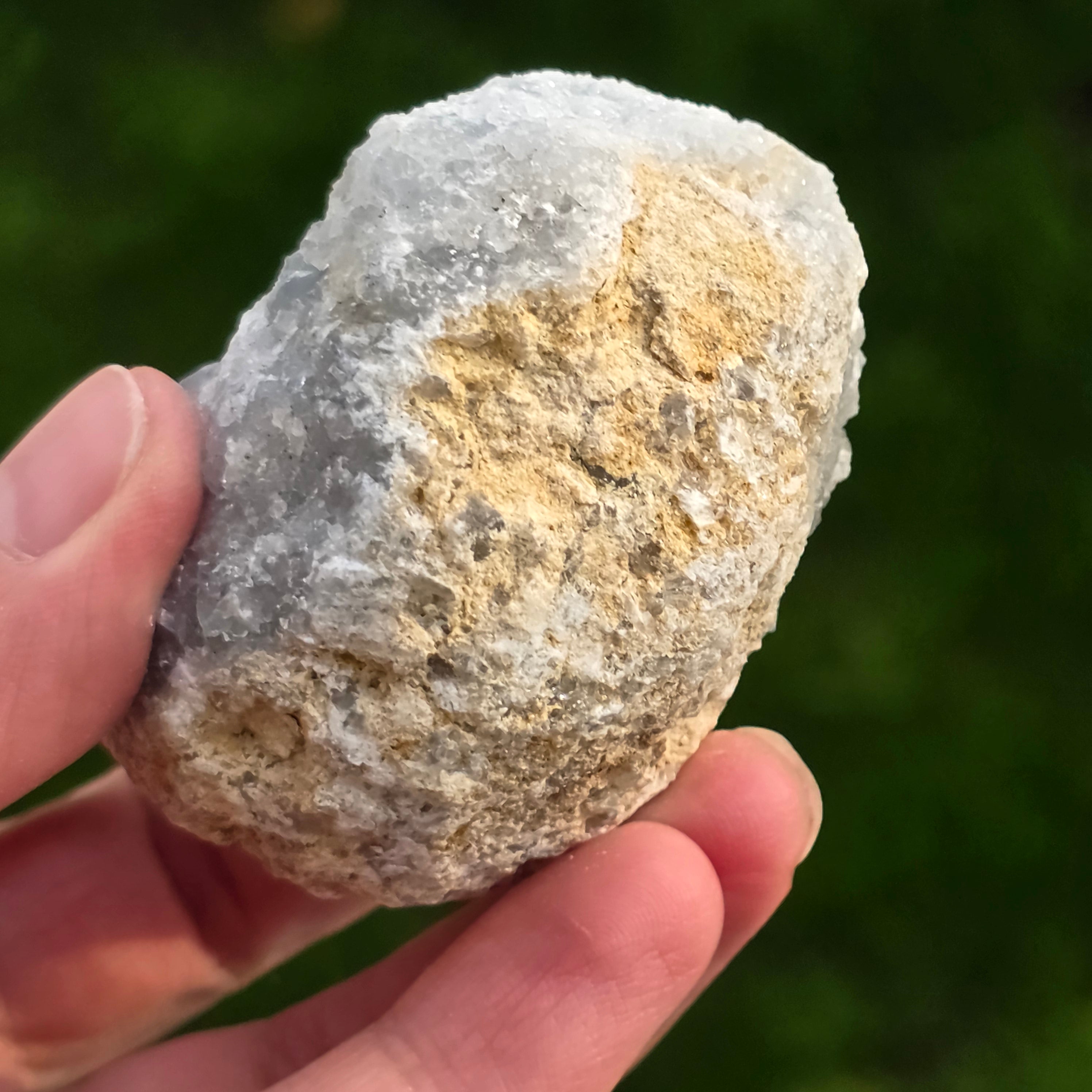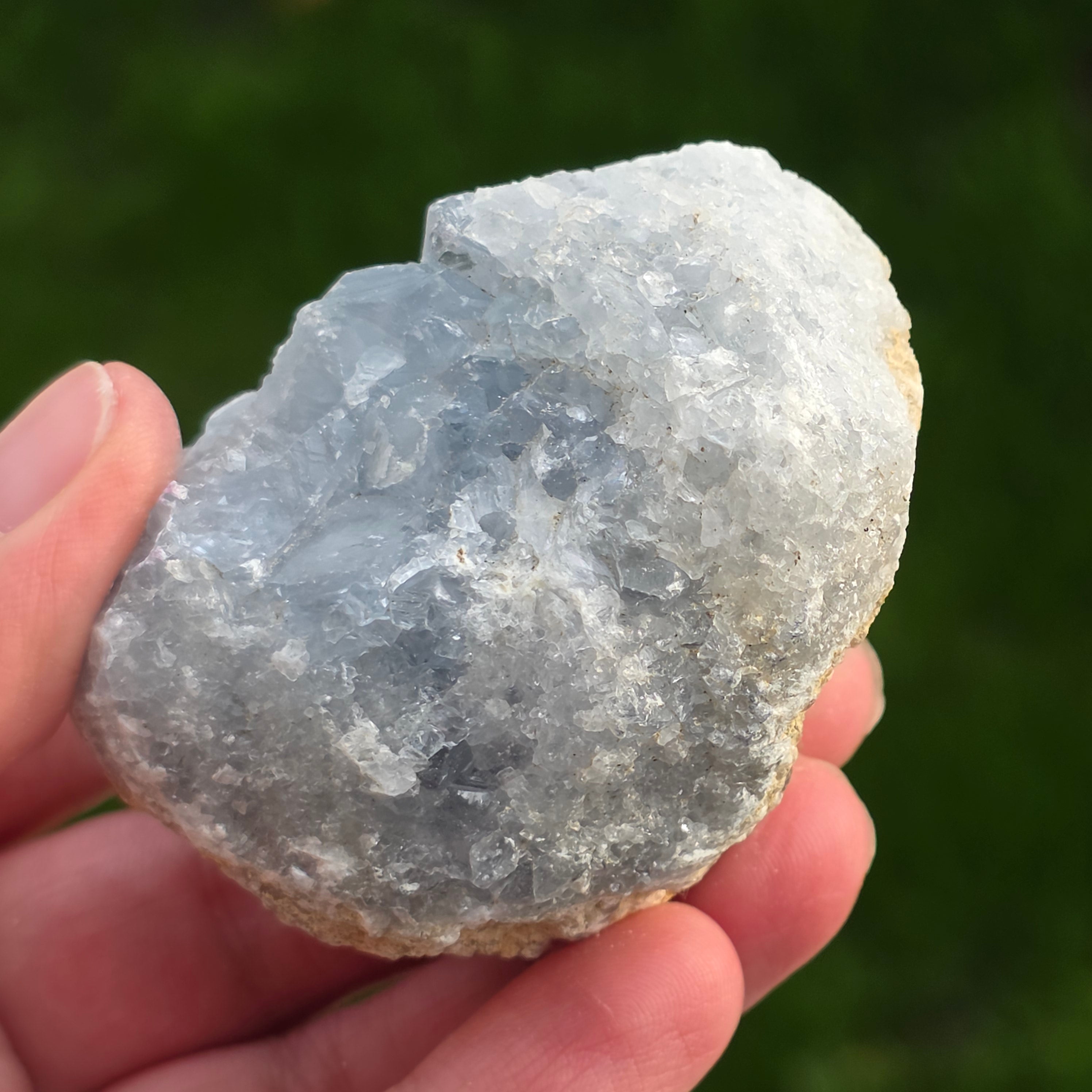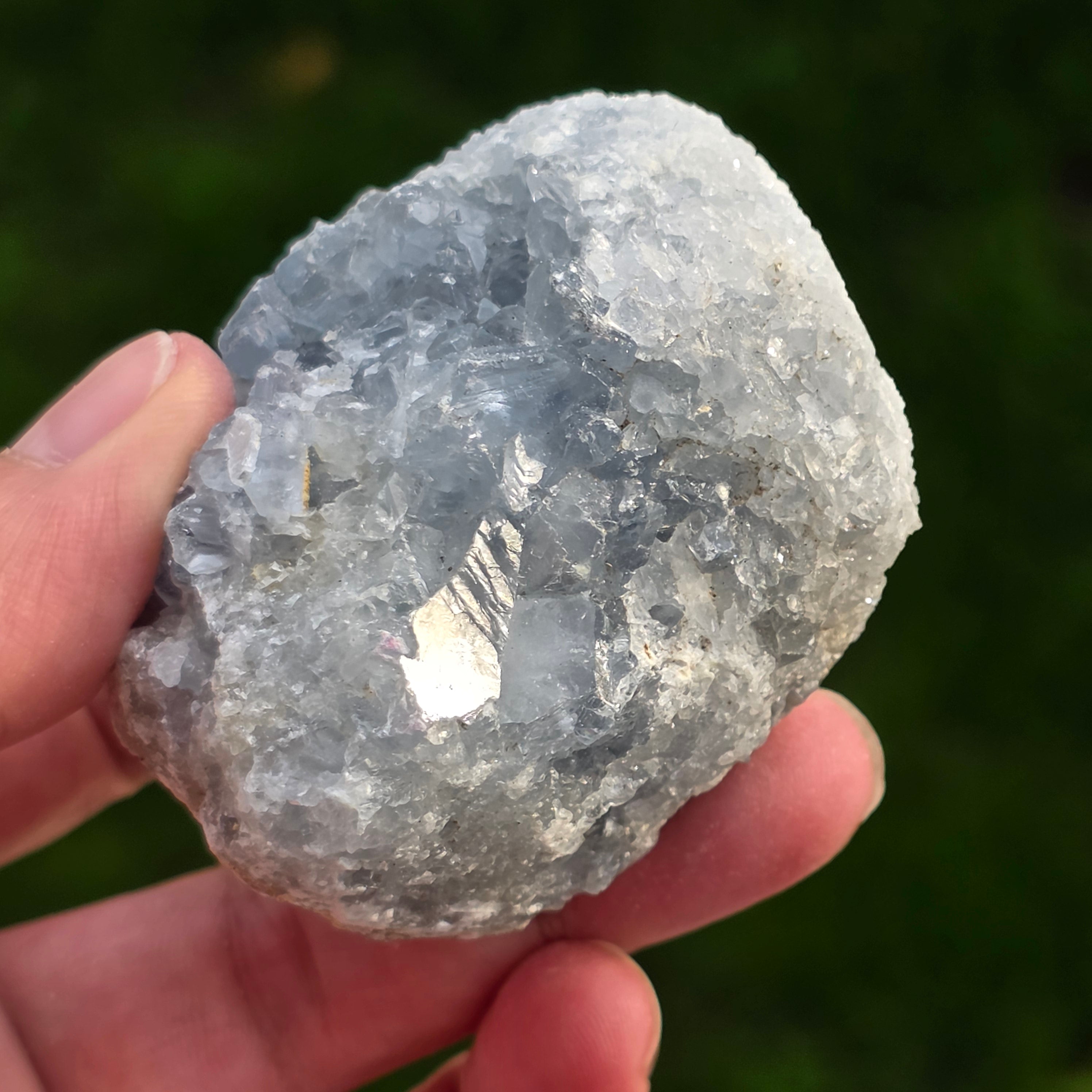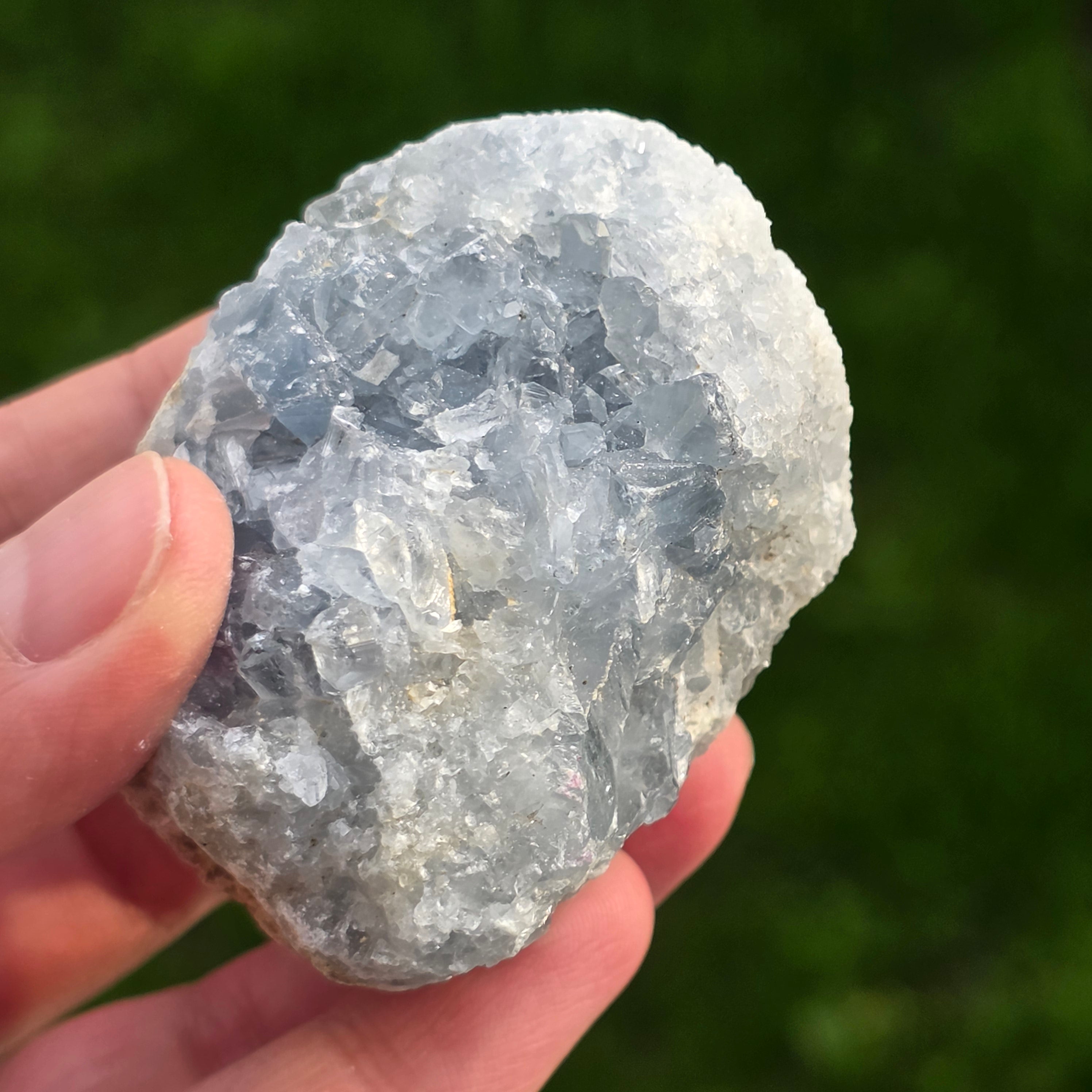 Celestite is a blue or colorless semi-precious stone formed from strontium sulfate. It has calming and relaxing properties and is often used in meditation and spiritual practices to promote inner peace and mental clarity. Celestite is associated with the throat chakra and can help with clear communication and expression of emotions. It is also believed to enhance creativity, intuition and psychic abilities.