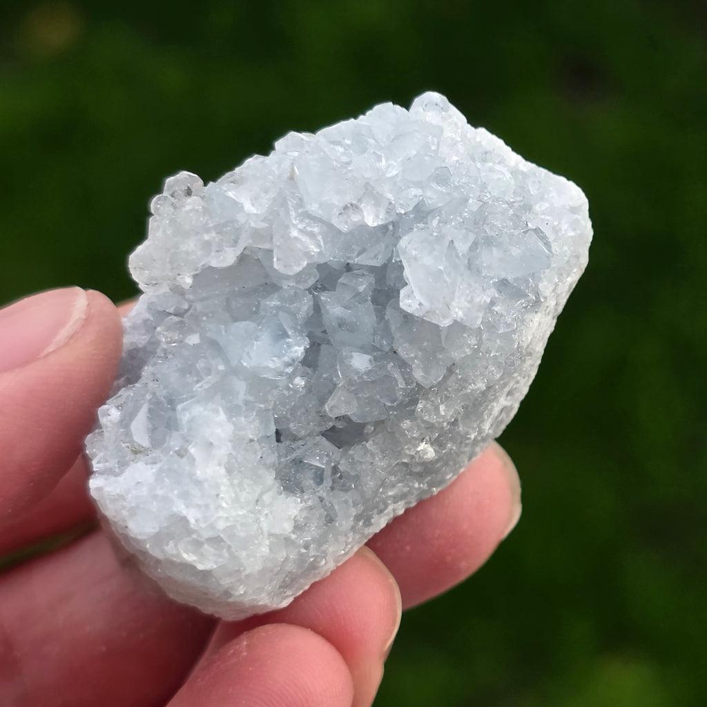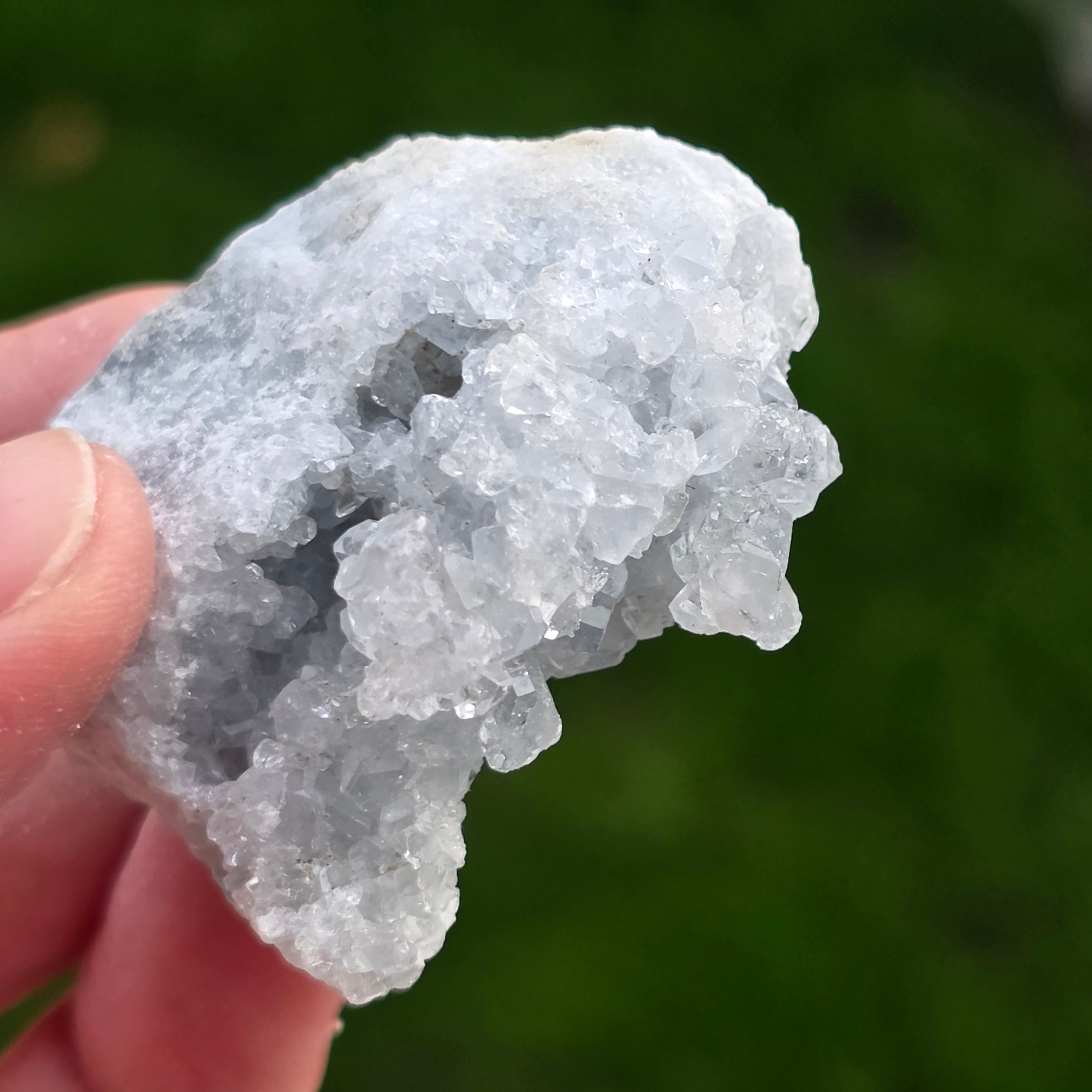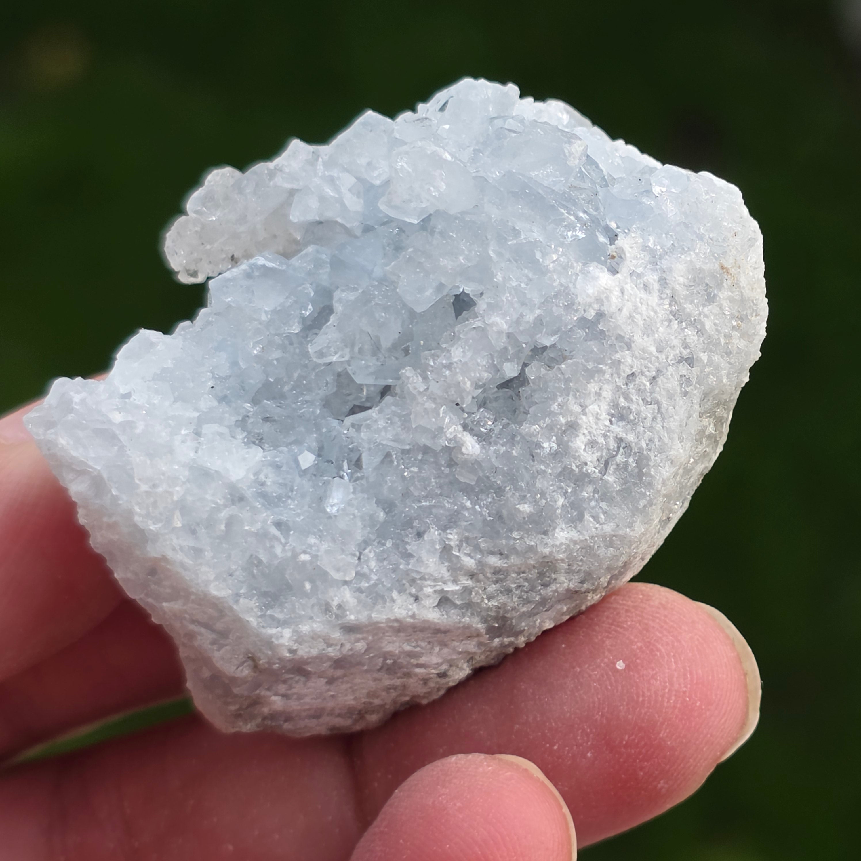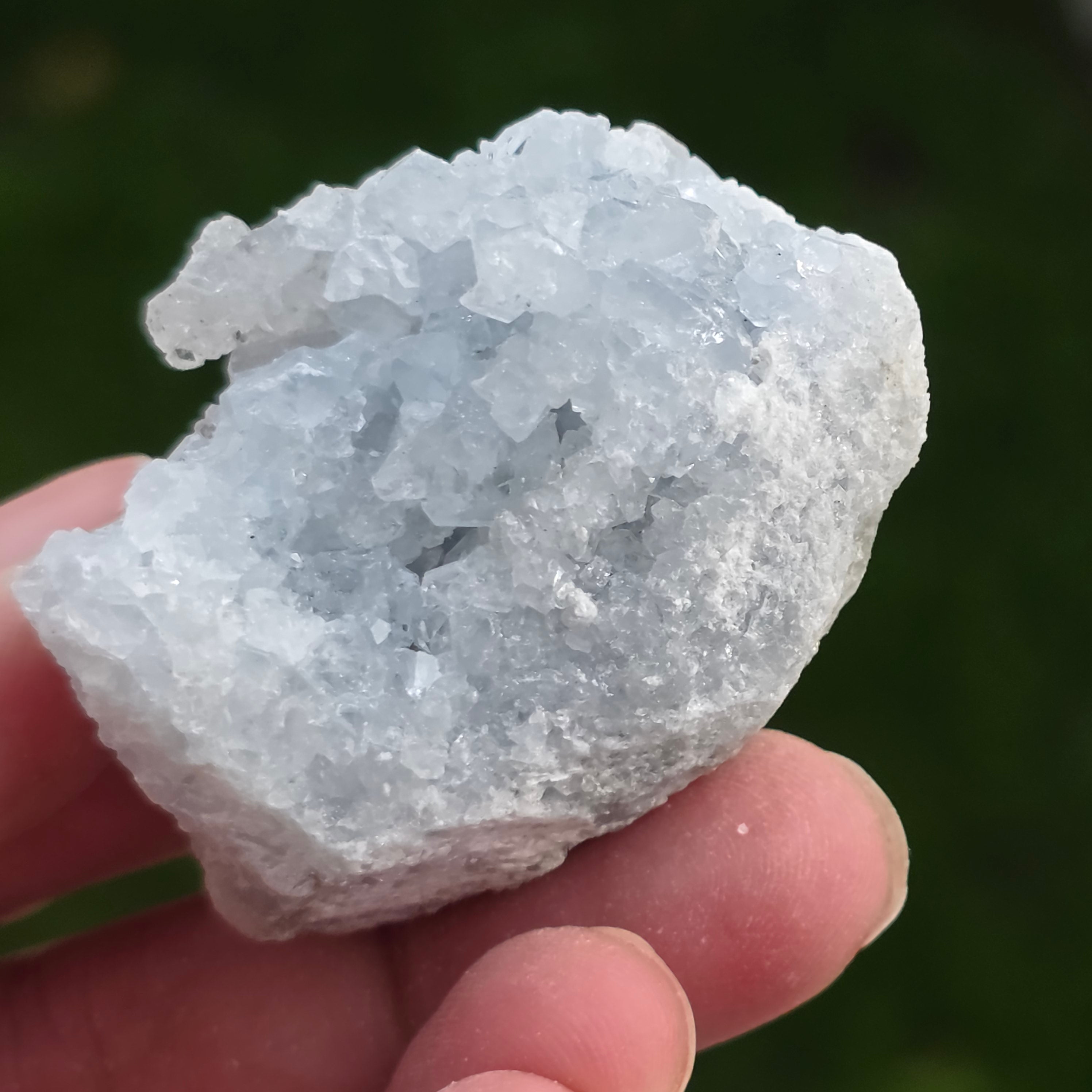 Celestite is a blue or colorless semi-precious stone formed from strontium sulfate. It has calming and relaxing properties and is often used in meditation and spiritual practices to promote inner peace and mental clarity. Celestite is associated with the throat chakra and can help with clear communication and expression of emotions. It is also believed to enhance creativity, intuition and psychic abilities.