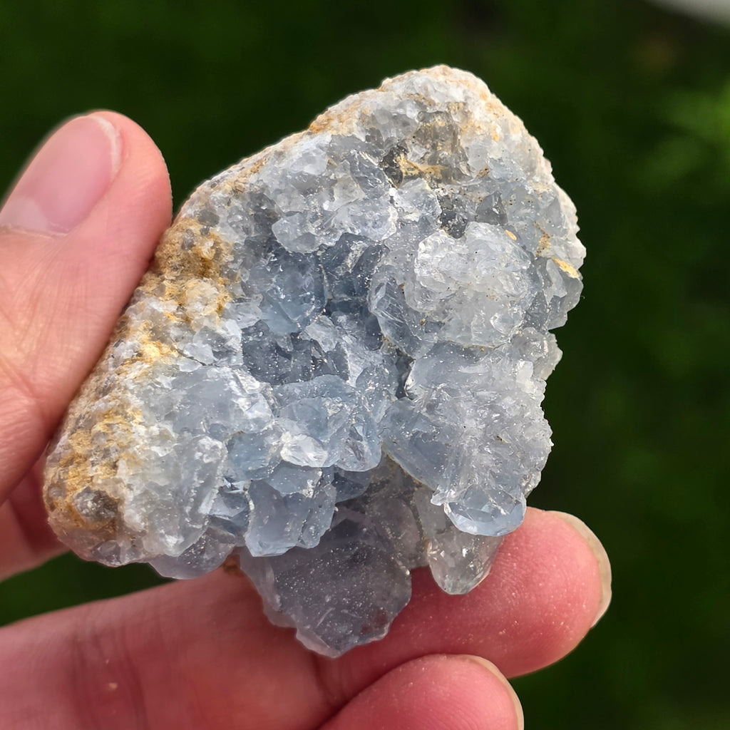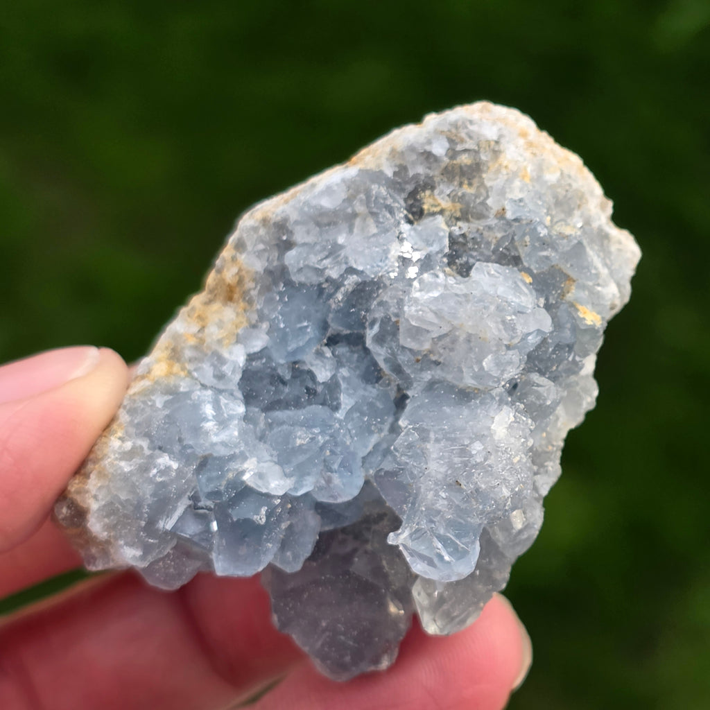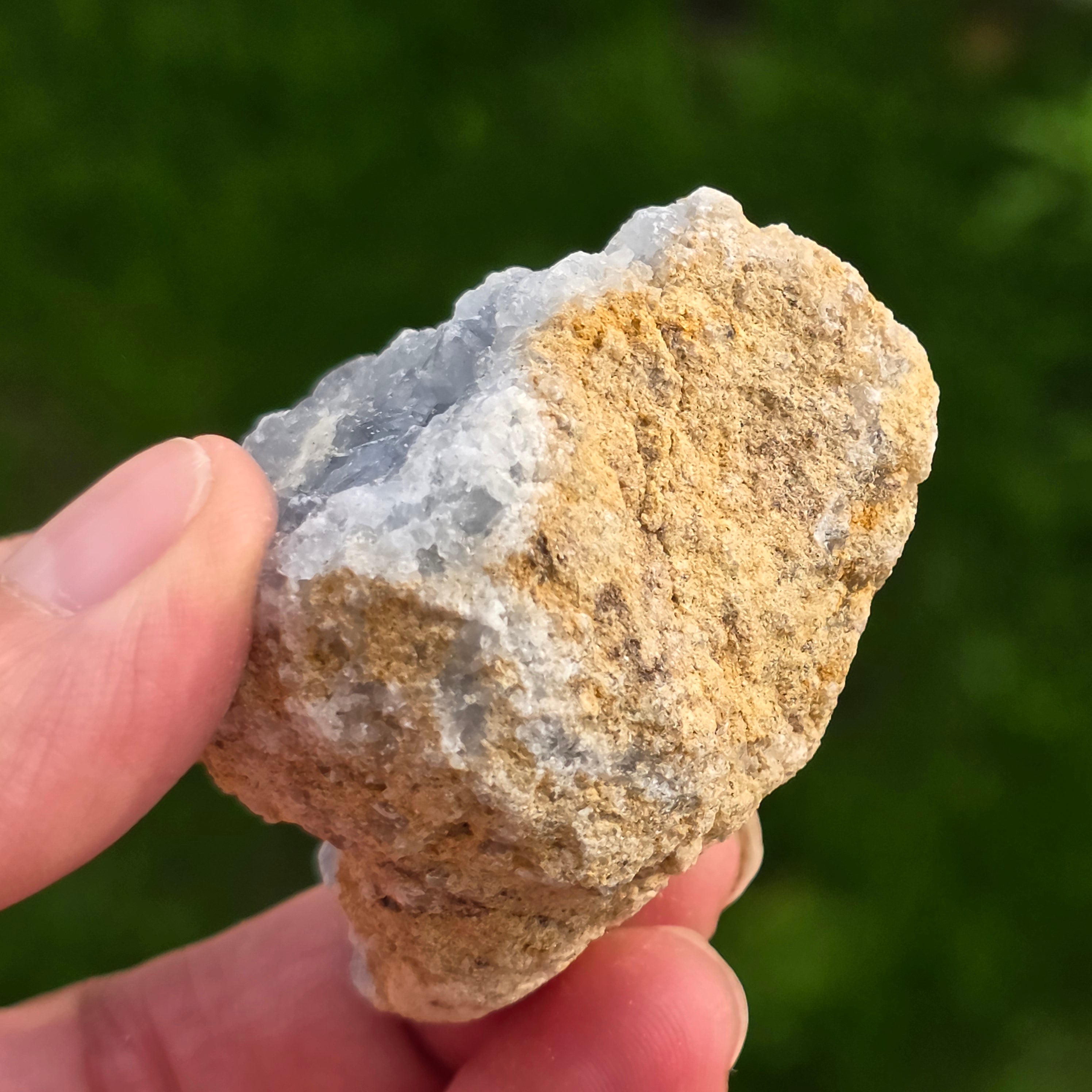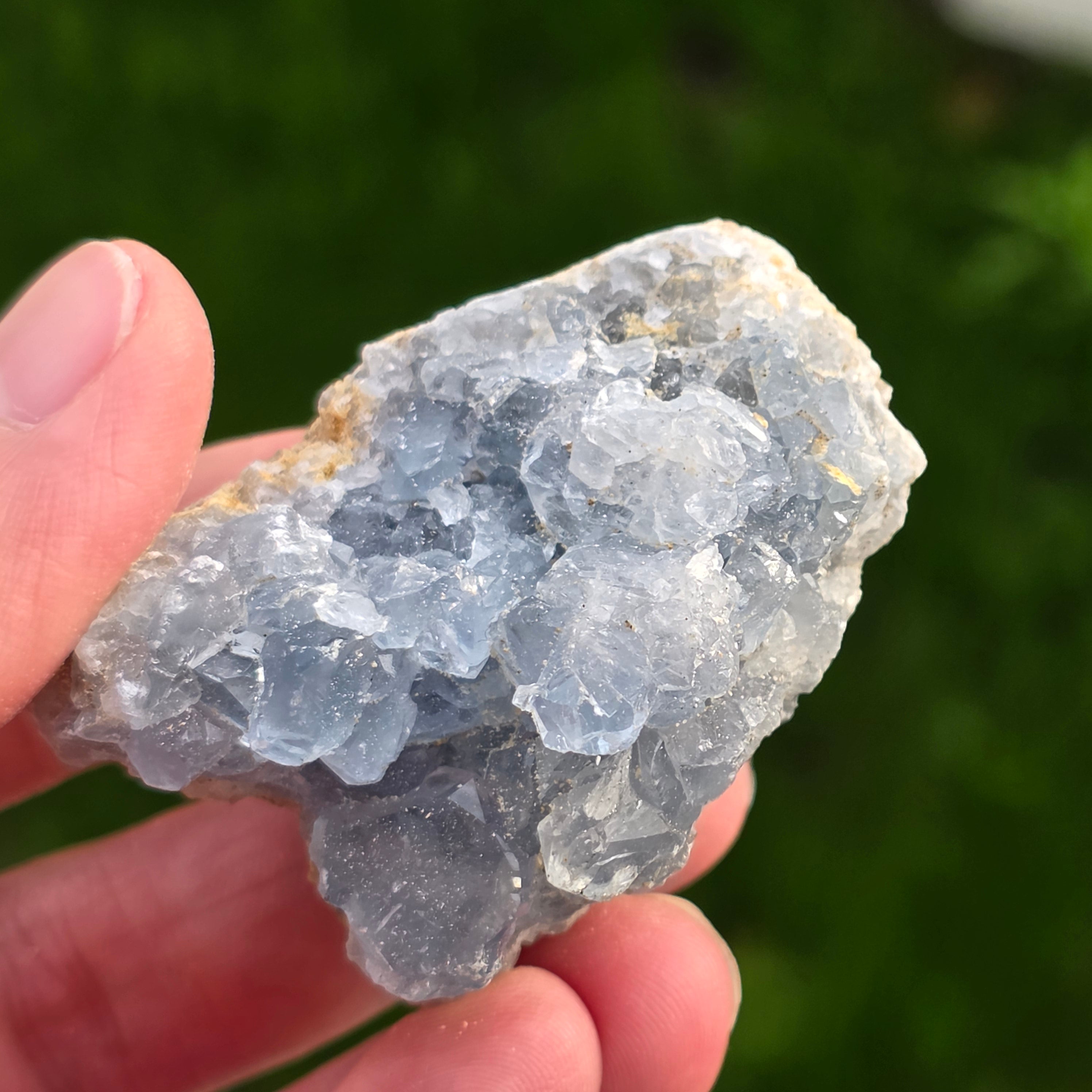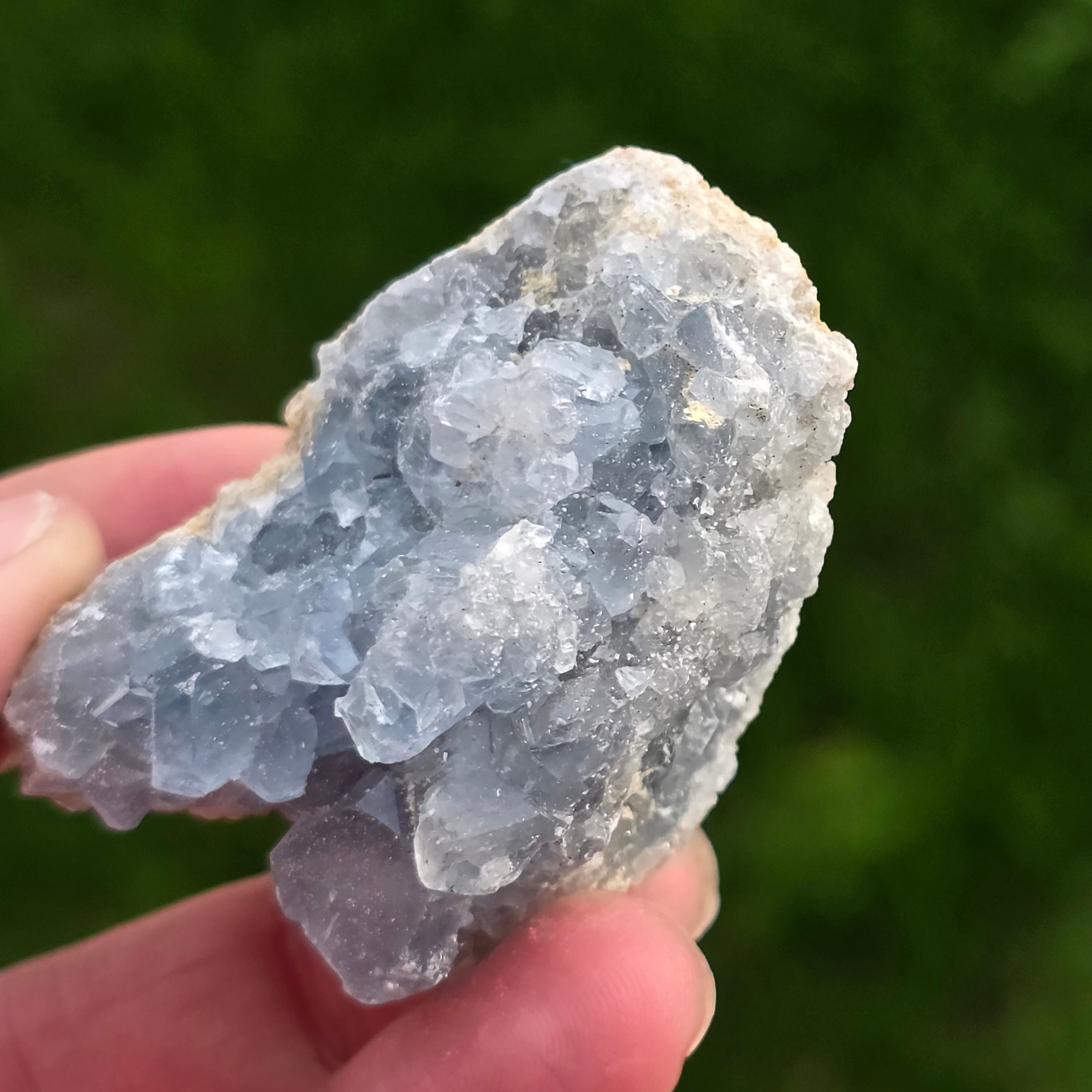 Celestite is a semi-precious stone that is blue or colorless, formed from strontium sulfate. It has calming and relaxing properties, often used in meditation and spiritual practices to promote inner peace and mental clarity. Celestite is associated with the throat chakra and can help with clear communication and emotional expression. It is also believed to enhance creativity, intuition, and psychic abilities.