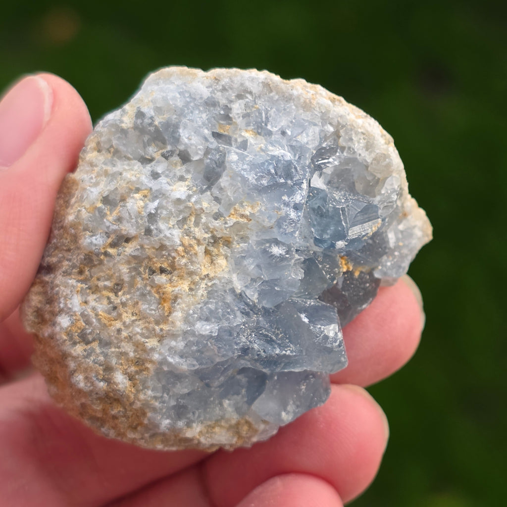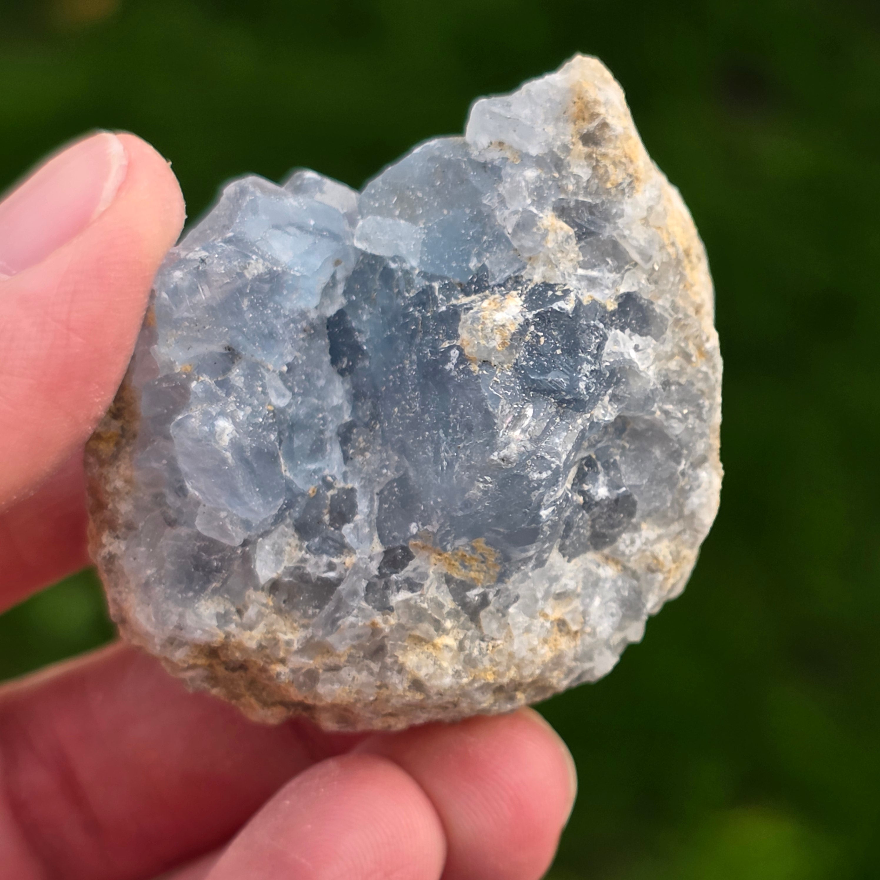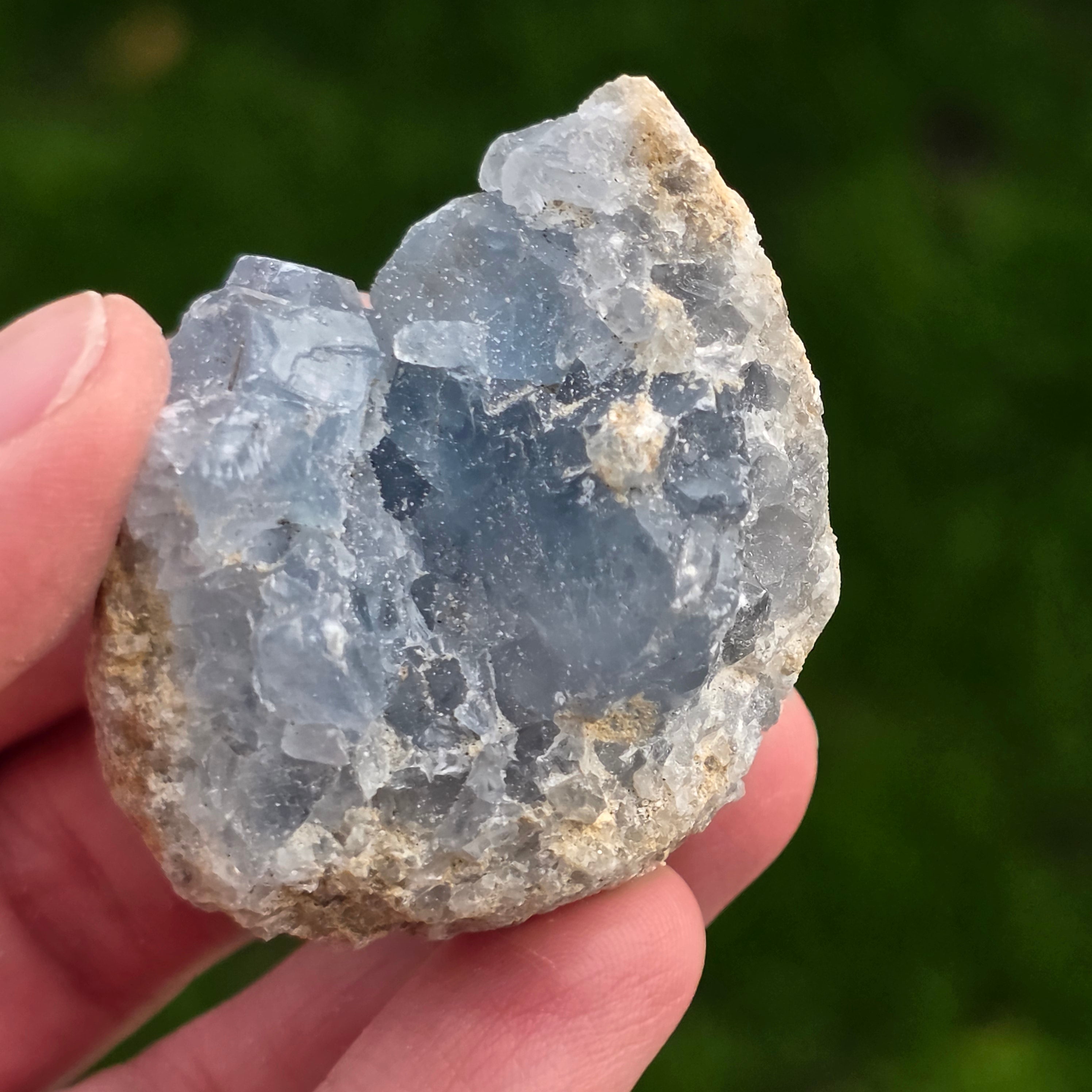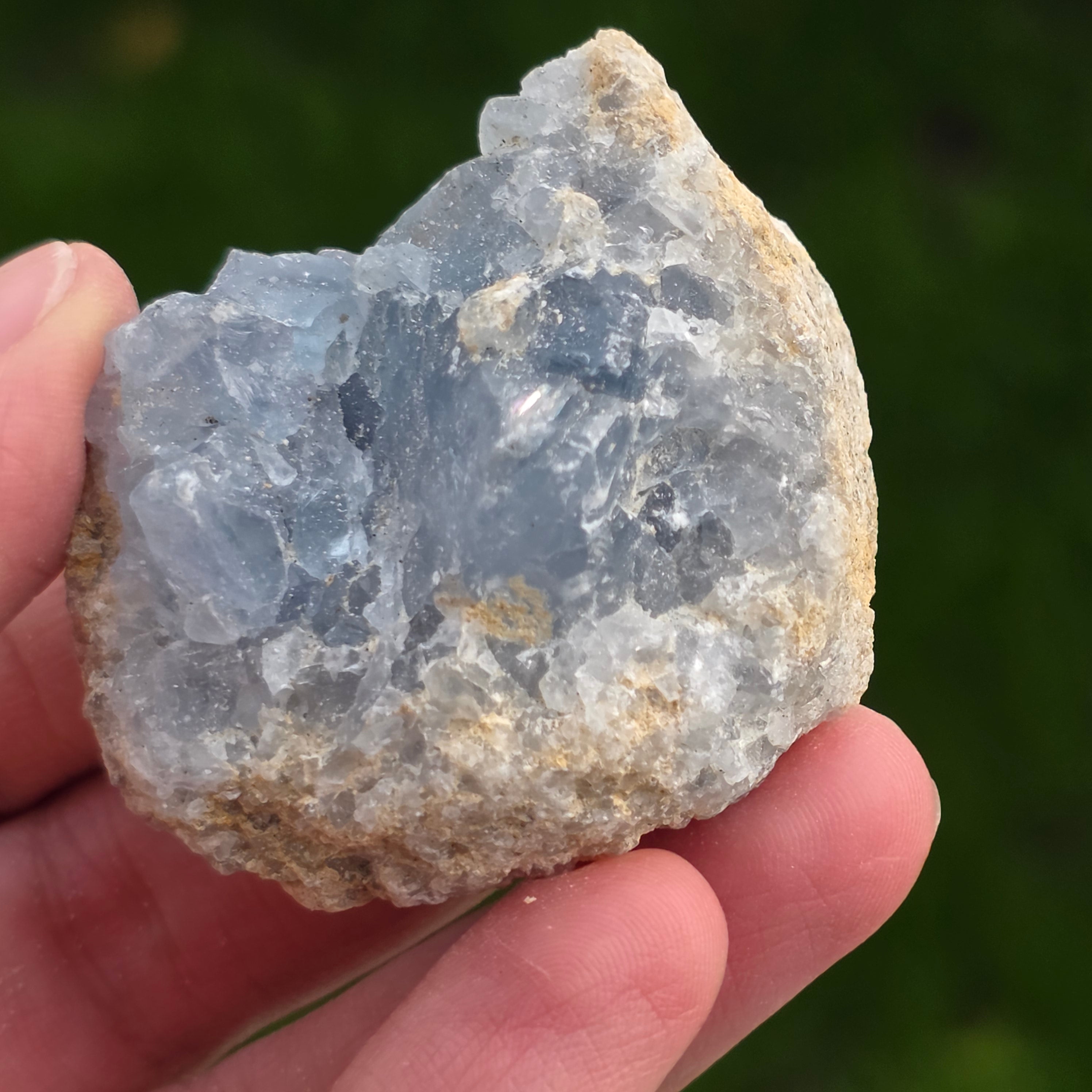 Celestite is a blue or colorless semi-precious stone formed from strontium sulfate. It has calming and relaxing properties and is often used in meditation and spiritual practices to promote inner peace and mental clarity. Celestite is associated with the throat chakra and can help with clear communication and expression of emotions. It is also believed to enhance creativity, intuition and psychic abilities.