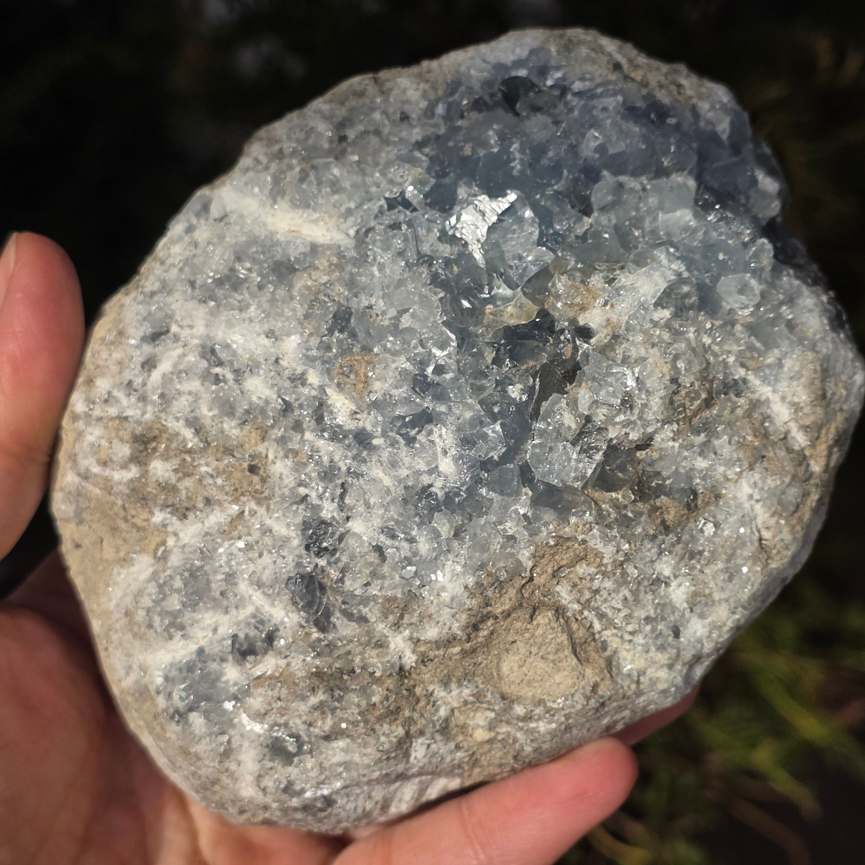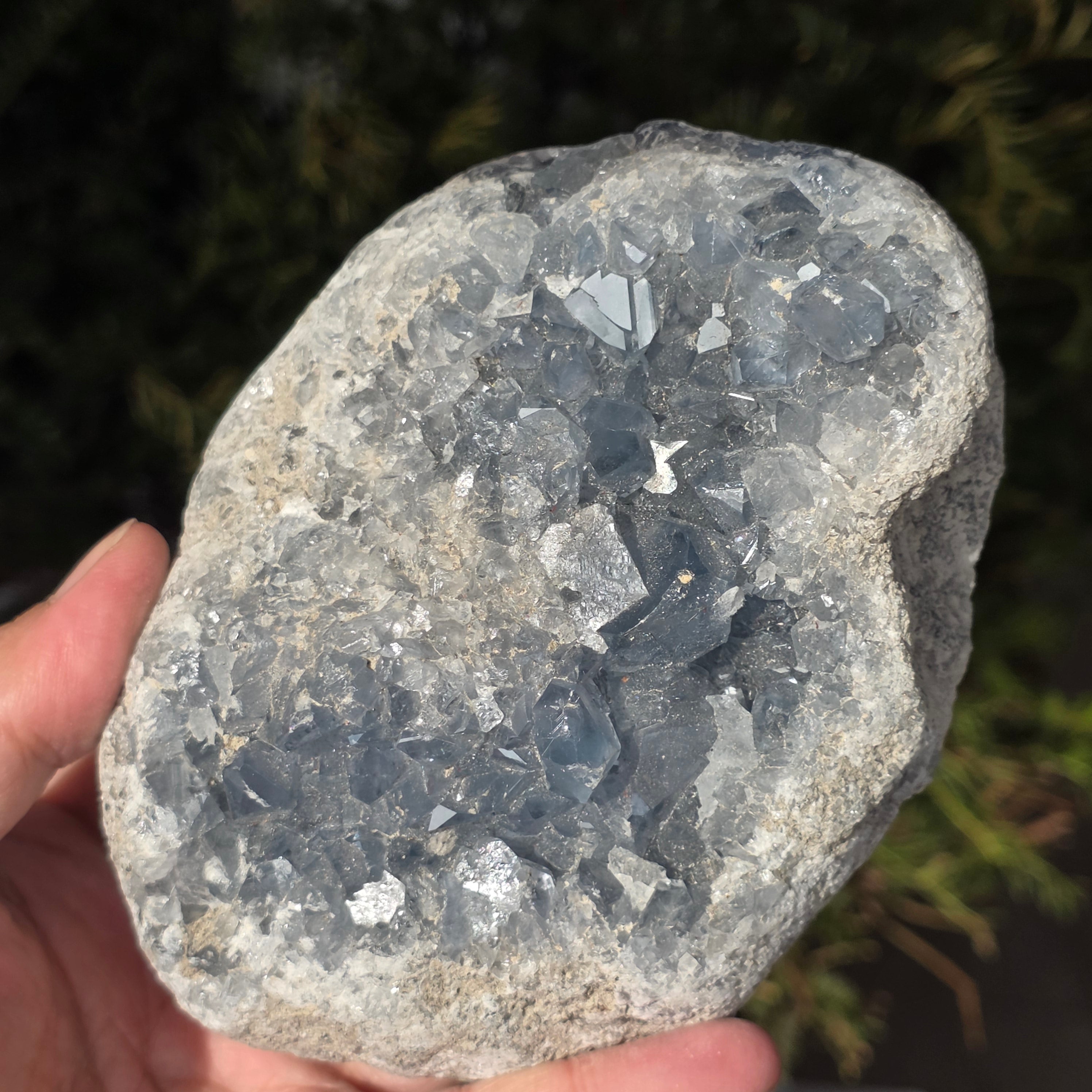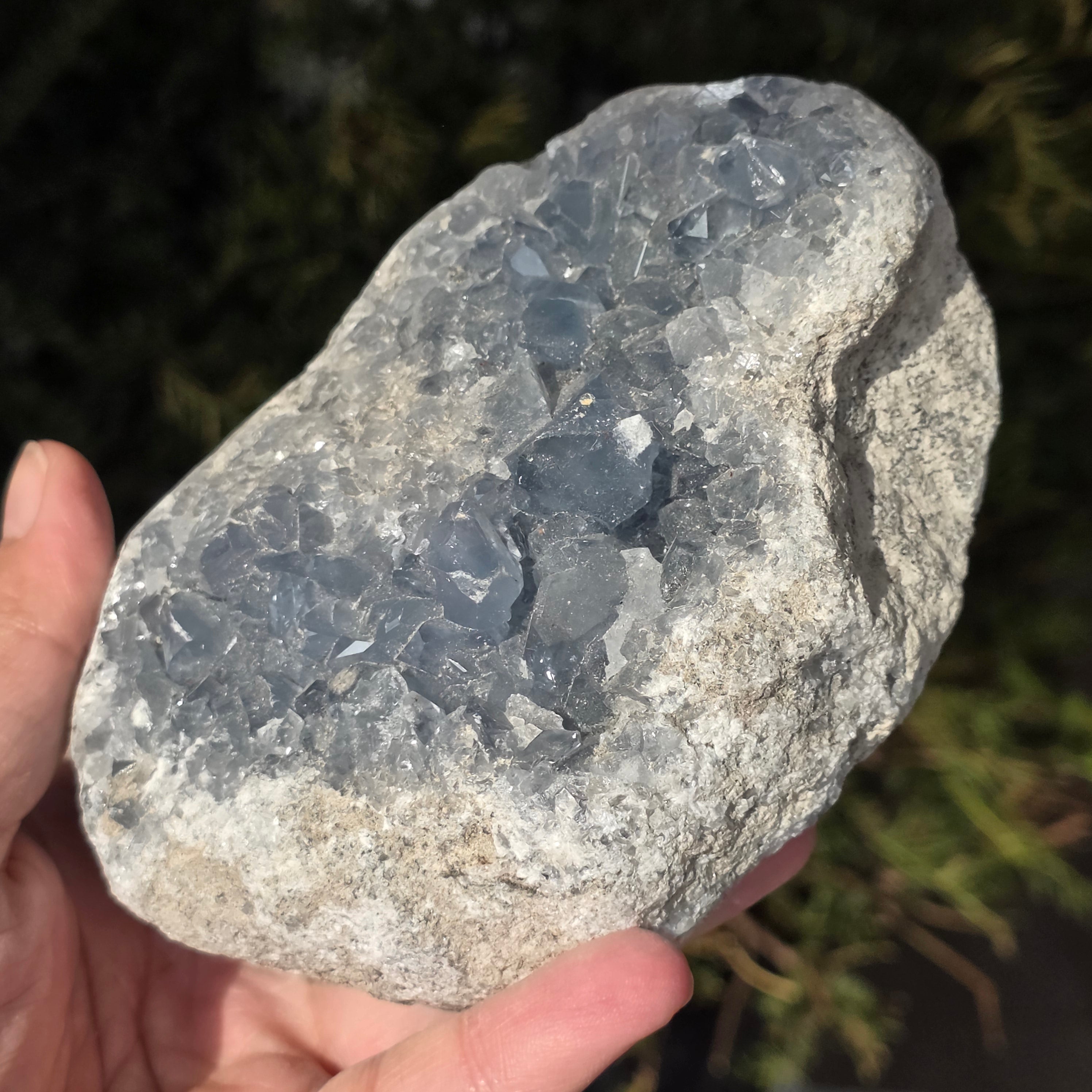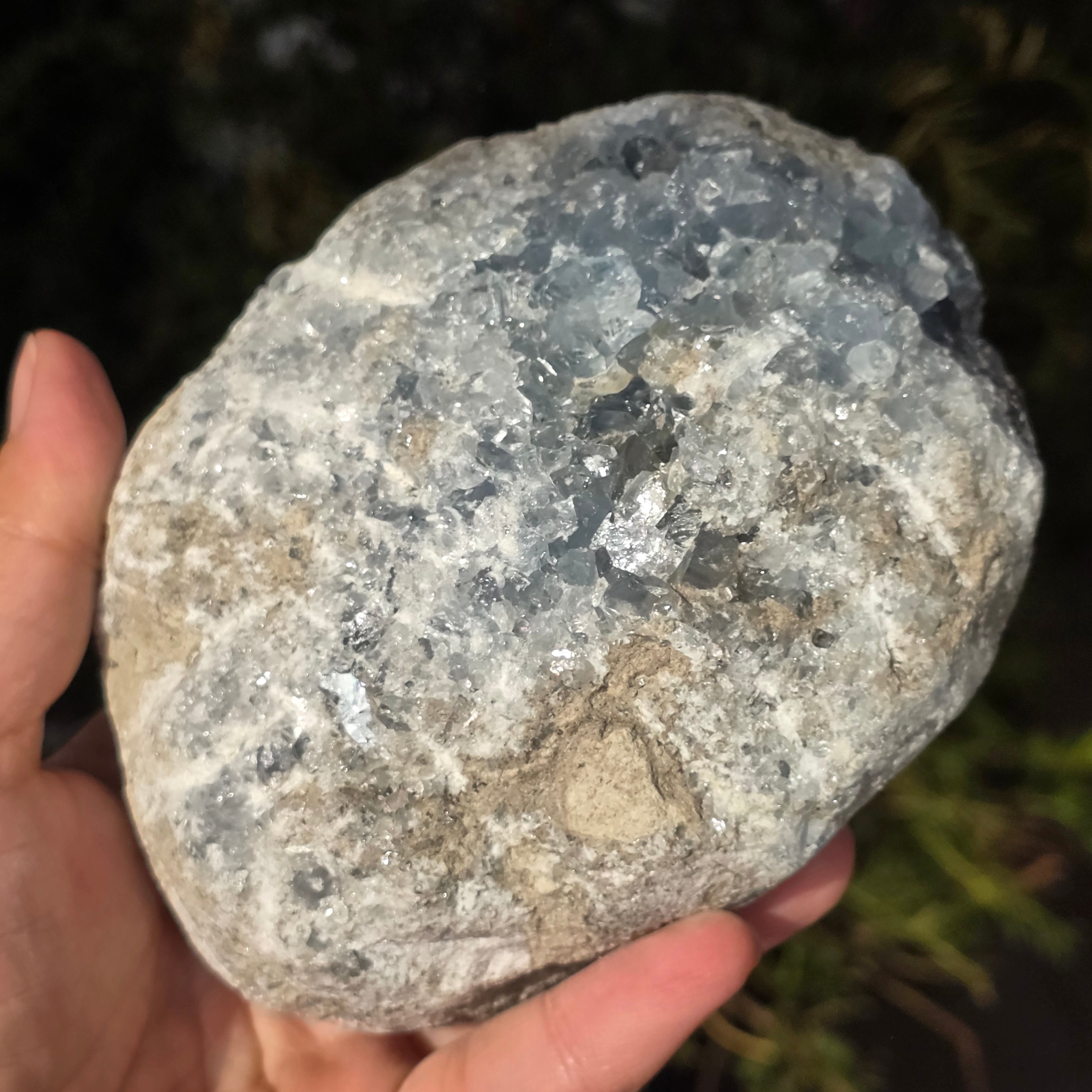 Celestite is a semi-precious stone of blue or colorless color, formed from strontium sulfate. It has calming and relaxing properties, often used in meditation and spiritual practices to promote inner peace and mental clarity. Celestite is associated with the throat chakra and can help with clear communication and expressing emotions. It is also believed to enhance creativity, intuition, and psychic abilities.