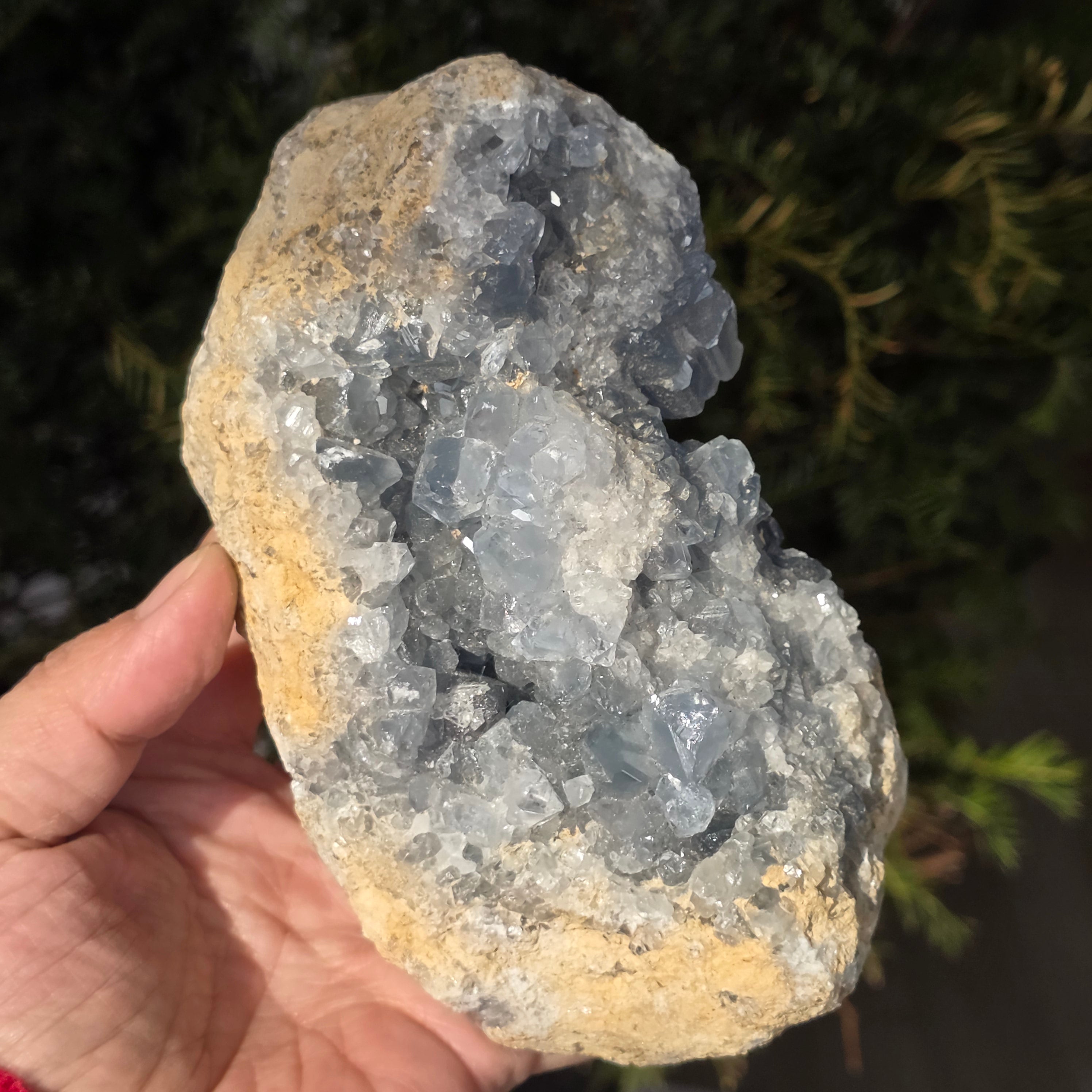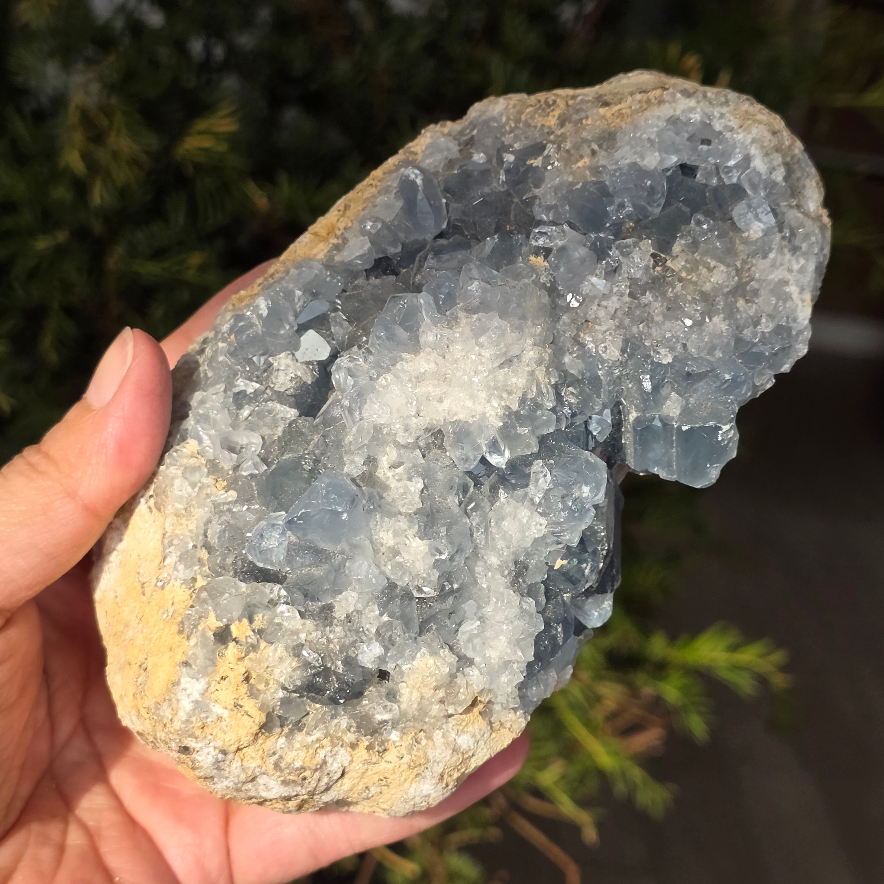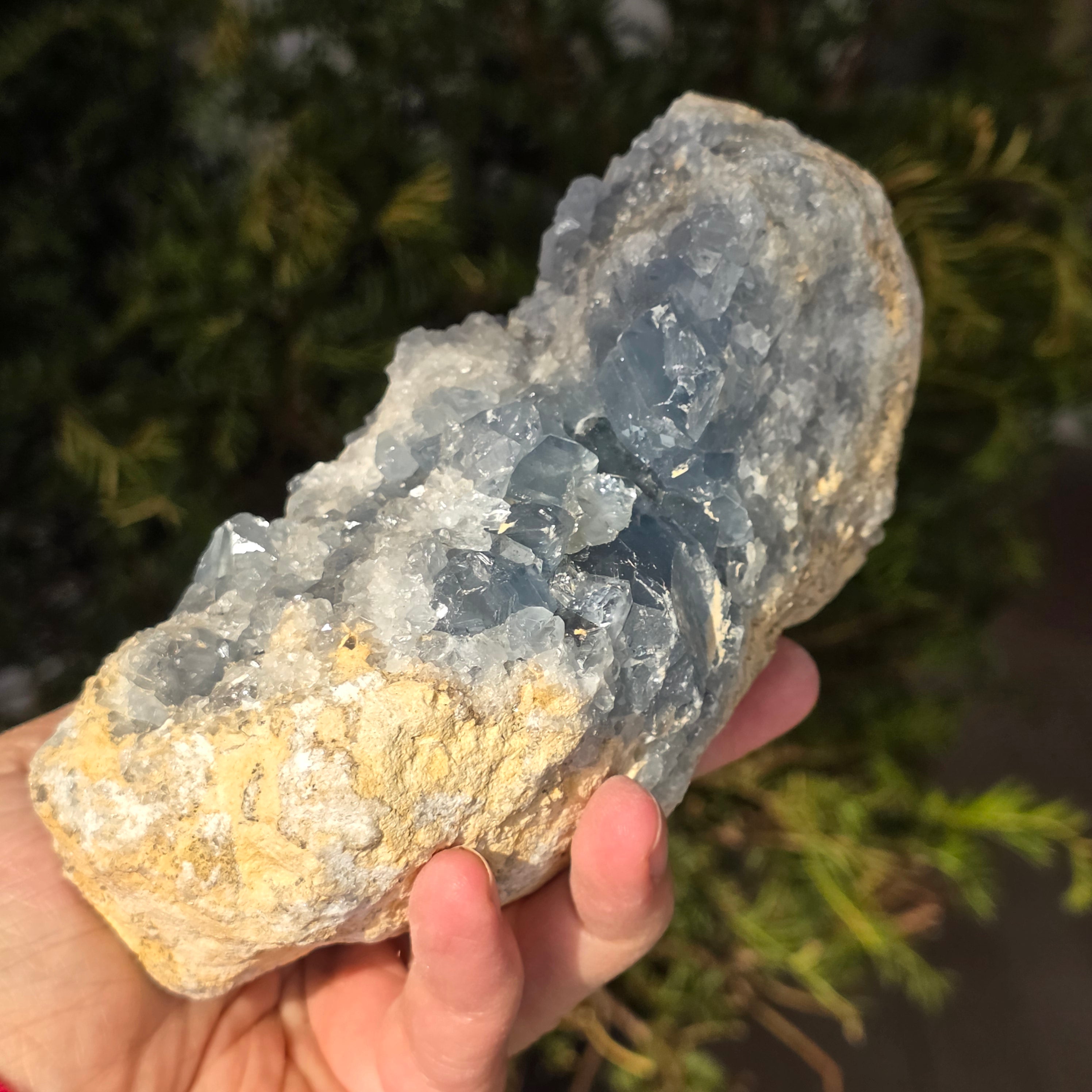 Celestite is a blue or colorless semi-precious stone formed from strontium sulfate. It has calming and relaxing properties and is often used in meditation and spiritual practices to promote inner peace and mental clarity. Celestite is associated with the throat chakra and can help with clear communication and expression of emotions. It is also believed to enhance creativity, intuition and psychic abilities.