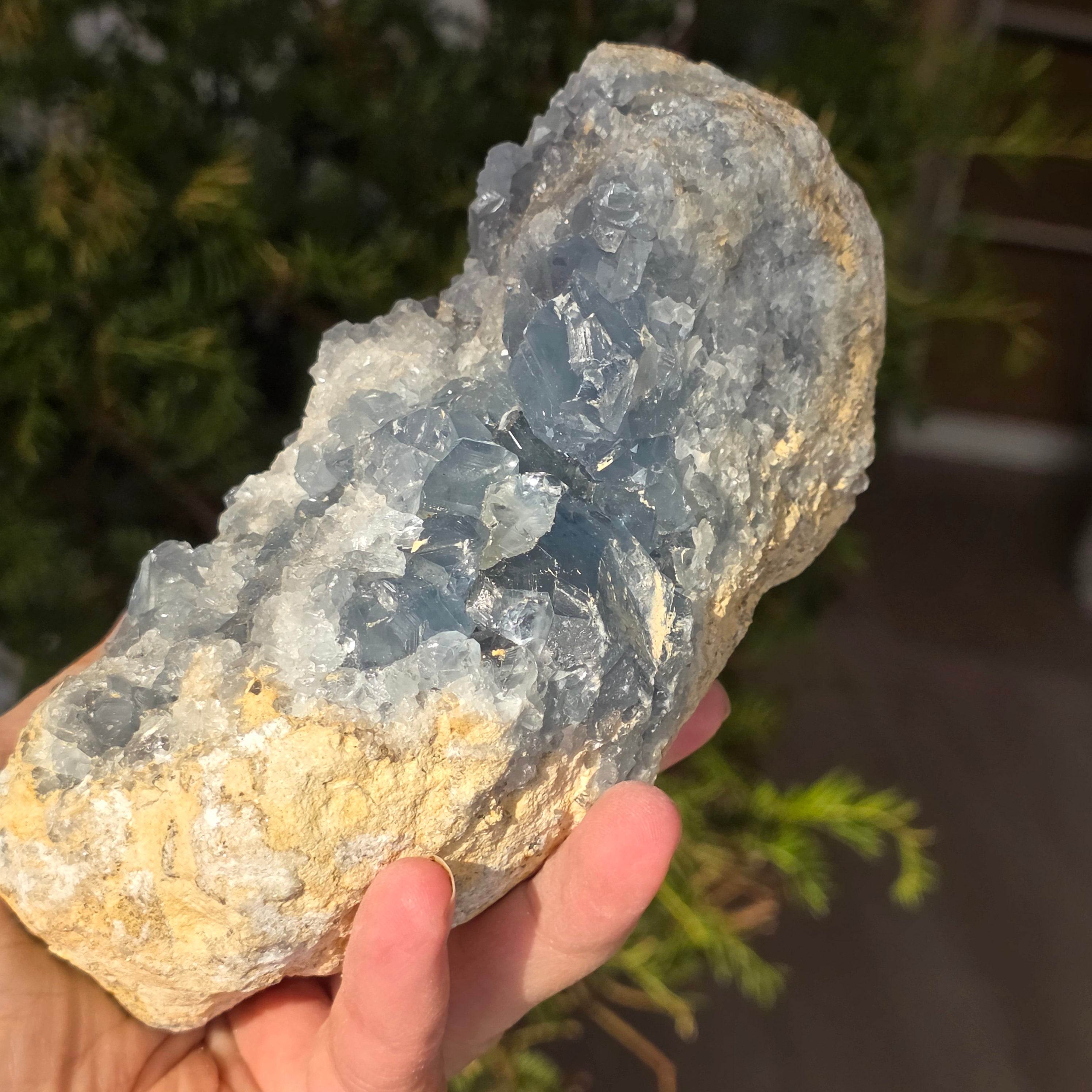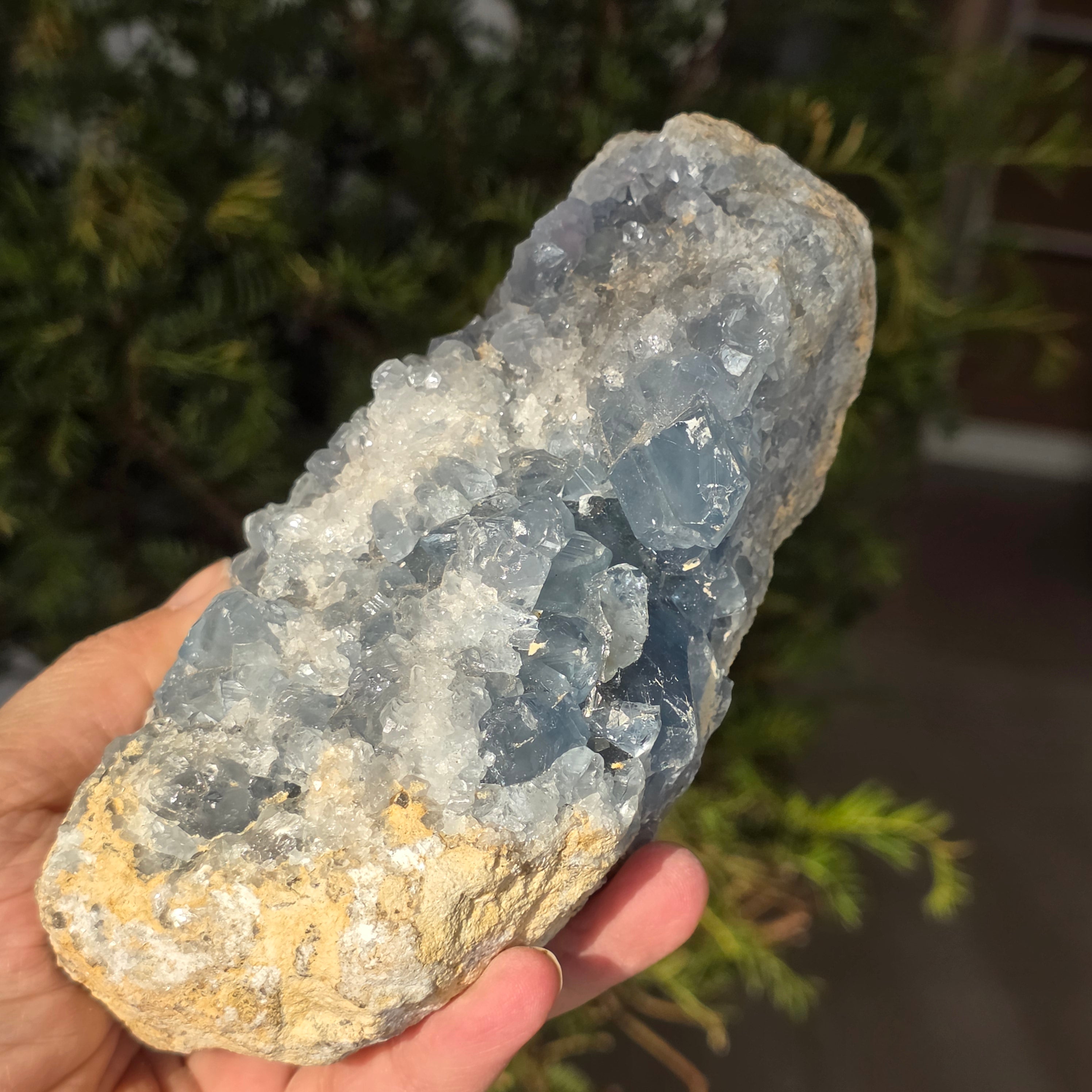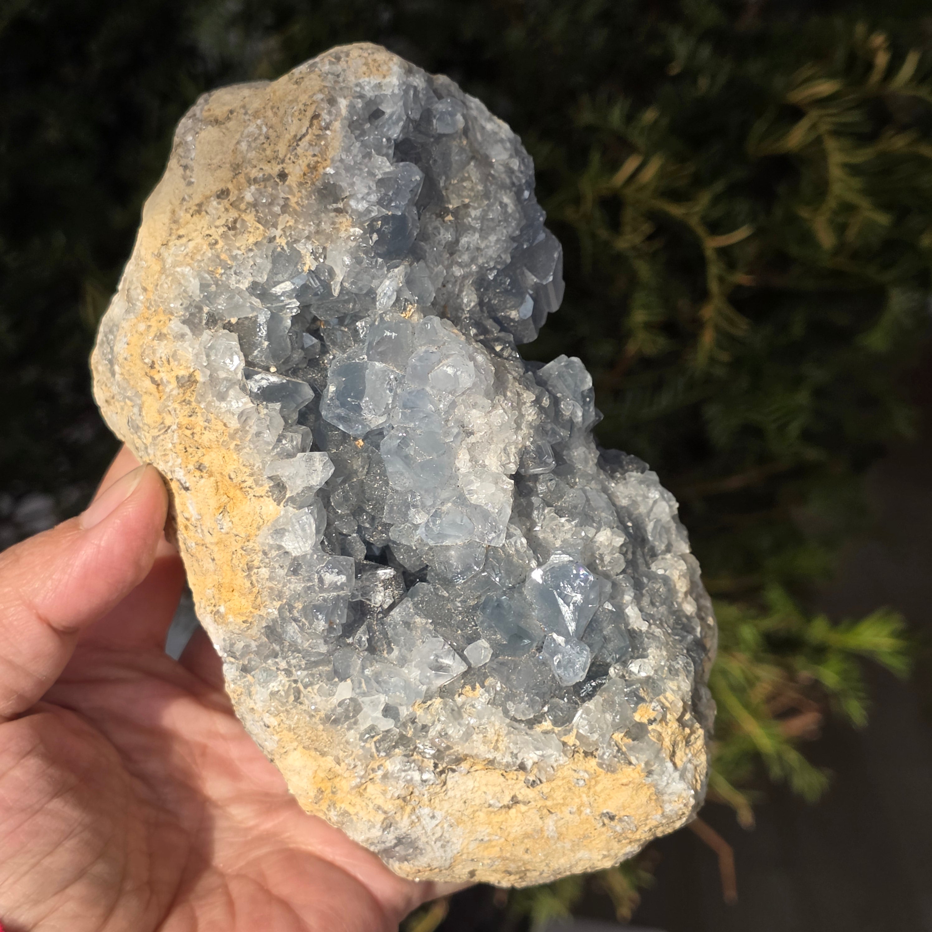 Celestite is a blue or colorless semi-precious stone formed from strontium sulfate. It has calming and relaxing properties and is often used in meditation and spiritual practices to promote inner peace and mental clarity. Celestite is associated with the throat chakra and can help with clear communication and expression of emotions. It is also believed to enhance creativity, intuition and psychic abilities.