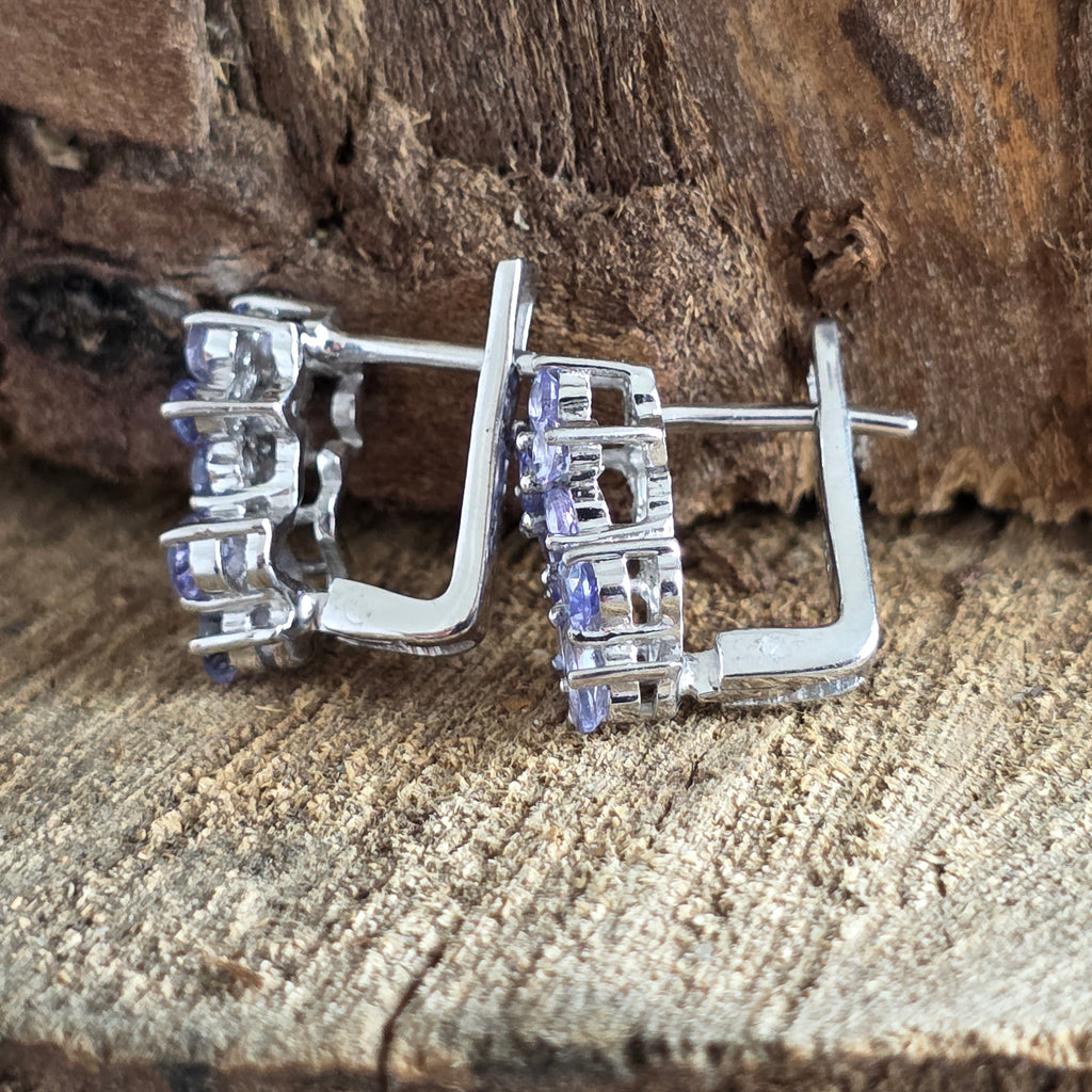 Acești cercei din argint 925 rodiat cu tanzanit natural întruchipează rafinamentul și strălucirea discretă a bijuteriilor fine.