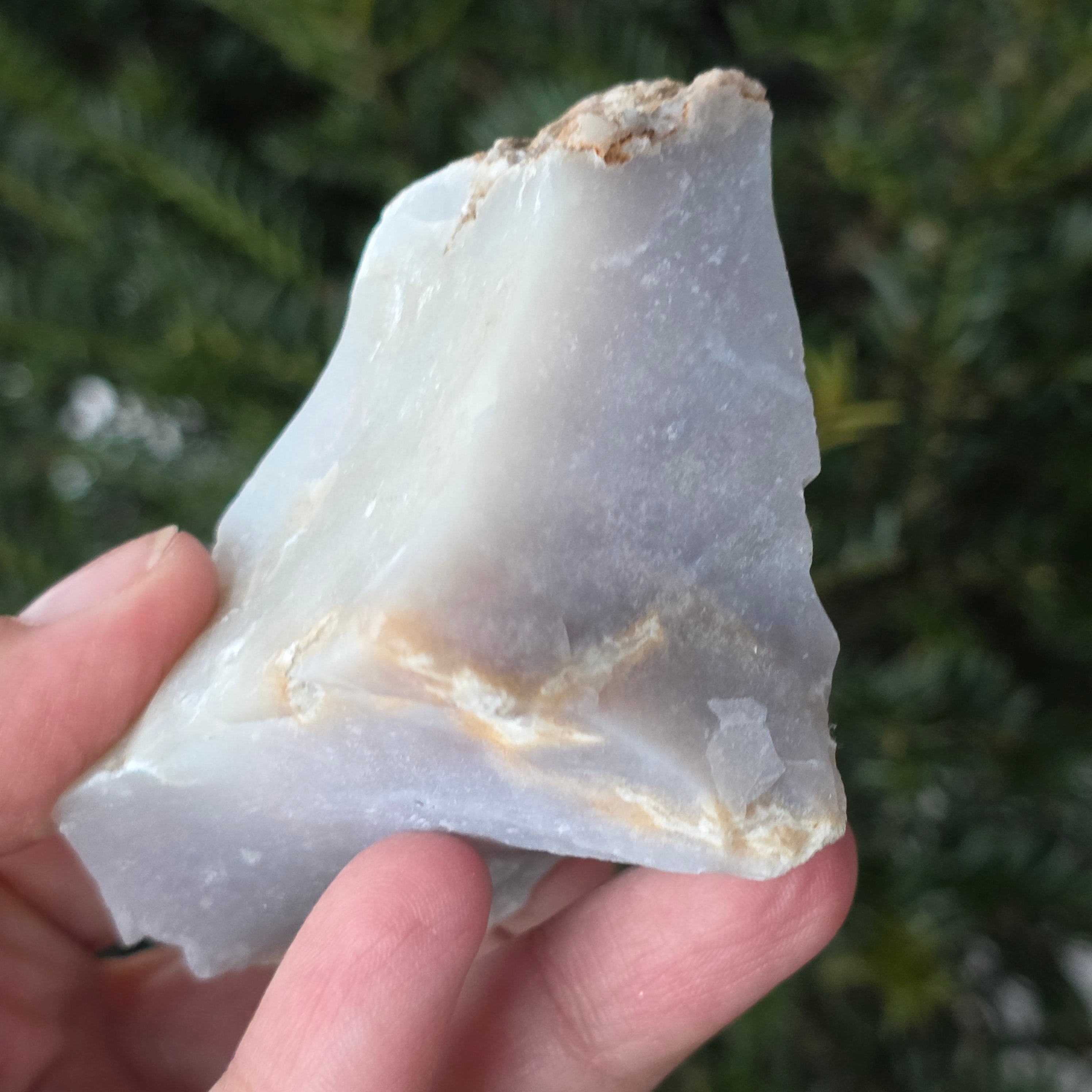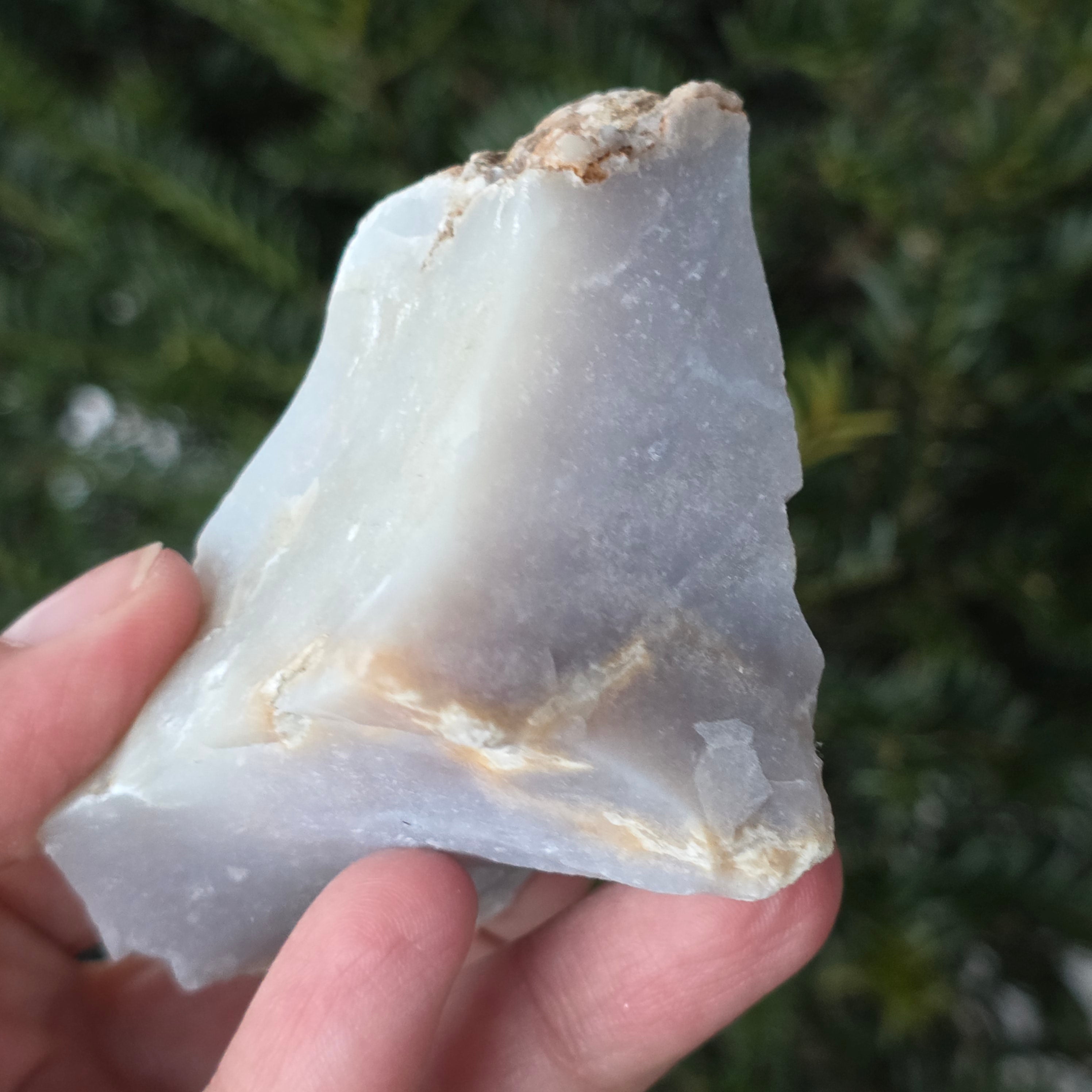 Blue chalcedony, also known as blue agate or sky chalcedony, is a variety of microcrystalline quartz that exhibits shades of blue.