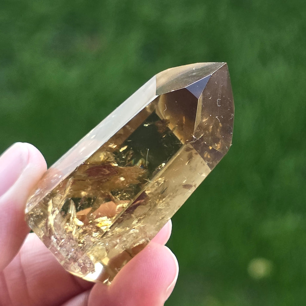 Citrine is a yellow or golden gemstone, a member of the quartz crystal family.