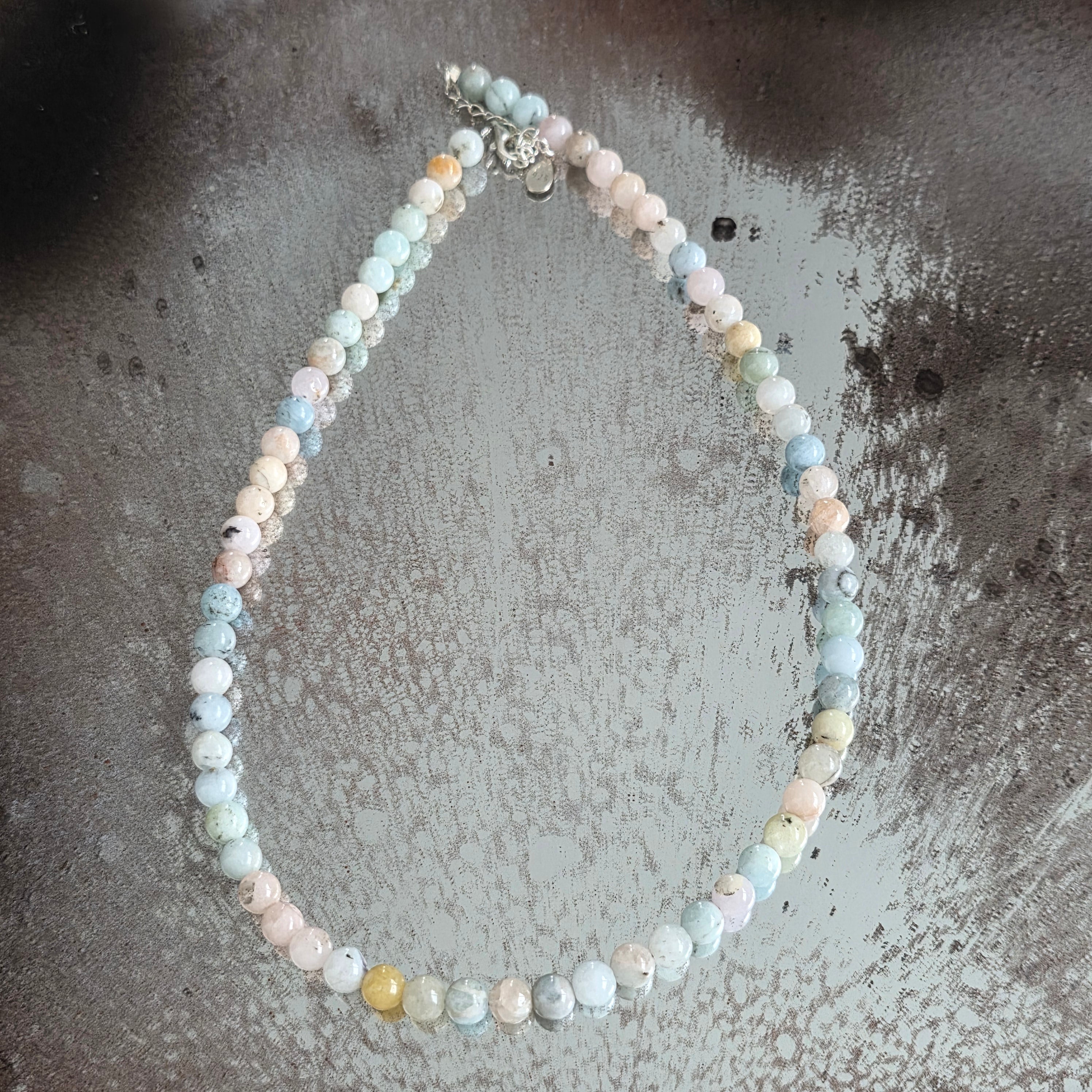 Aquamarine is the stone of emotional clarity, sincere communication, and trust in one's own truth. It is said to soothe the heart, dispel anxiety, and bring gentle courage. Pearls complement this vibration with their timeless grace – symbols of intuition, kindness, and harmony.