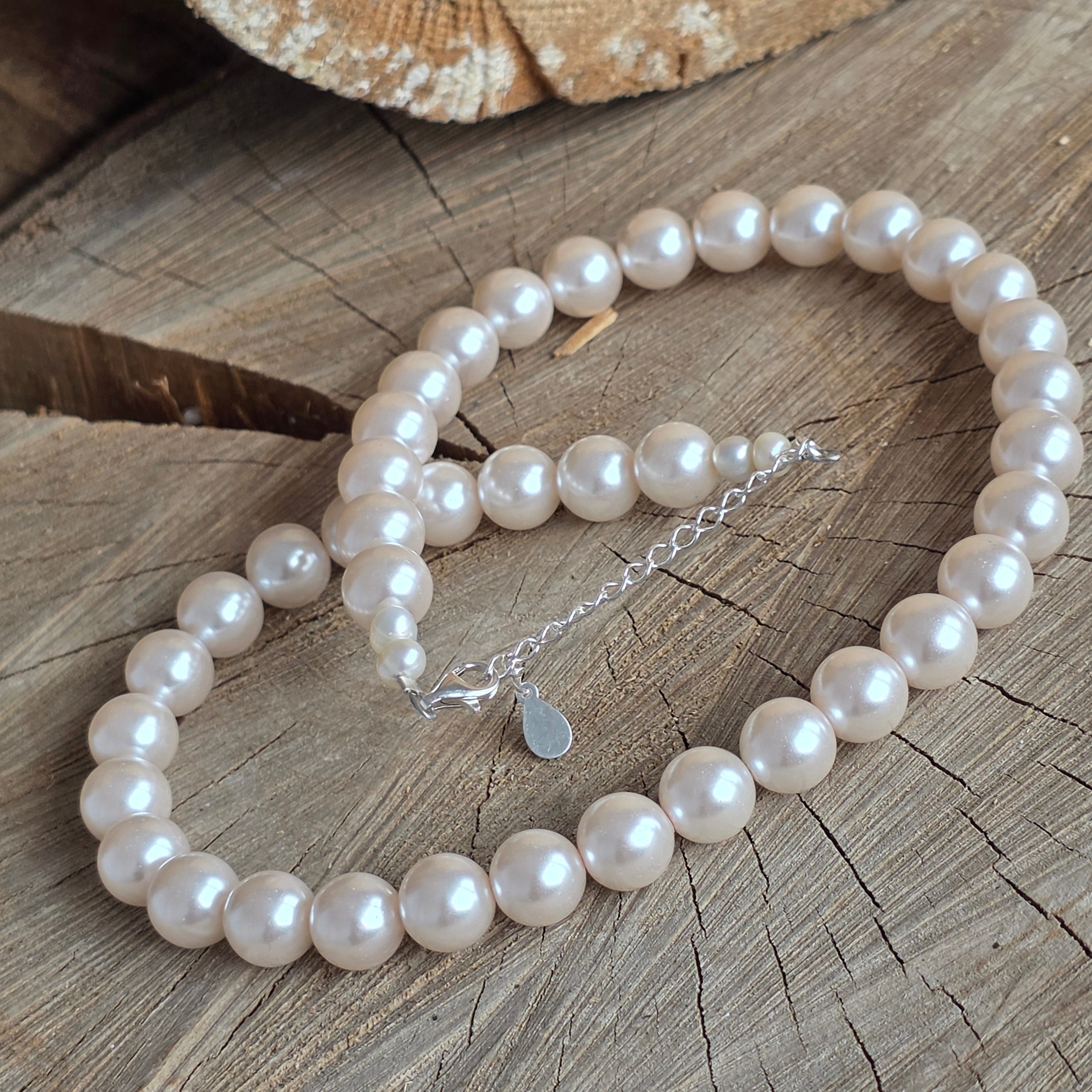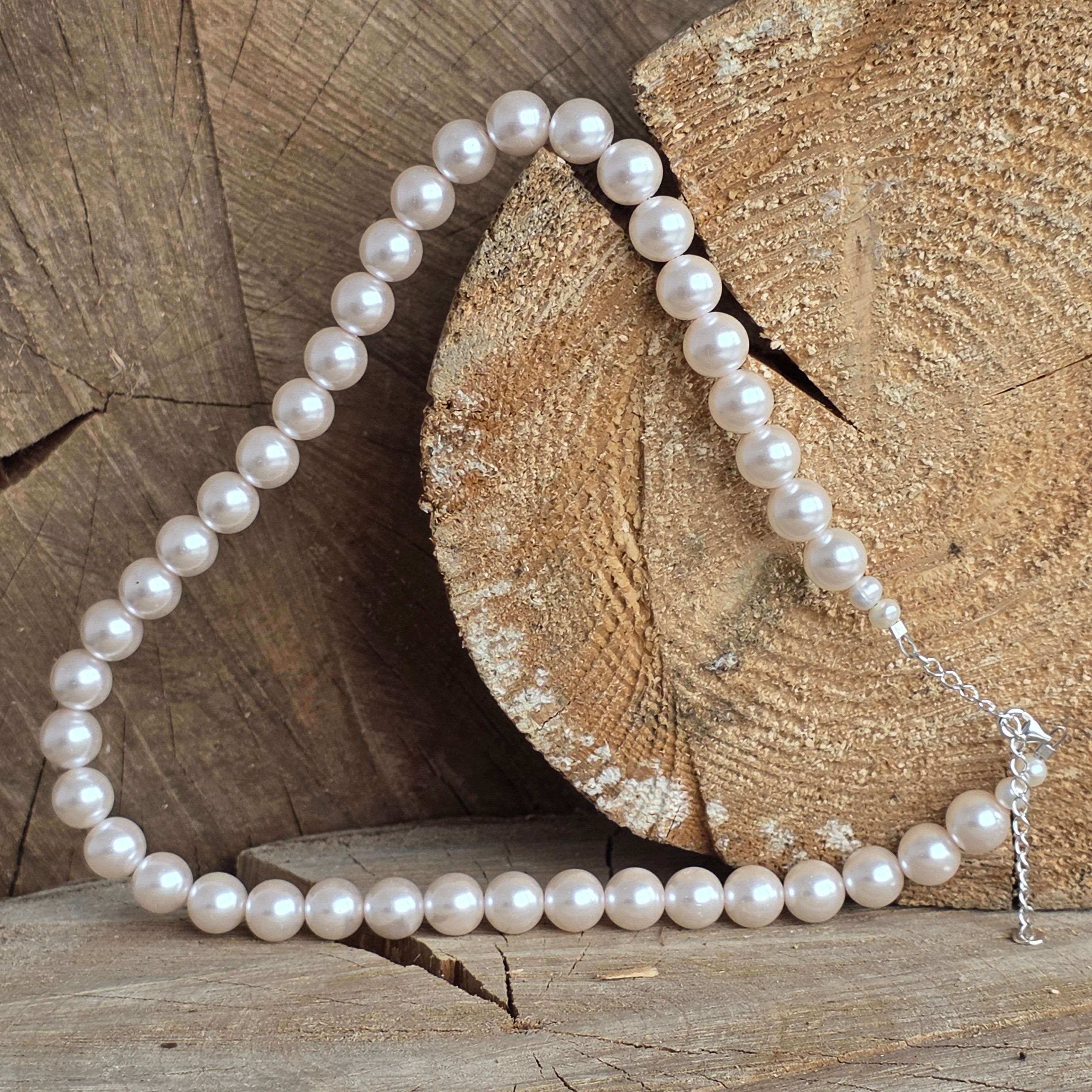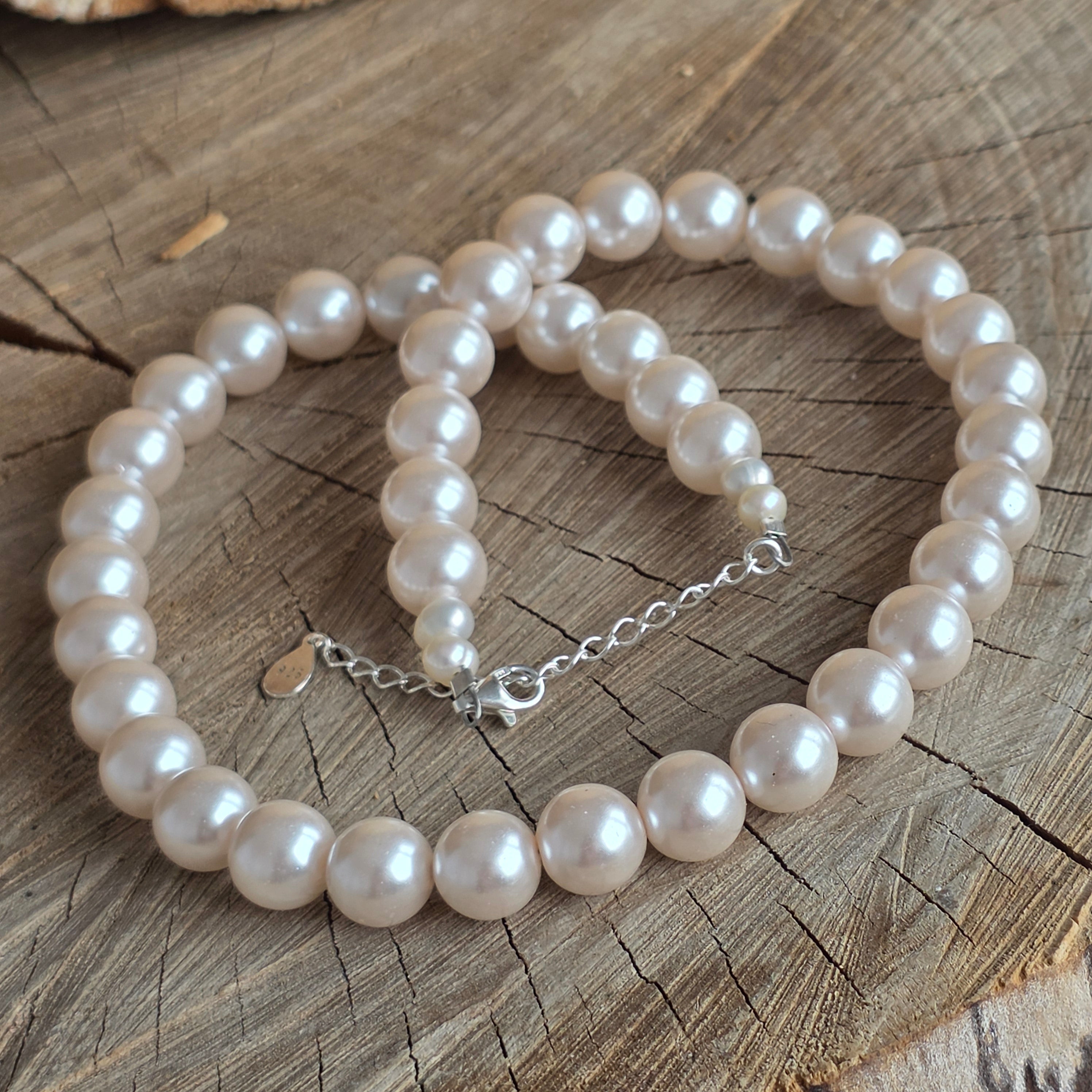 Materials: cultured pearls (9 mm spheres), 925 silver, silver lobster clasp