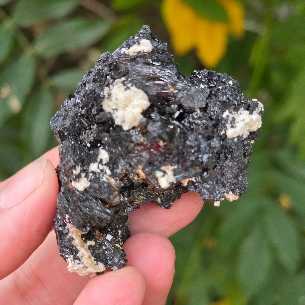 Black tourmaline, also known as Schorl, is made up of a complex mixture of borosilica and is found in a variety of crystalline forms. It is a very hard mineral and has a great resistance to scratches and wear.