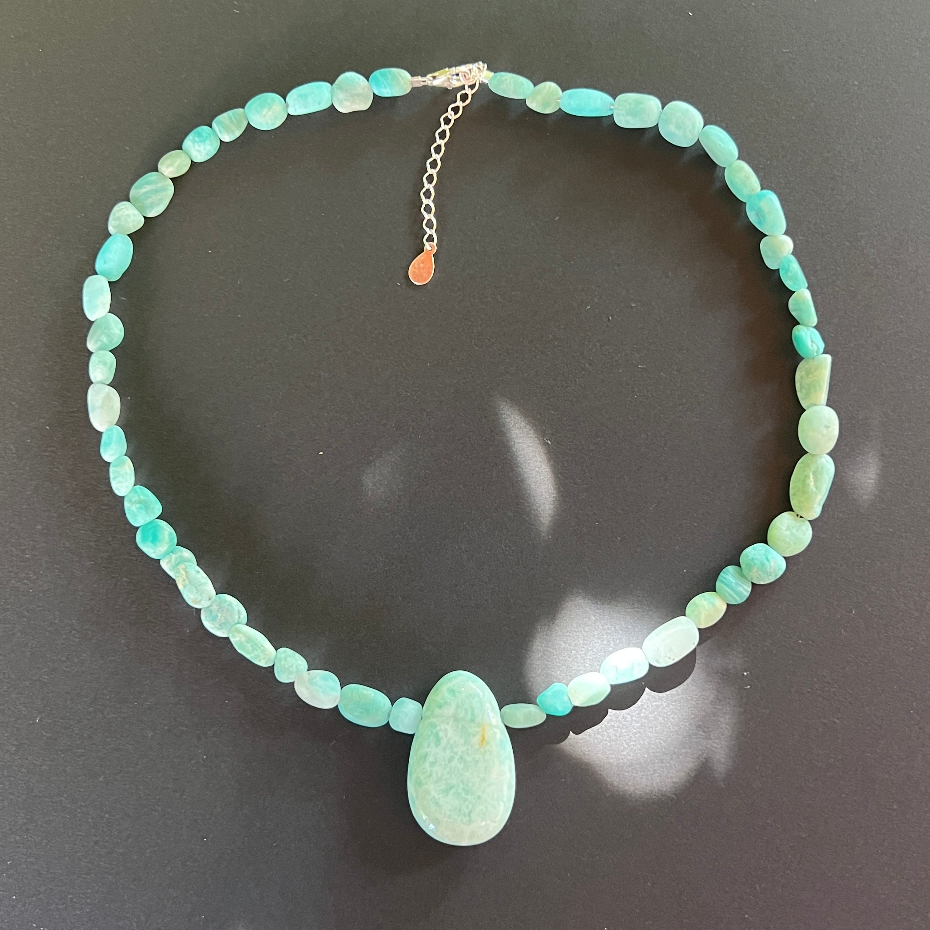 Materials: amazonit natural 8–10 mm, amazonic drop ~ 3 cm, silver 925