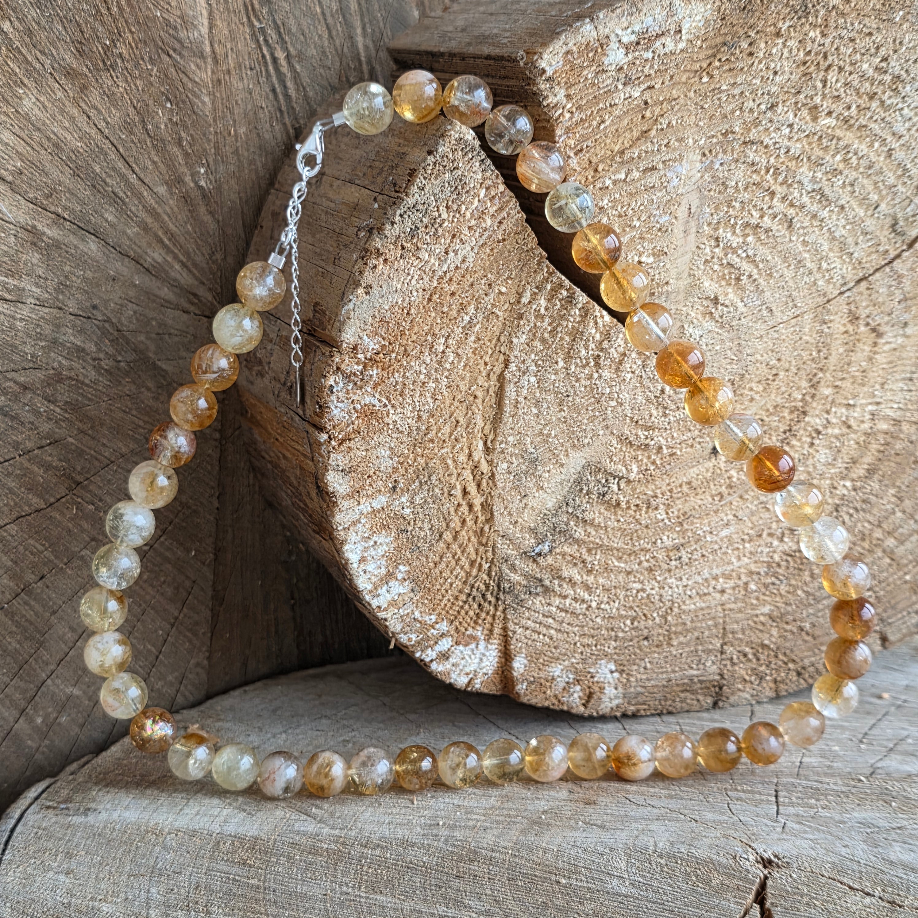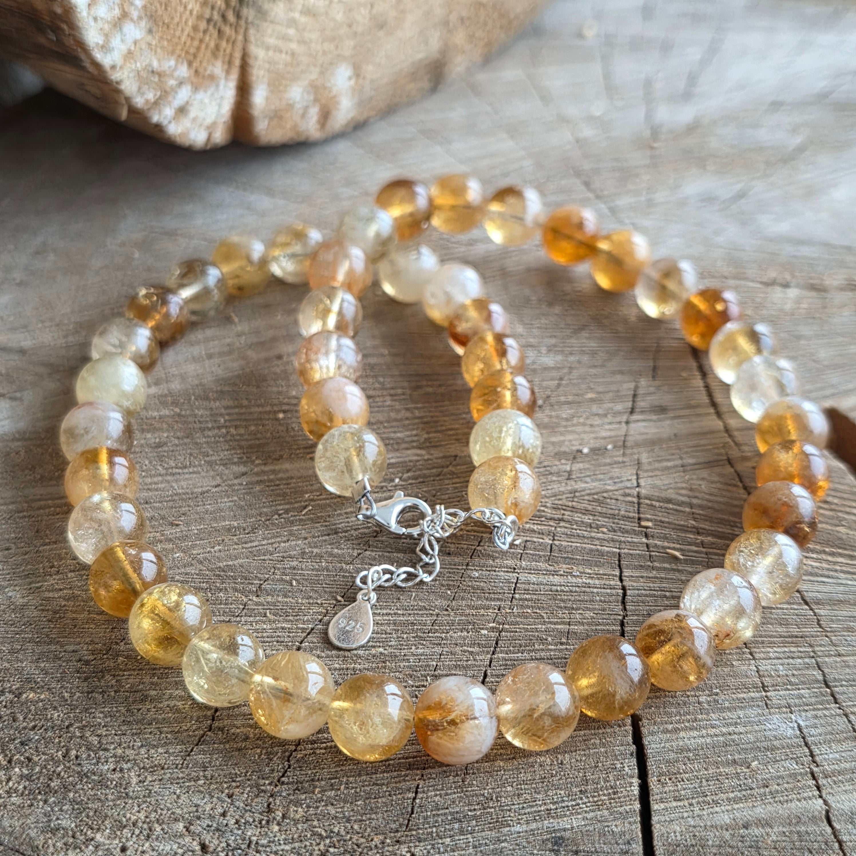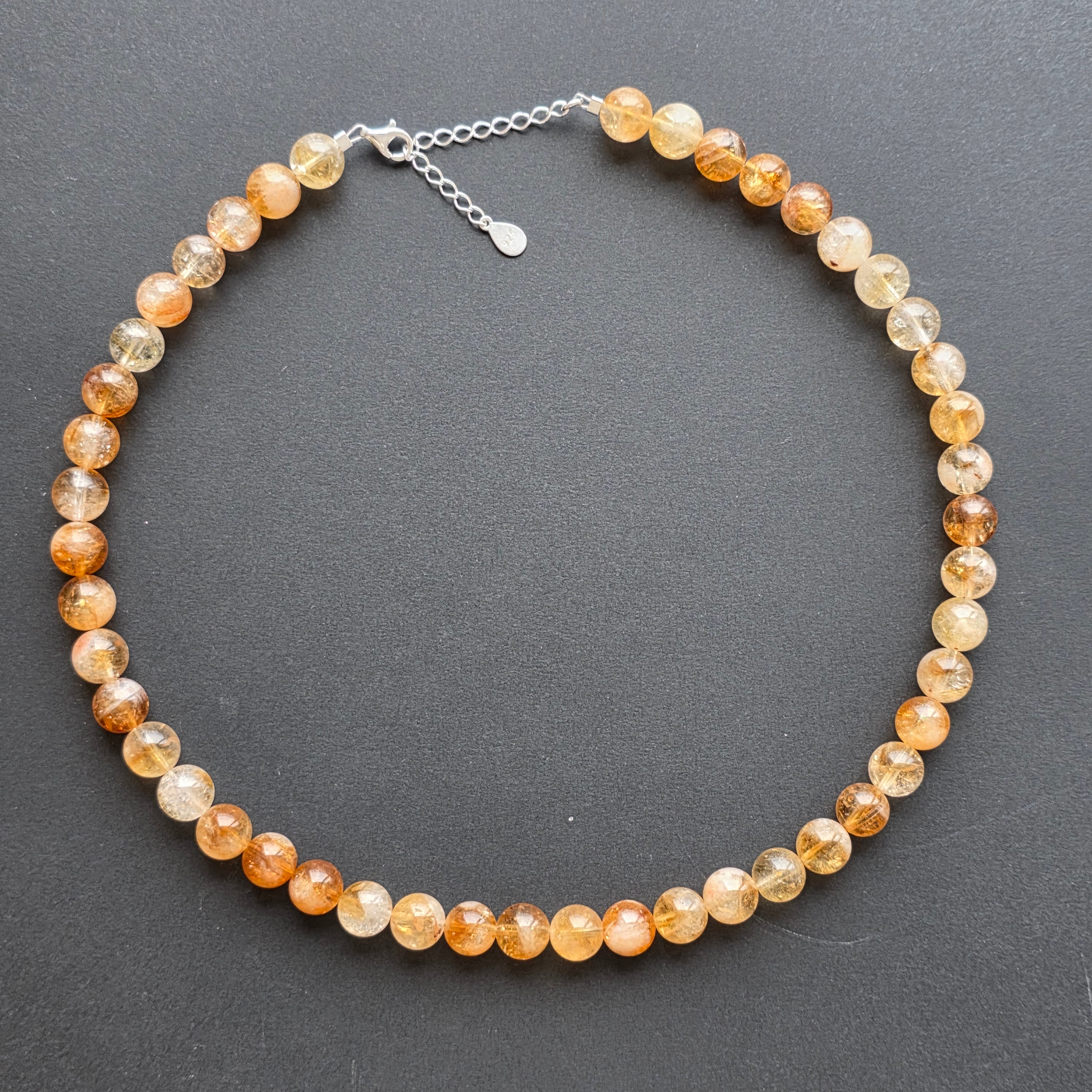 Un colier care captează lumina — pur și simplu. Realizat din citrin natural acest colier radiază căldură, bucurie și claritate. Nu doar o bijuterie, ci o amintire constantă a optimismului și a forței interioare.