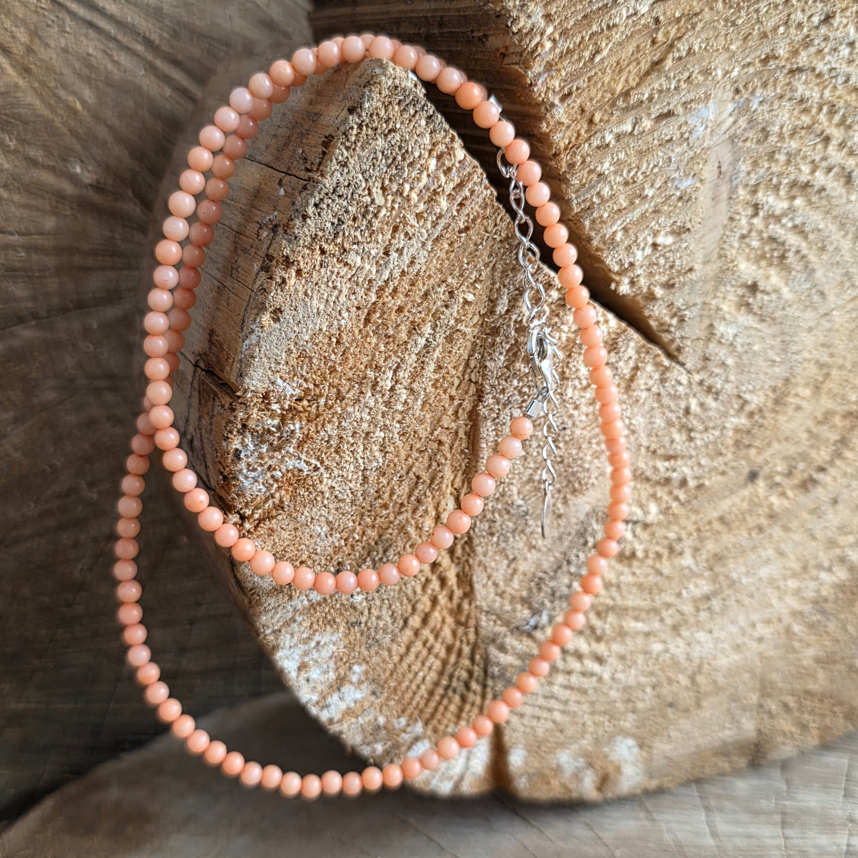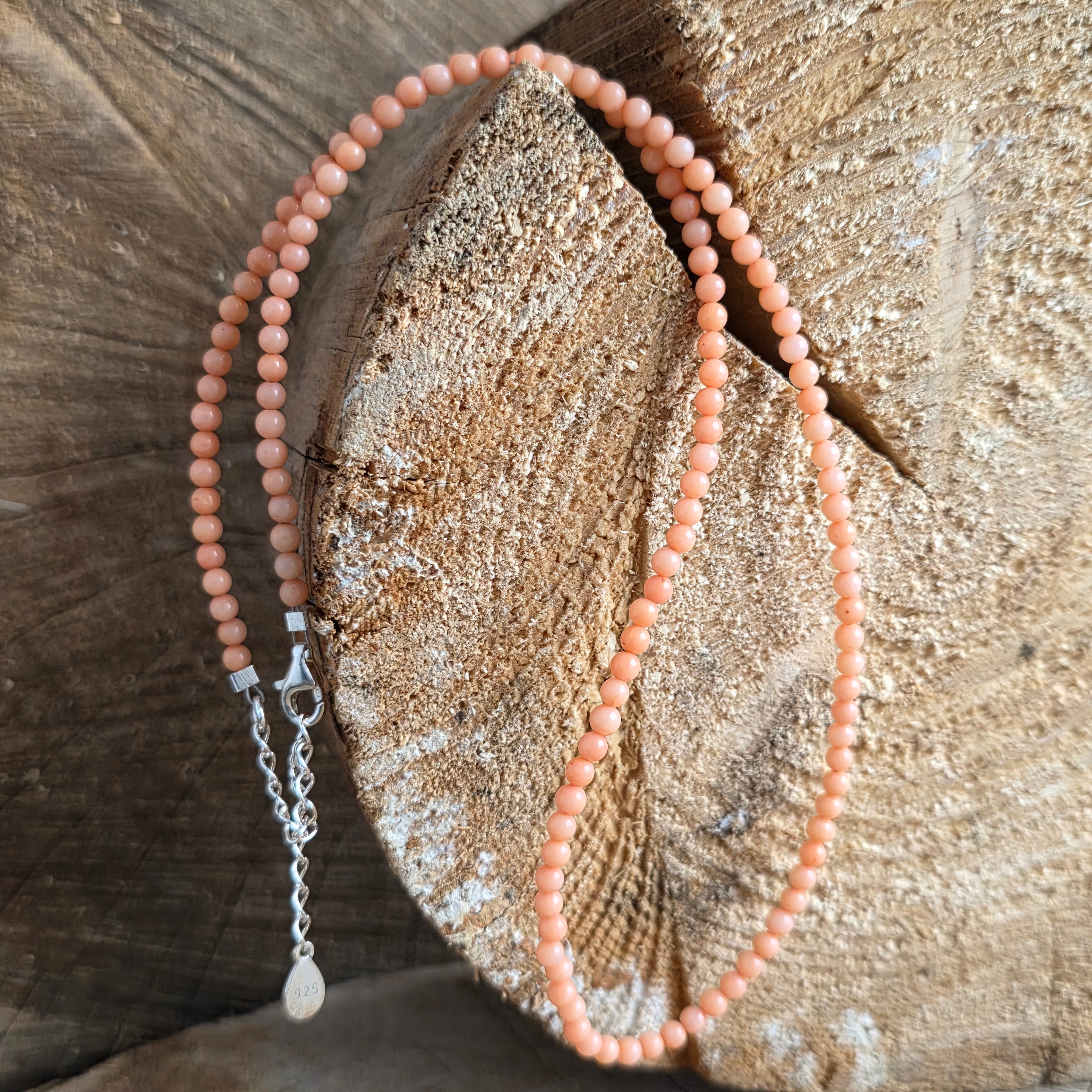Materials: Natural pink coral (3 mm spheres), 925 silver extension and closing chain