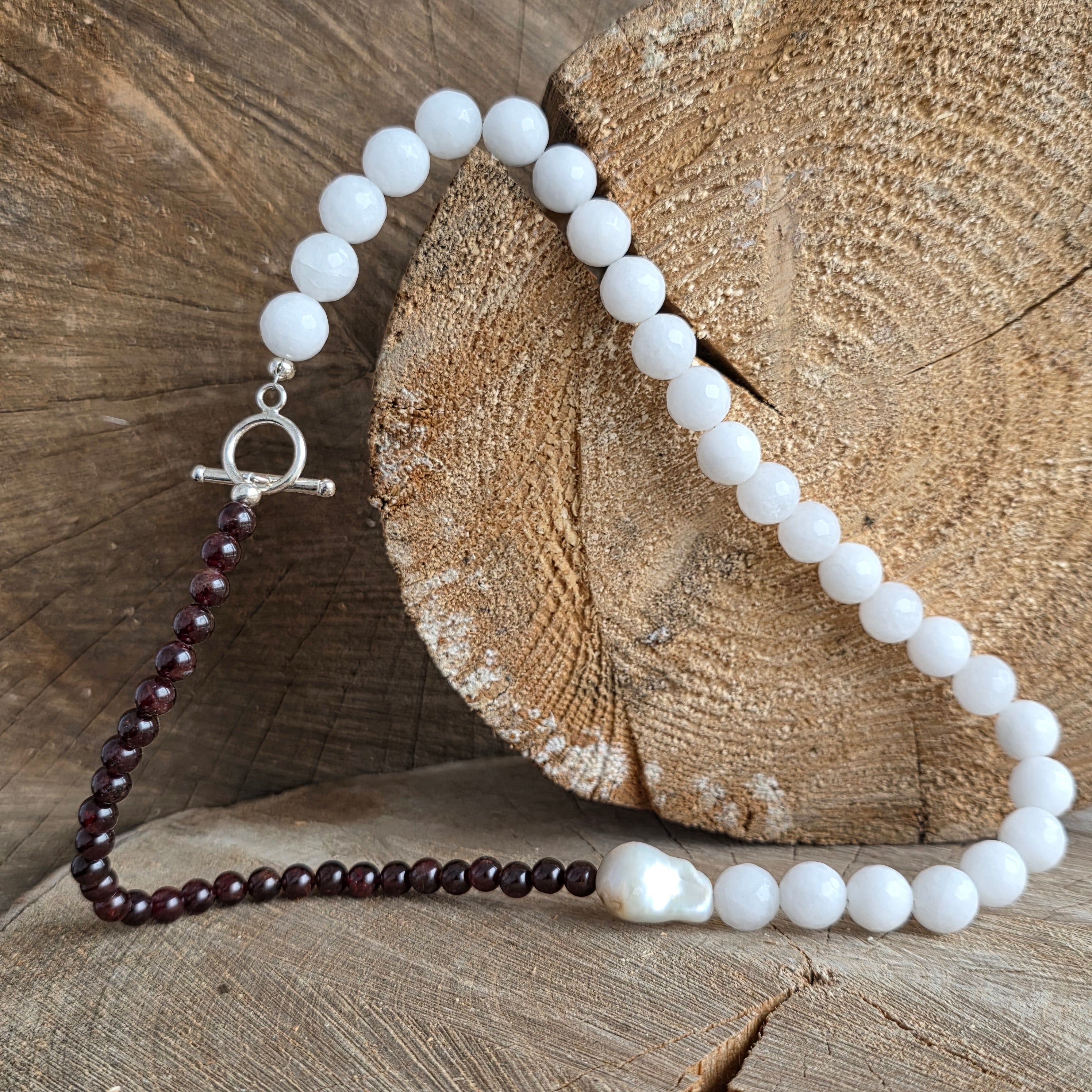 Materials: Natural Garden 6 mm, 10 mm white jade, 925 silver