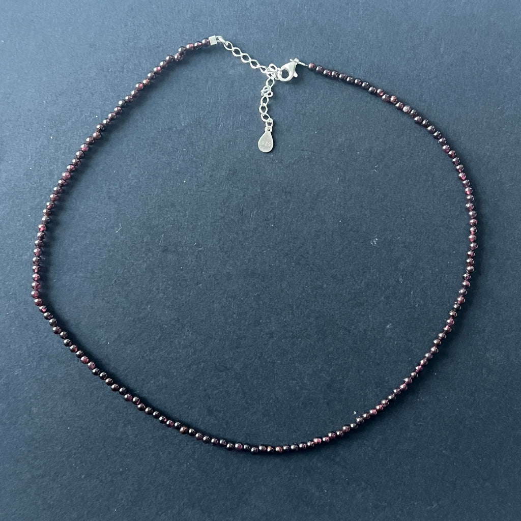 Materiale: granat natural șlefuit, mărgele sferice de 3 mm, argint 925