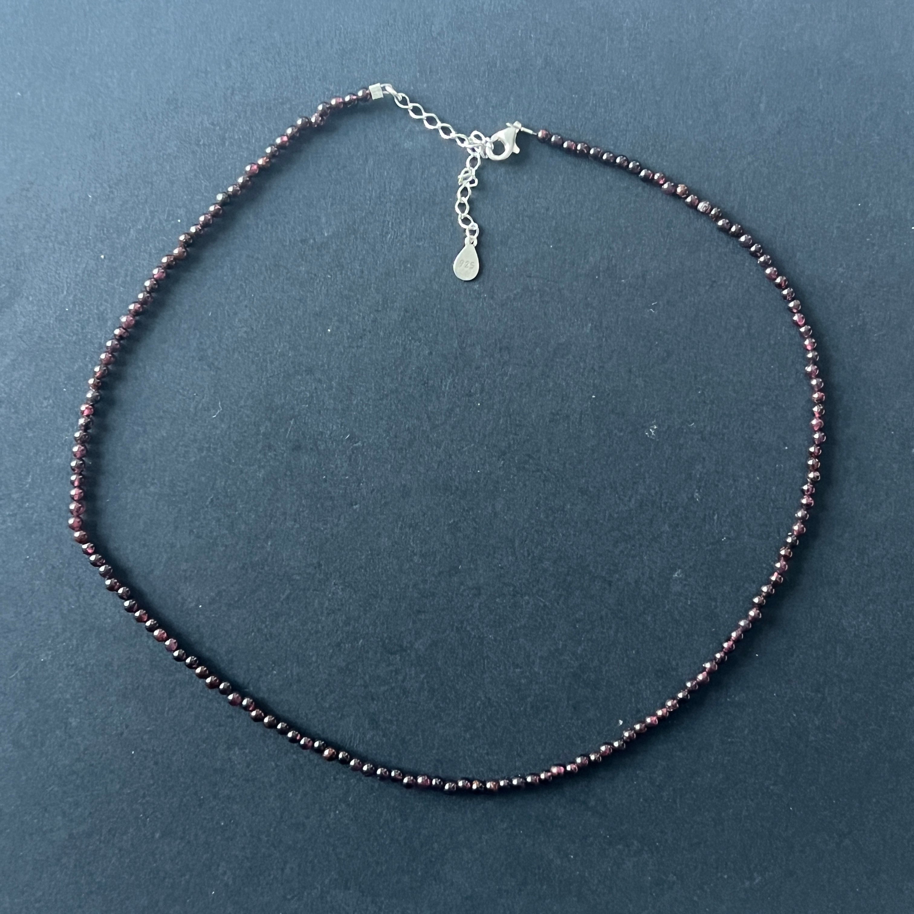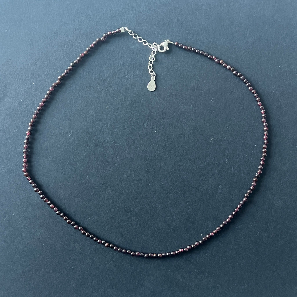 Colierul Passion #125 poartă energia vie a granatului — piatra pasiunii, a curajului și a transformării. Fiecare sferă de 3 mm captează lumina asemenea unui jar mocnit, vibrând în nuanțe profunde de roșu-vișiniu.