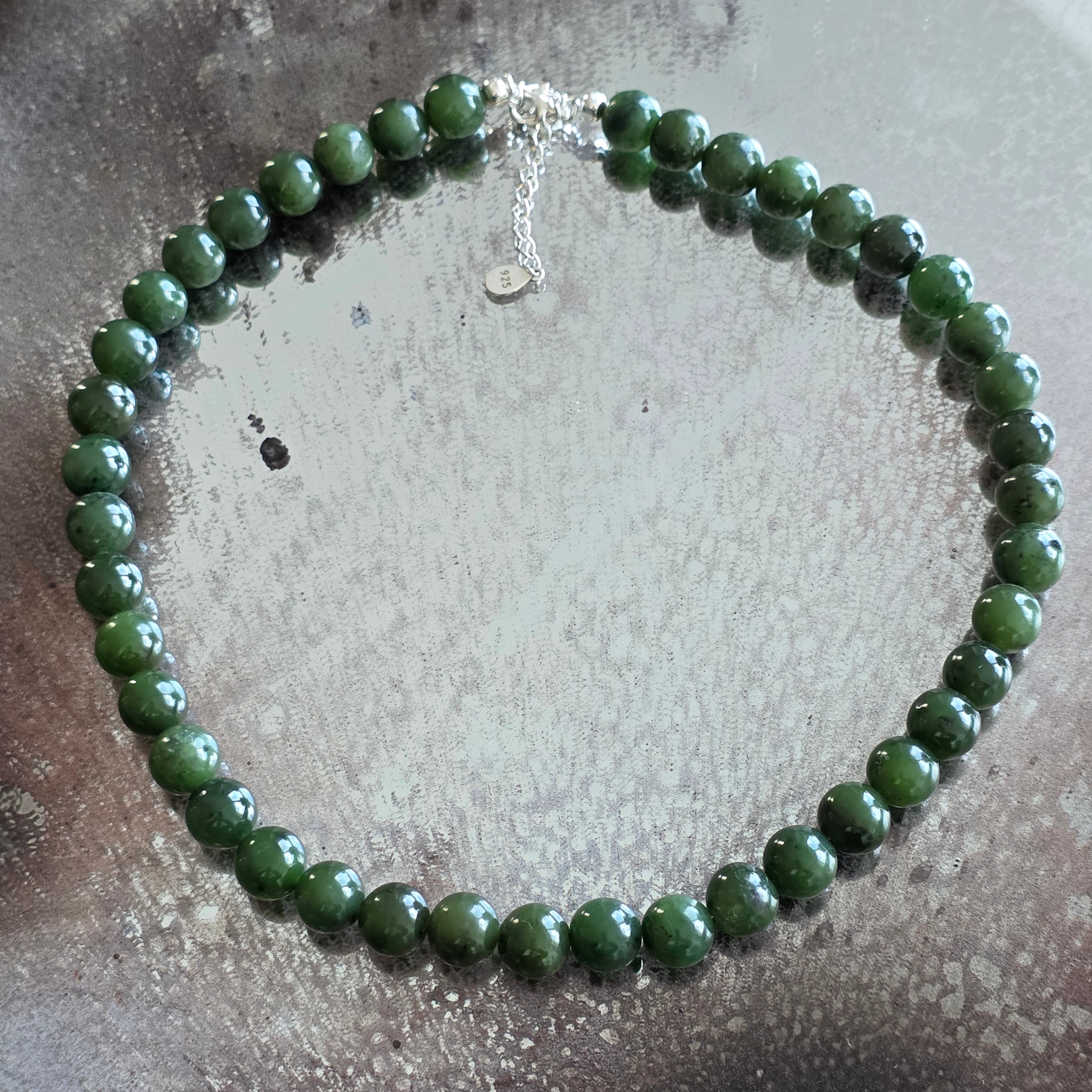 Materials: 10 mm green jade nephrite, 925 silver