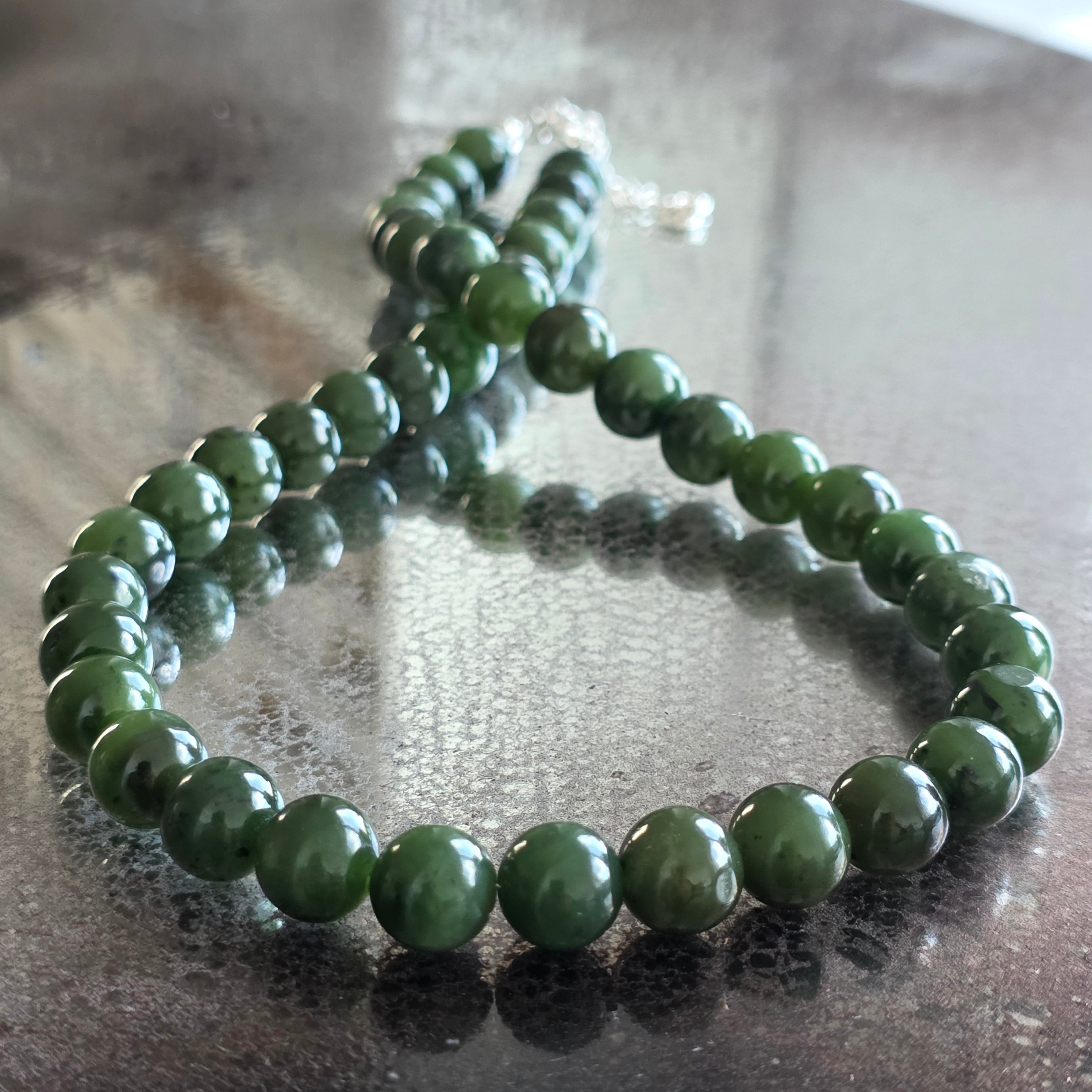 A necklace with presence, power, and silent nobility – made from 10 mm round green jade beads, each carrying within its depth the quiet breath of nature and tradition.