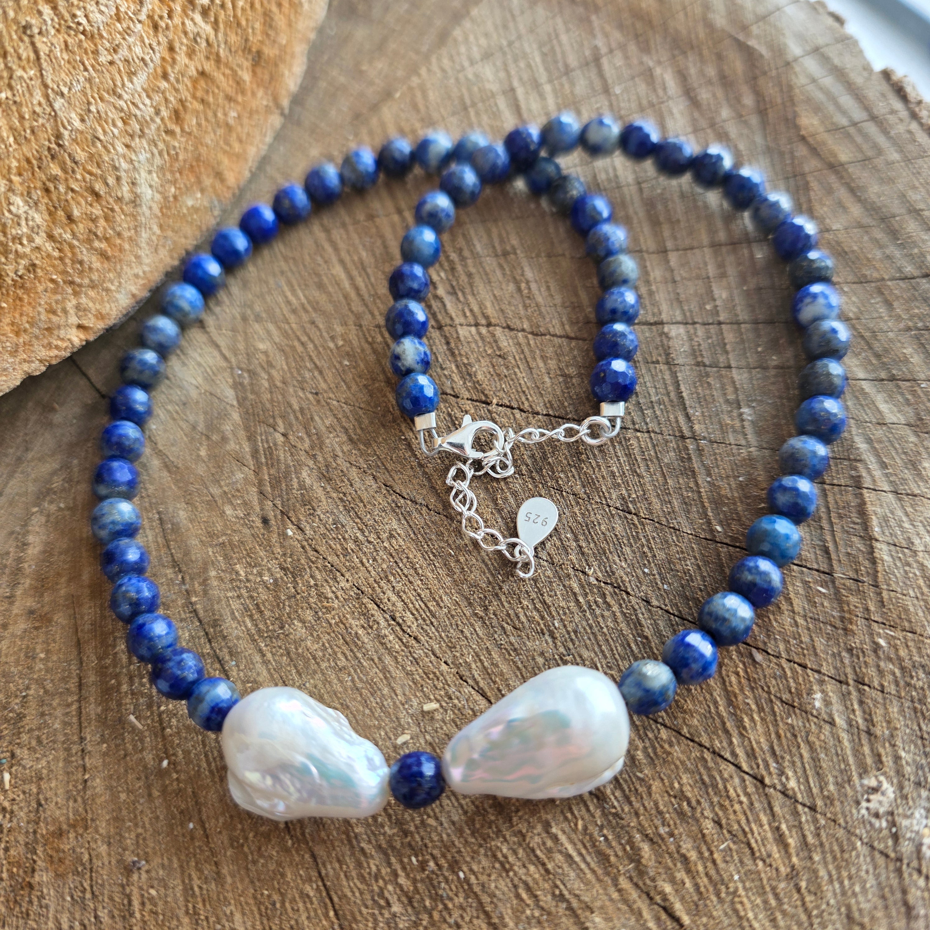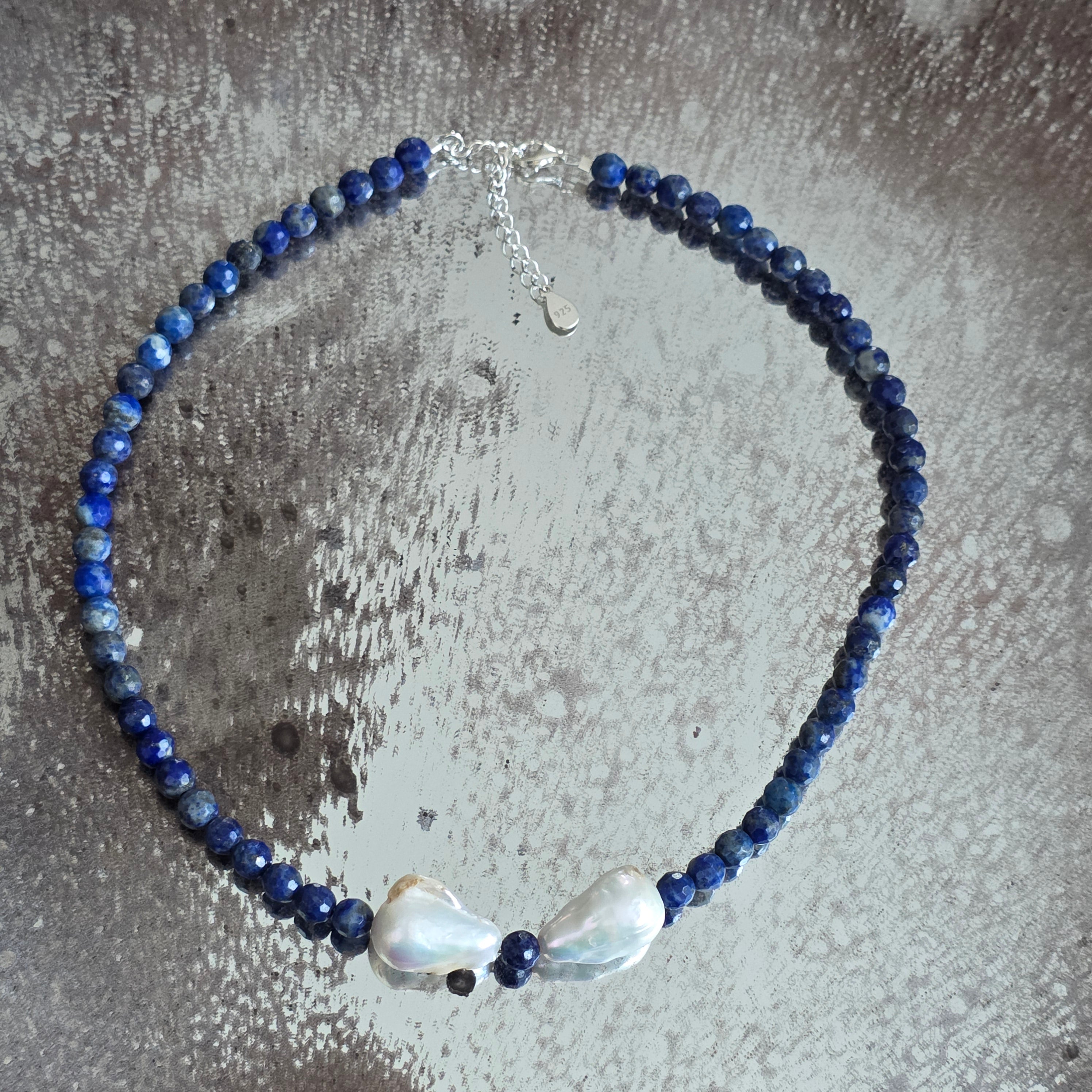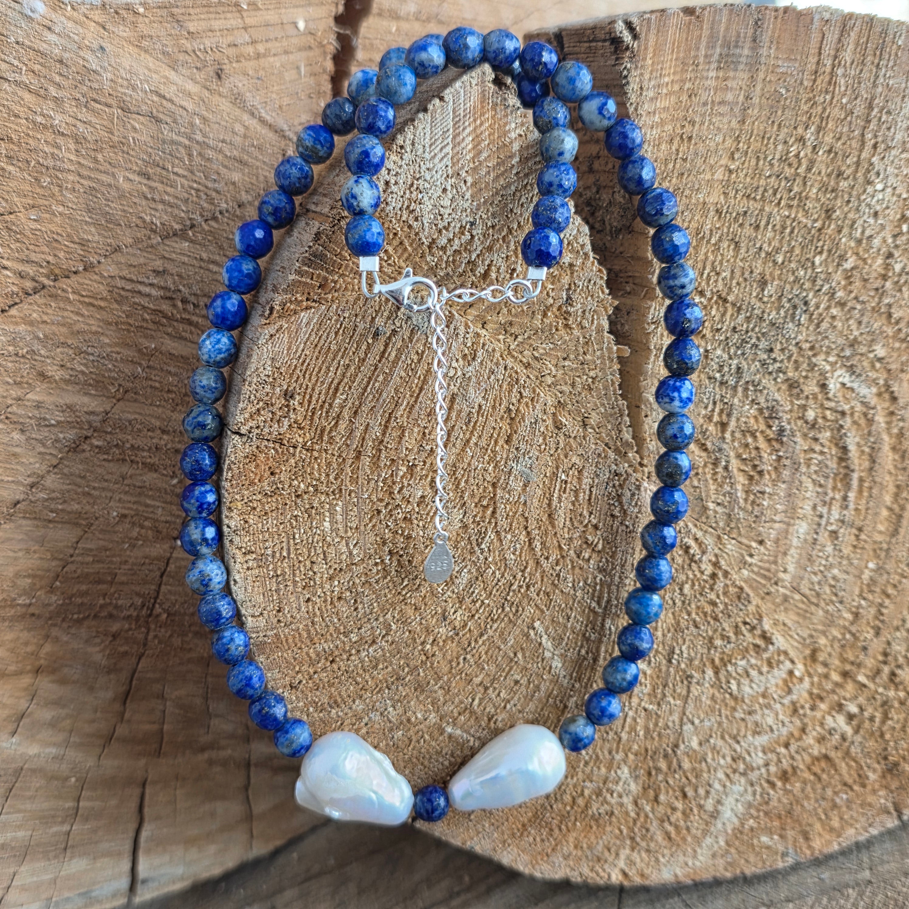 Materials: lapis lazuli (6 mm faceted beads), natural baroque pearls, 925 silver