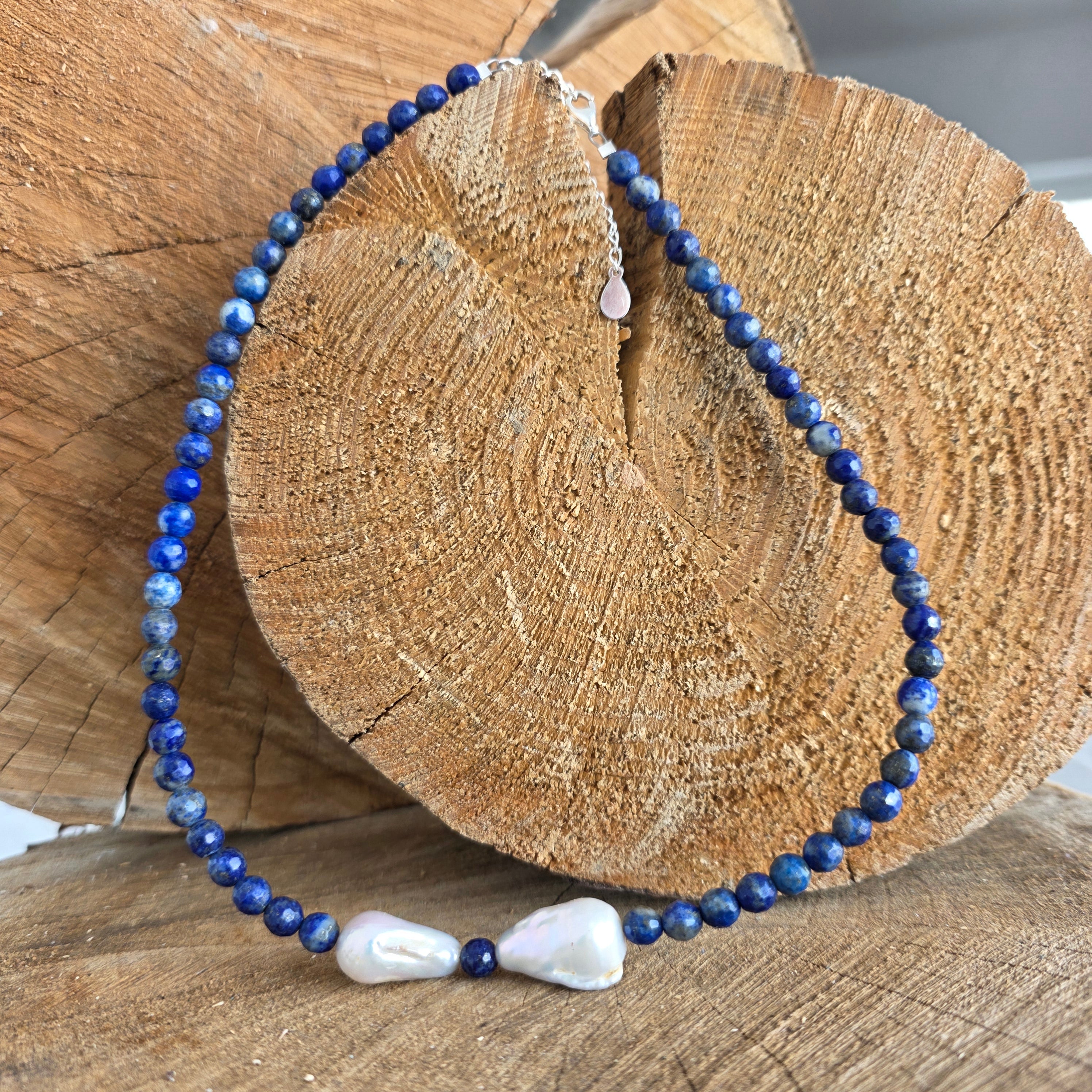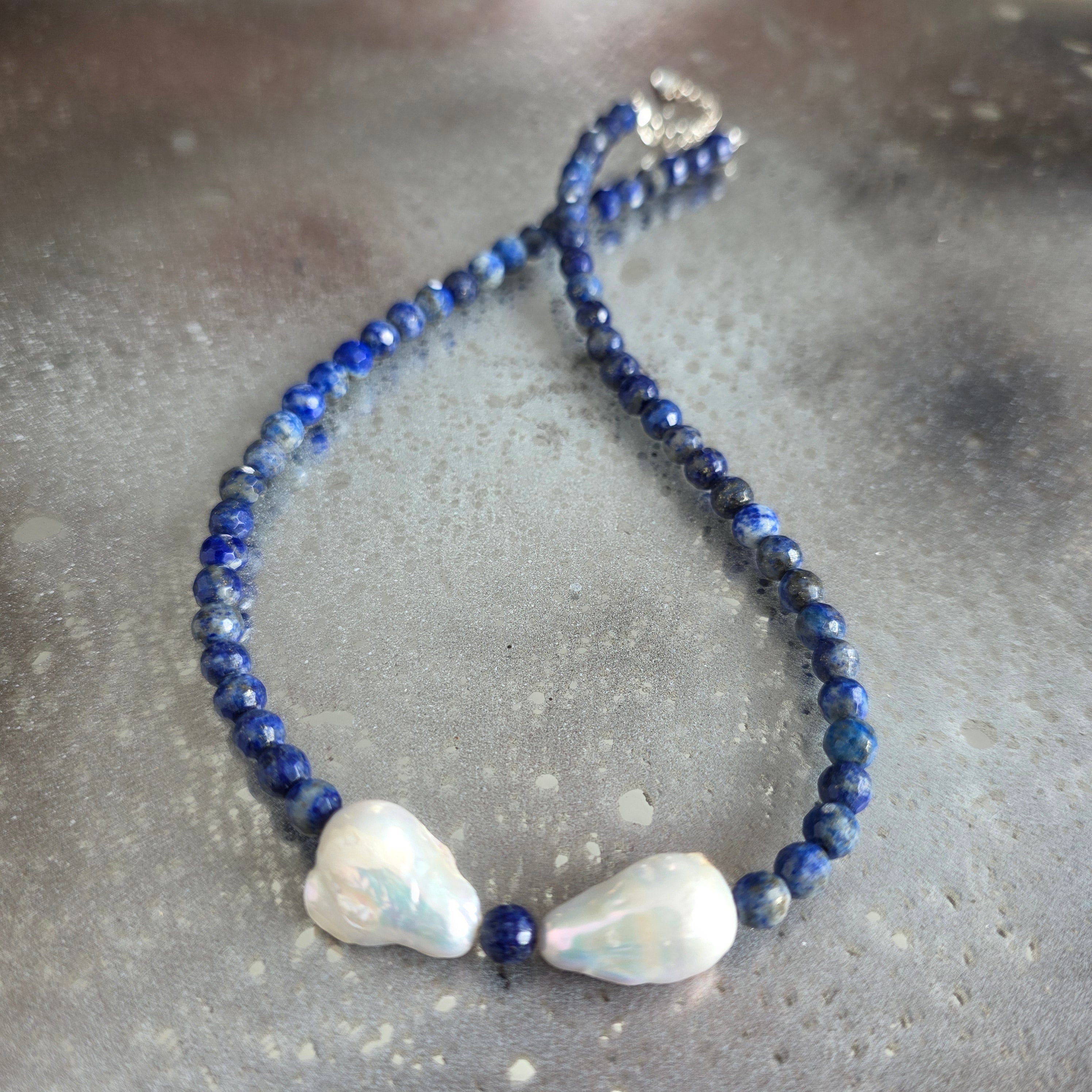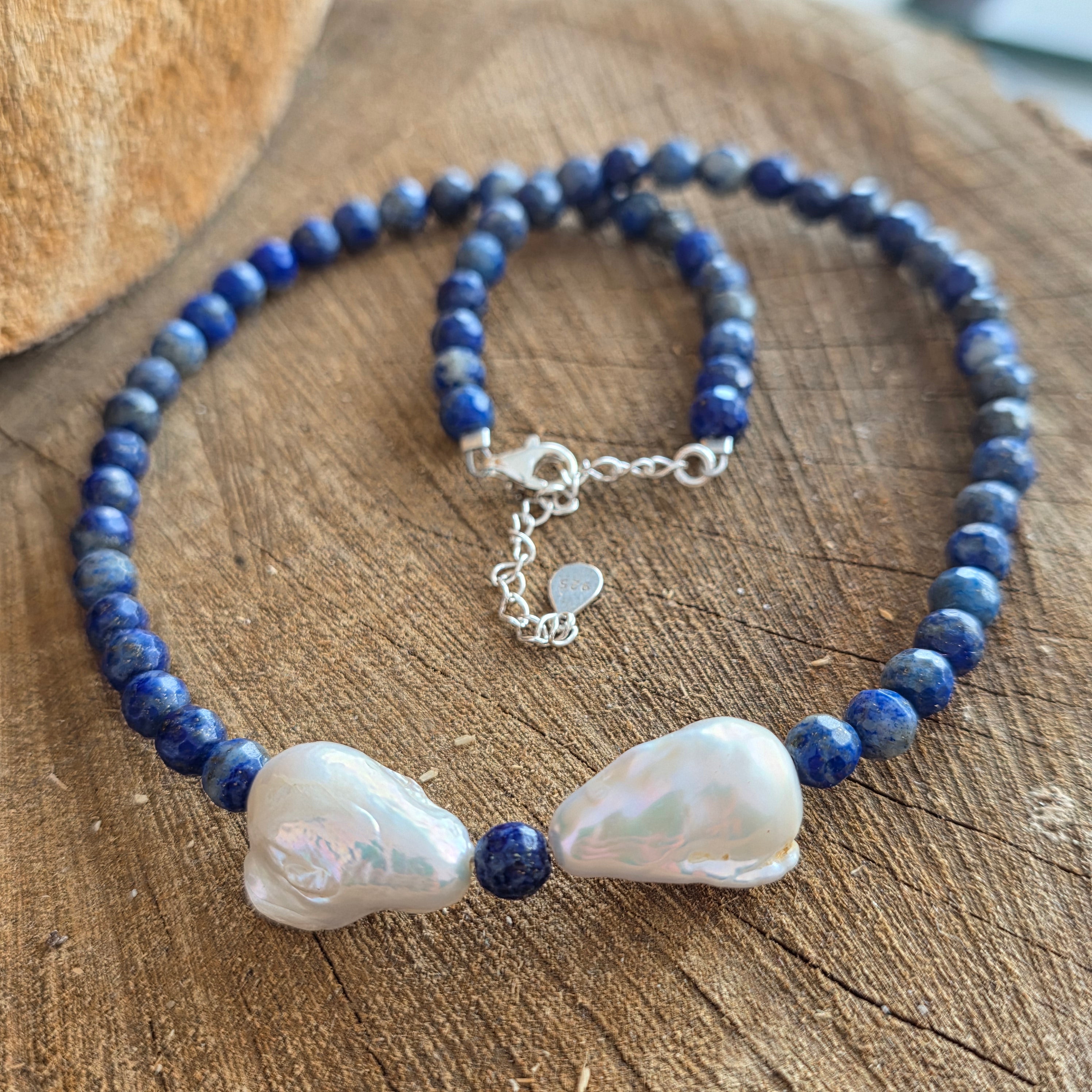 Materials: lapis lazuli (6 mm faceted beads), natural baroque pearls, 925 silver