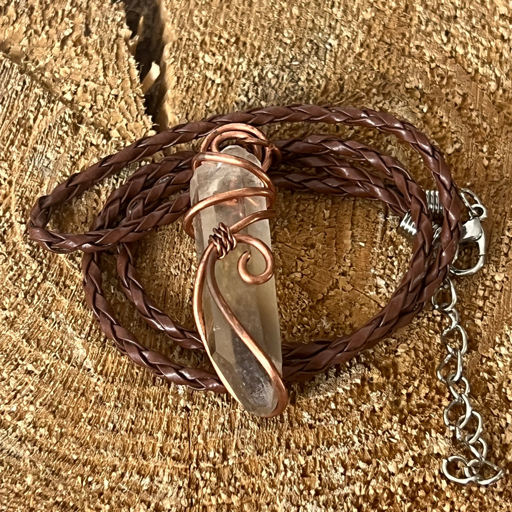 Description - Colier pandantiv cuart fumuriu in cupru/artistic wire m3