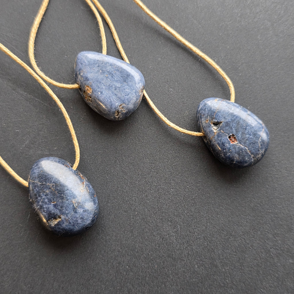 Safirul natural este cunoscut pentru energia lui profundă, asociată cu claritatea mentală, concentrarea și înțelepciunea interioară. Piatra de 2–3 cm, șlefuită în forma elegantă drop, păstrează nuanțele albastre intense și naturale specifice safirului brut prelucrat. Este un pandantiv discret, dar puternic ca prezență, perfect pentru purtare zilnică.