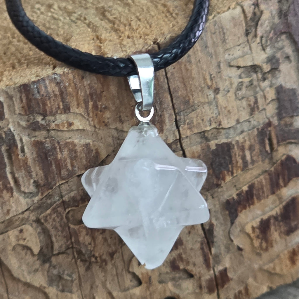 pendant Merkaba from the colorless quartz It is a jewel of pure light and spiritual clarity. Carefully carved in the sacred form merkabah - the symbol of the union between spirit, body and light - this crystal amplifies positive vibrations and personal energy.
