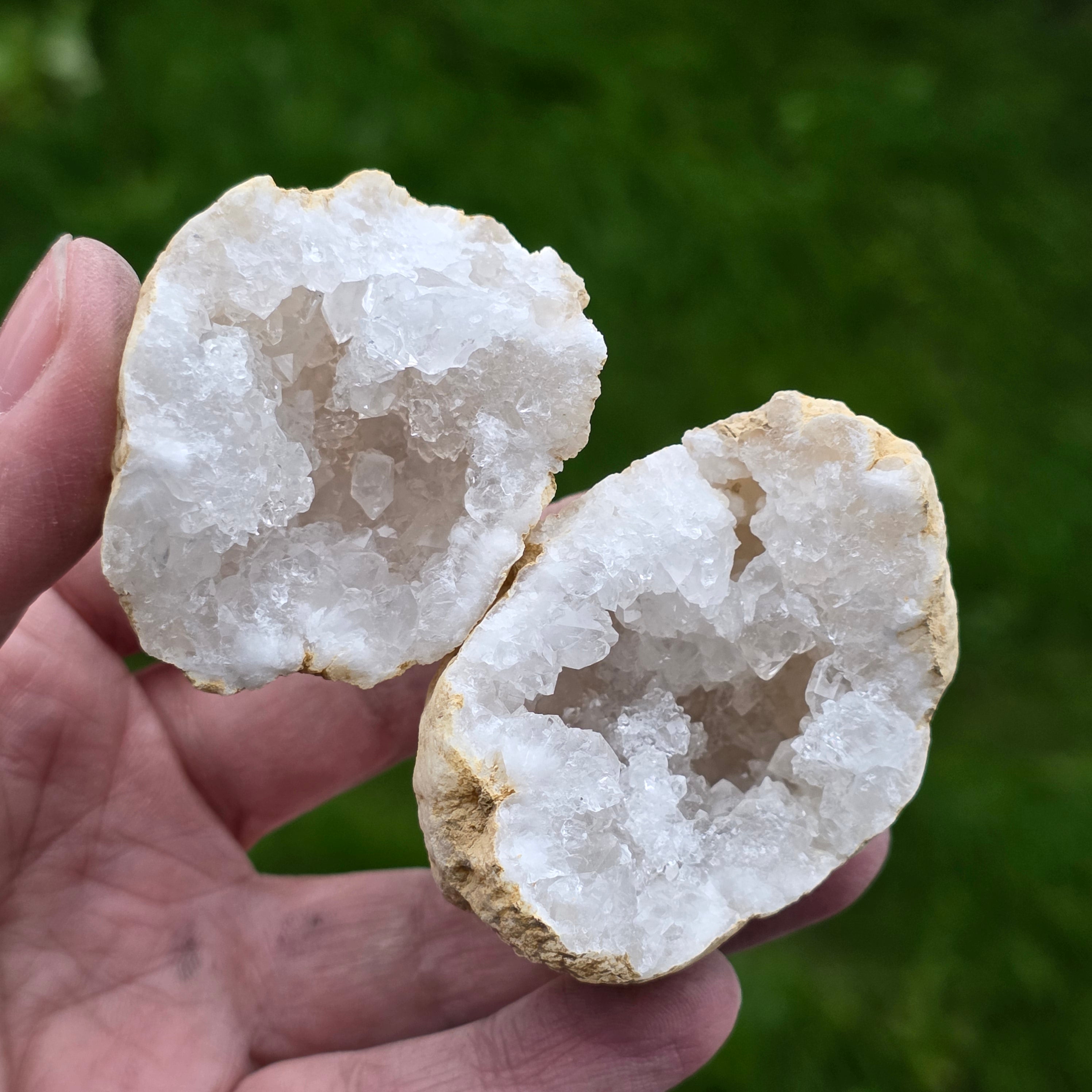 Rock quartz geodes are very popular among collectors and enthusiasts alike, as they reveal a hidden beauty when cut or broken, exposing the shiny crystals inside. These geodes can vary in size, from small formations, ideal for decoration or collections, to larger specimens, which become true centerpieces in interior decorations.