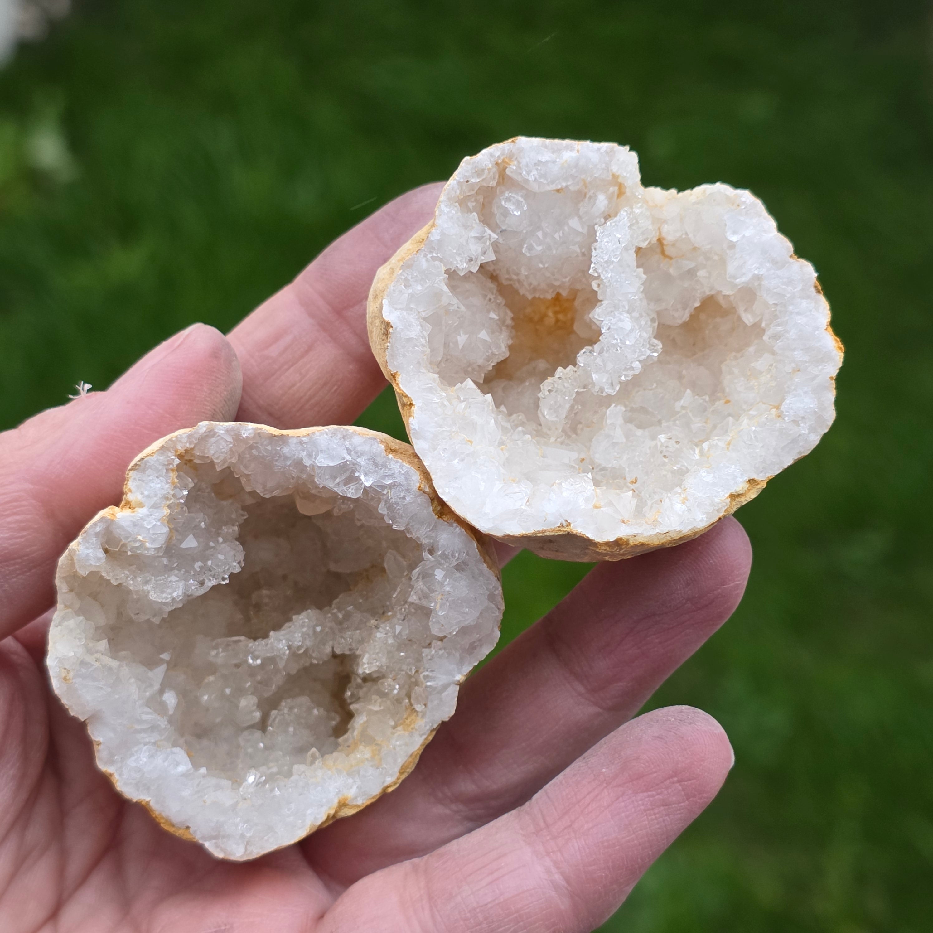 Rock quartz geodes are very popular among collectors and enthusiasts alike, as they reveal a hidden beauty when cut or broken, exposing the shiny crystals inside. These geodes can vary in size, from small formations, ideal for decoration or collections, to larger specimens, which become true centerpieces in interior decorations.