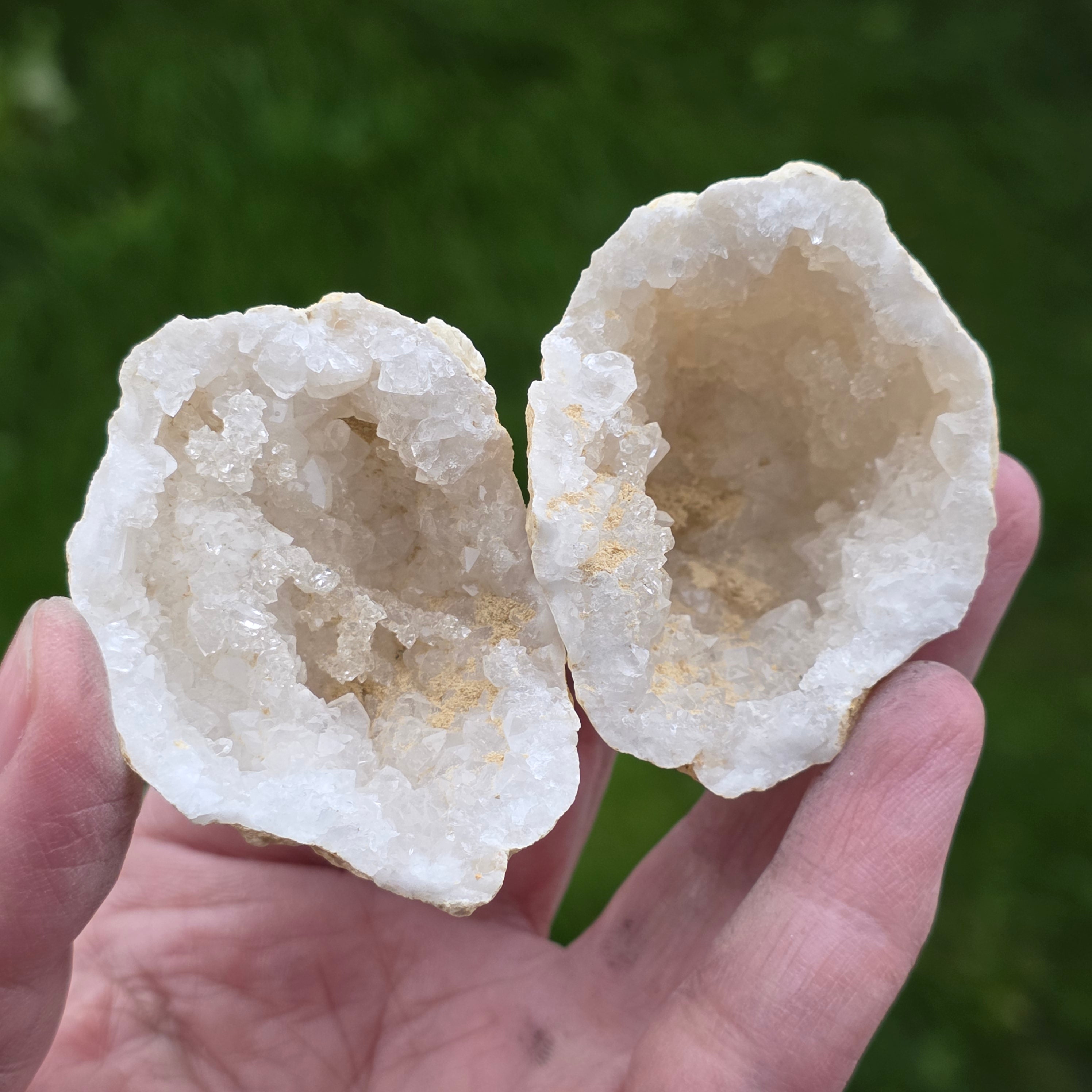 Rock quartz geodes are very popular among collectors and enthusiasts alike, as they reveal a hidden beauty when cut or broken, exposing the shiny crystals inside. These geodes can vary in size, from small formations, ideal for decoration or collections, to larger specimens, which become true centerpieces in interior decorations.