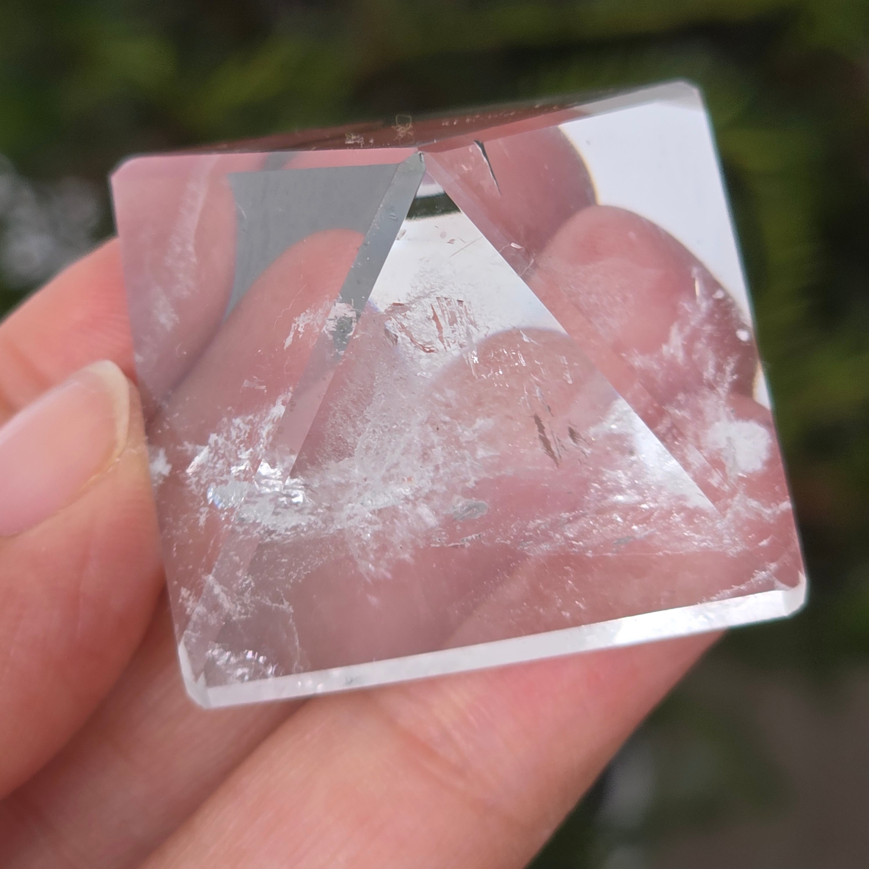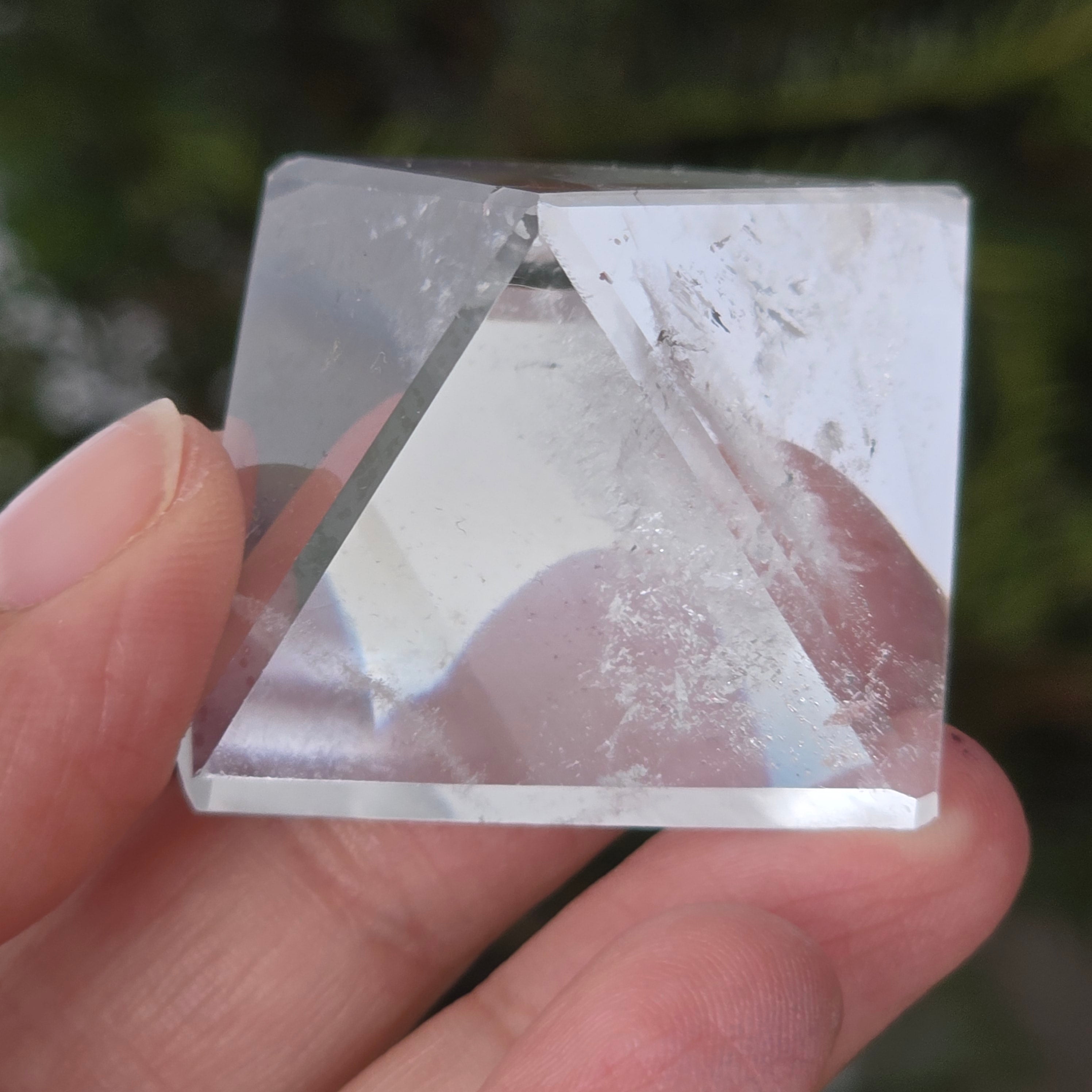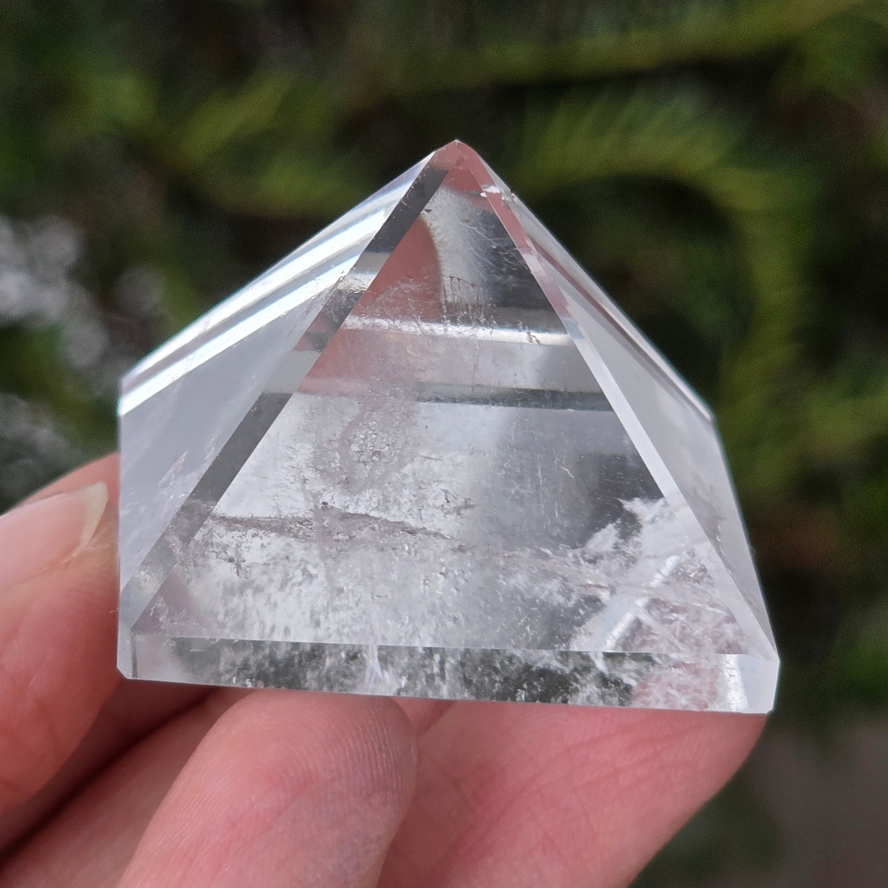The colorless quartz pyramid is associated with clarity, amplification of intention, and energetic balance, its shape concentrating and directing energy in an orderly manner. It is often used as a symbol of a clear mind and the harmony between thought, emotion, and action.
