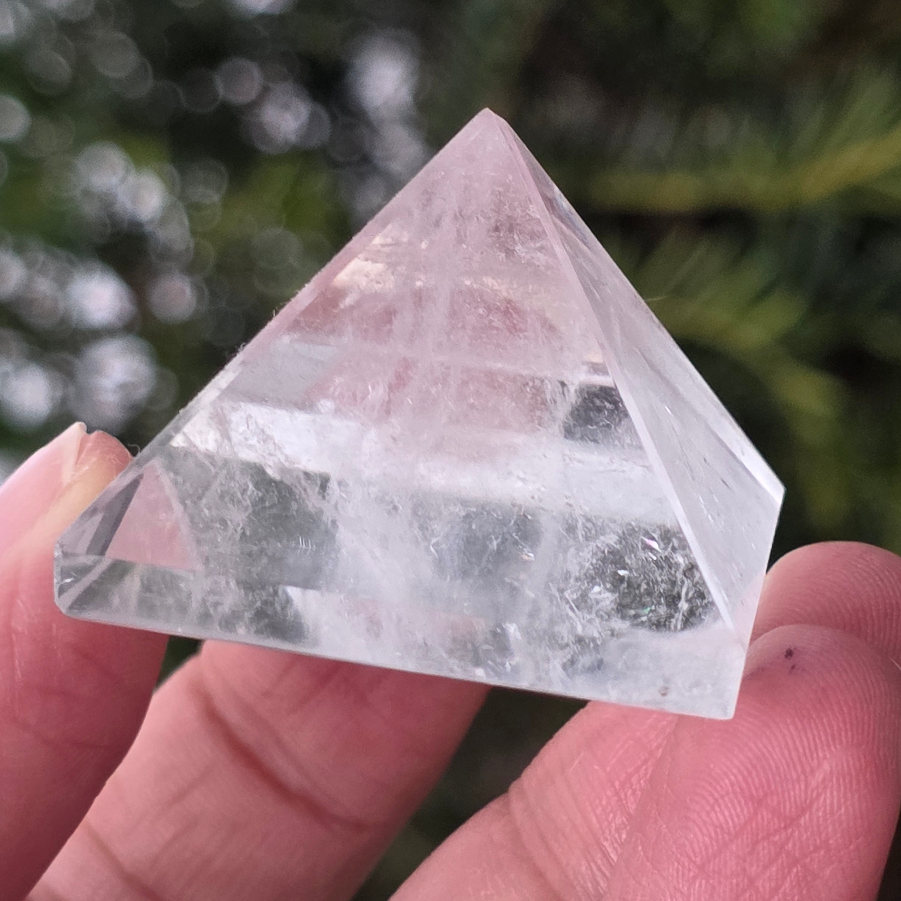 The colorless quartz pyramid is associated with clarity, amplification of intention, and energetic balance, its shape concentrating and directing energy in an orderly manner. It is often used as a symbol of a clear mind and the harmony between thought, emotion, and action.