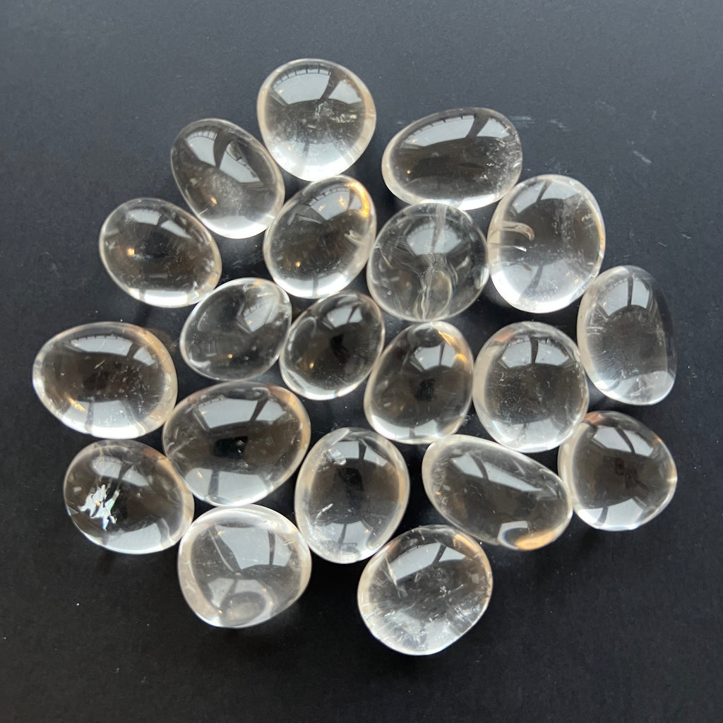 Fragments of solidified light, smoothed by time and water. Each one ICY colorless quartz rolled stone it carries a crystalline transparency reminiscent of pure ice – clear, calm and full of inner peace. The smooth, slightly glossy surface reveals delicate natural inclusions and subtle reflections that give the impression of a living light, trapped within the stone.