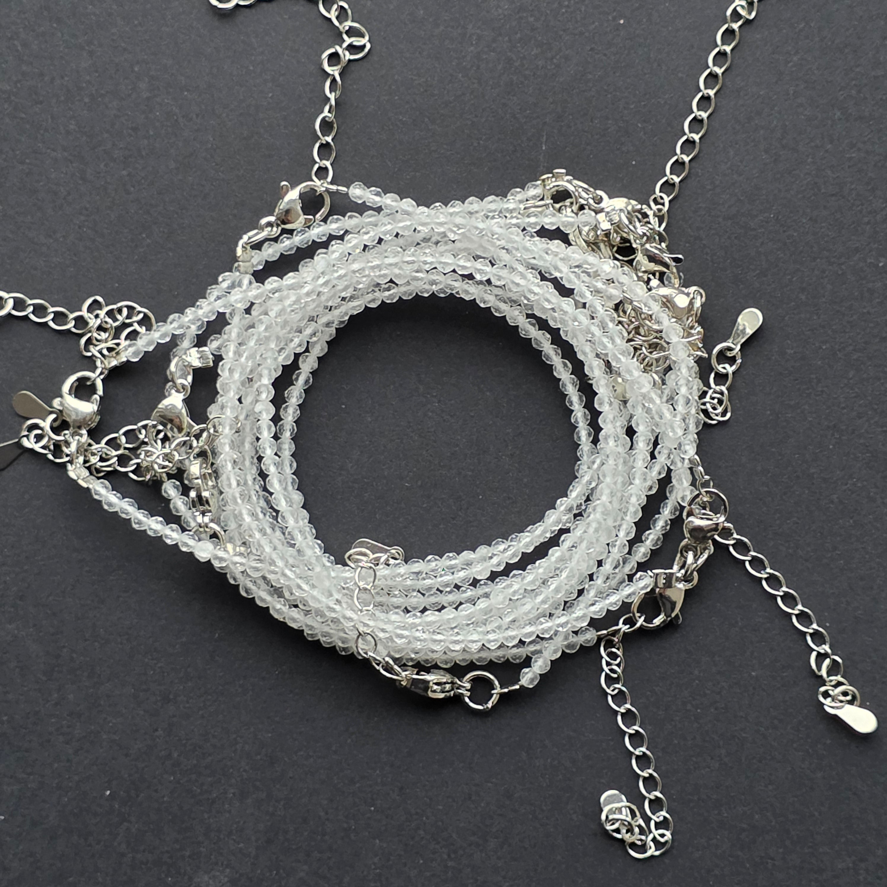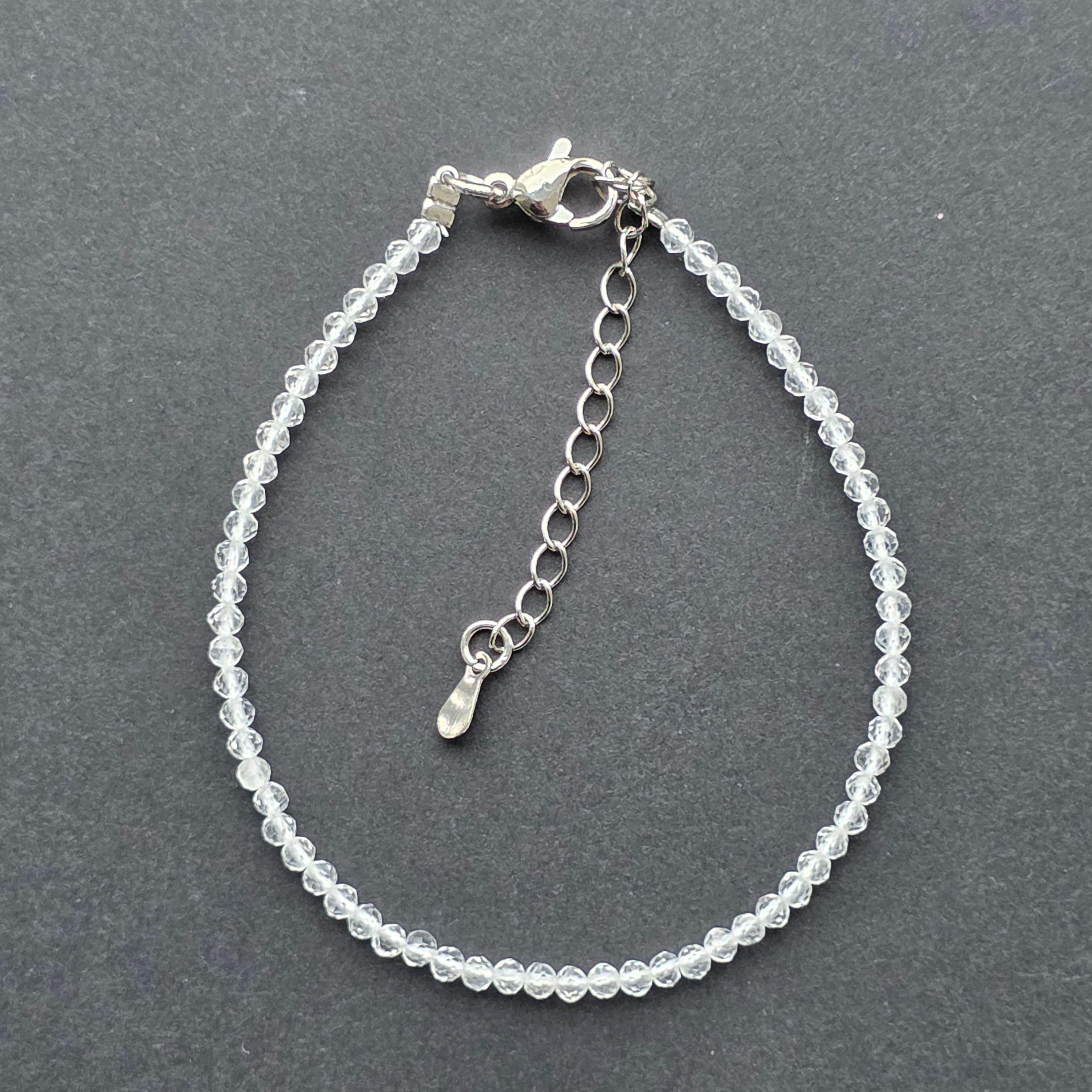 Description - 2 mm adjustable rock quartz/colorless crystal bracelet