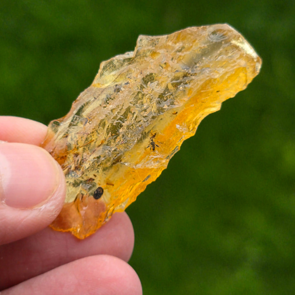 Copalul, adesea numit și rășină subfosilă, este forma timpurie a chihlimbarului – o rășină naturală care și-a păstrat lumina solară și transparența, înainte de a intra în adevărata fosilizare geologică. Provenit din arbori tropicali, acest material delicat poartă în el memoria câtorva secole sau milenii, captând fragmente din viața pădurii așa cum existau cândva. Este mai ușor, mai cald la atingere și mai luminos decât chihlimbarul matur, iar aspectul său suav îl face ideal pentru colecționari, creatori de bijuterii și iubitori de piese naturale cu poveste. În copal, timpul nu este încă piatră – este încă lumină, încă mișcare, încă promisiune.