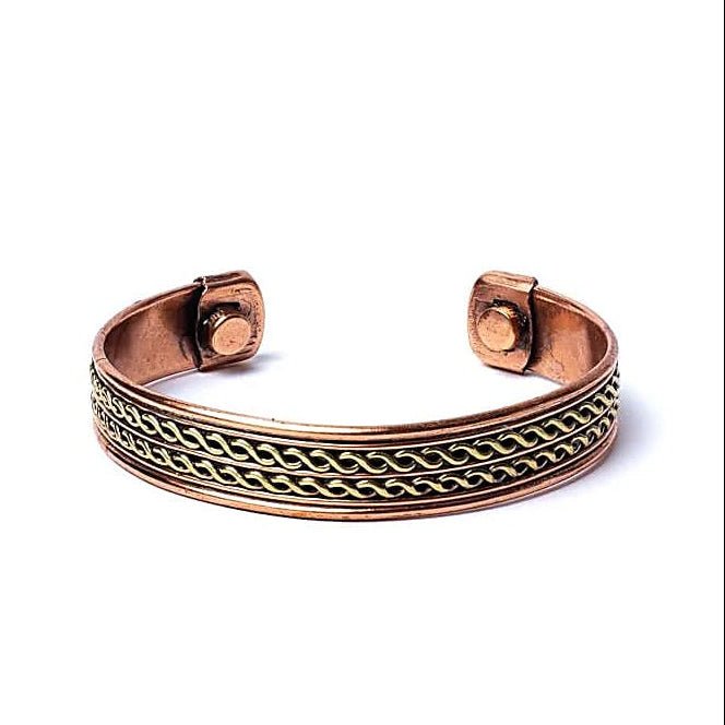 This magnetic copper bracelet combines the simple elegance of pure copper with the benefits of magnet therapy. Made from solid copper with 99.99% purity, the bracelet features an adjustable design suitable for any wrist and integrates 2 ultra-strong magnets, designed to provide energetic support and balance.