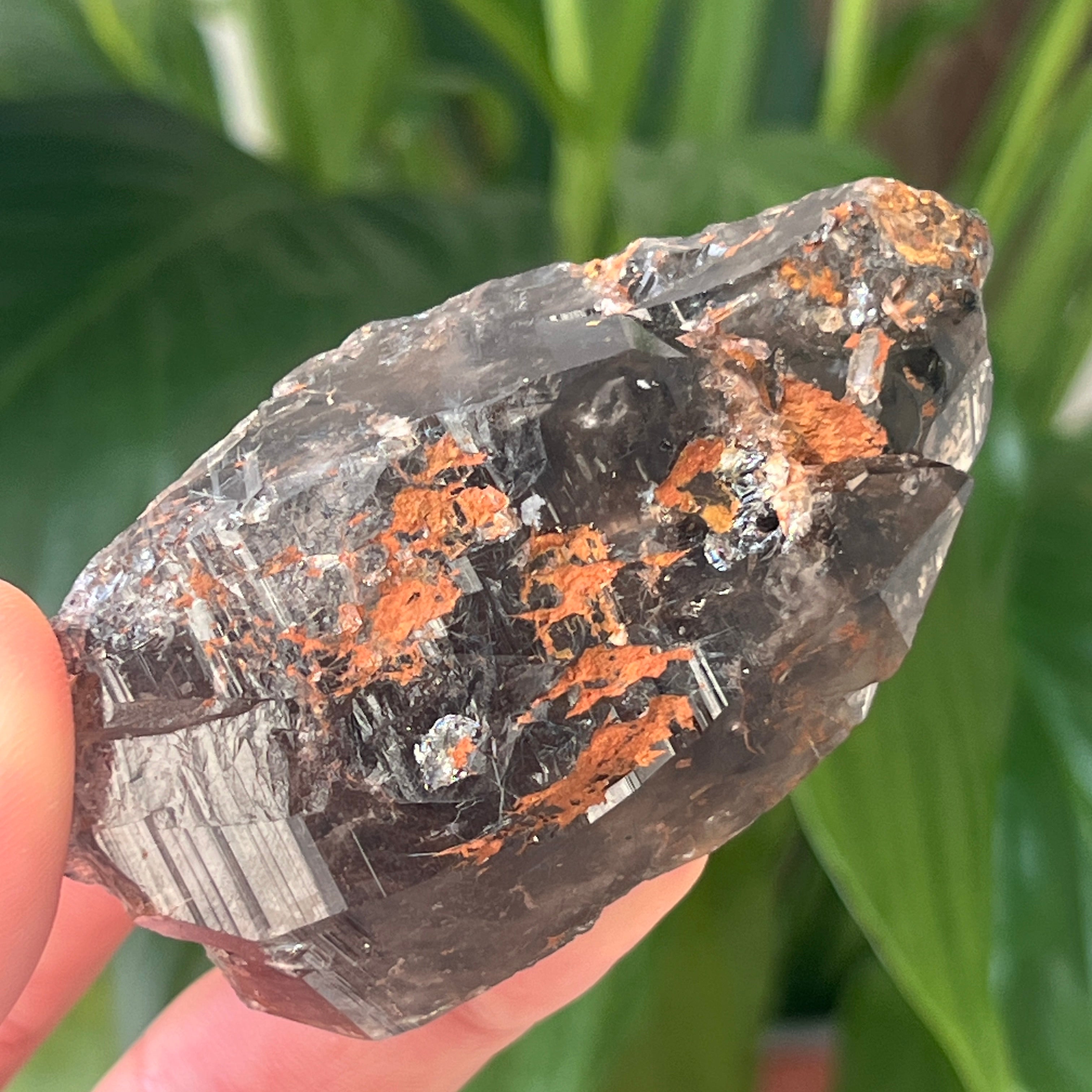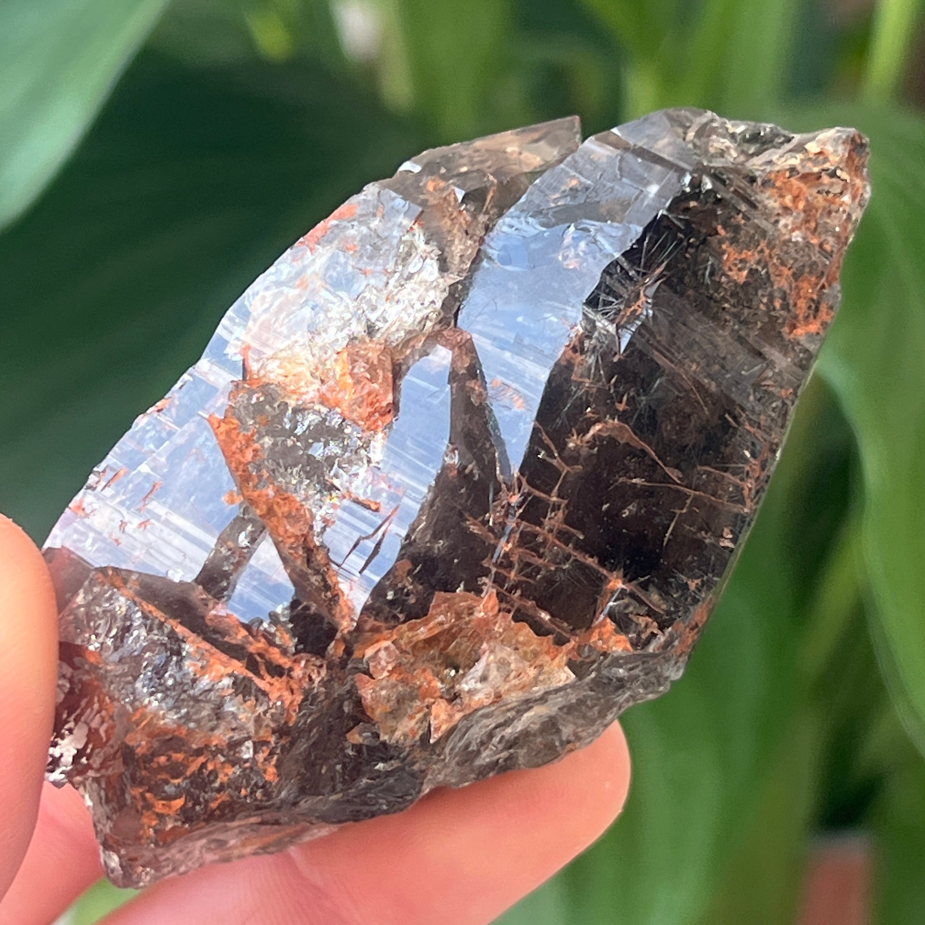 Cuarțul fumuriu din această zonă este deosebit de apreciat pentru claritatea sa naturală, nuanțele calde de maro translucid până la brun intens, și formele perfect dezvoltate în sistem trigonal. Unele cristale prezintă terminații duble, forme sceptre sau incluziuni fascinante – de la vapori hidrotermali și bule mobile, până la urme de hematit ori rutil. Prezența naturală a radiațiilor din rocile înconjurătoare în timpul formării cristalului conferă această tentă fumurie autentică, fără tratamente termice sau intervenții umane.