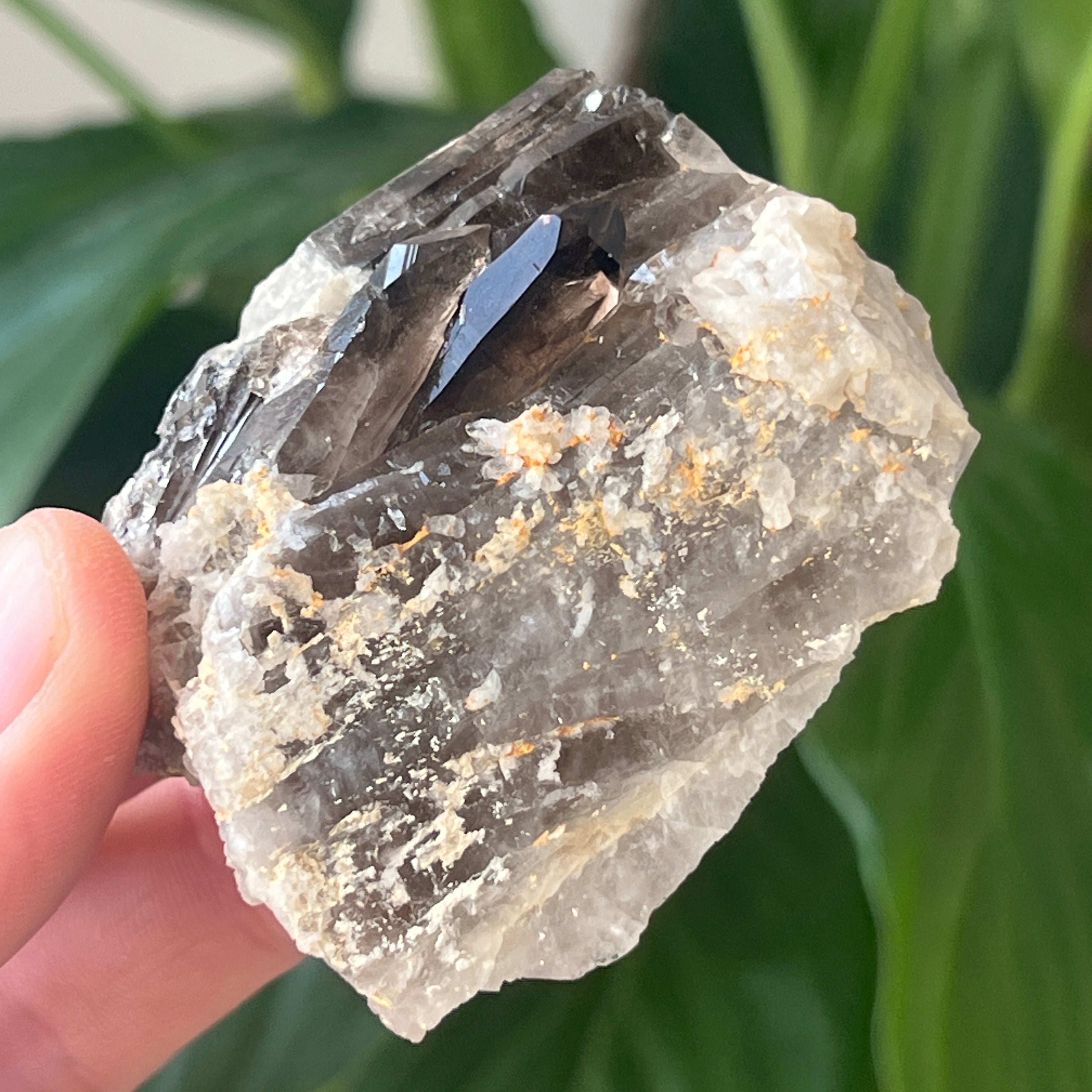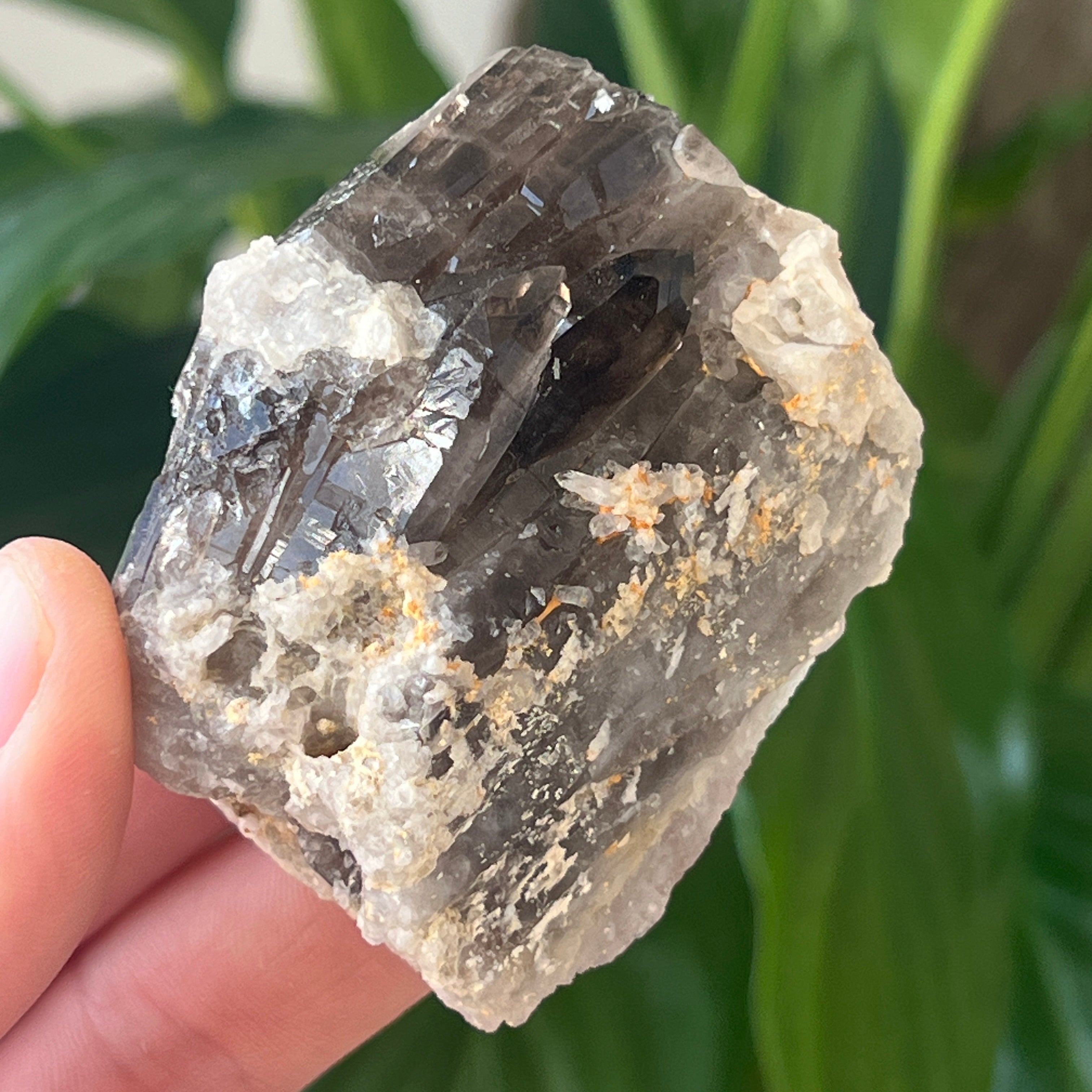 Cuarțul fumuriu din această zonă este deosebit de apreciat pentru claritatea sa naturală, nuanțele calde de maro translucid până la brun intens, și formele perfect dezvoltate în sistem trigonal. Unele cristale prezintă terminații duble, forme sceptre sau incluziuni fascinante – de la vapori hidrotermali și bule mobile, până la urme de hematit ori rutil. Prezența naturală a radiațiilor din rocile înconjurătoare în timpul formării cristalului conferă această tentă fumurie autentică, fără tratamente termice sau intervenții umane.