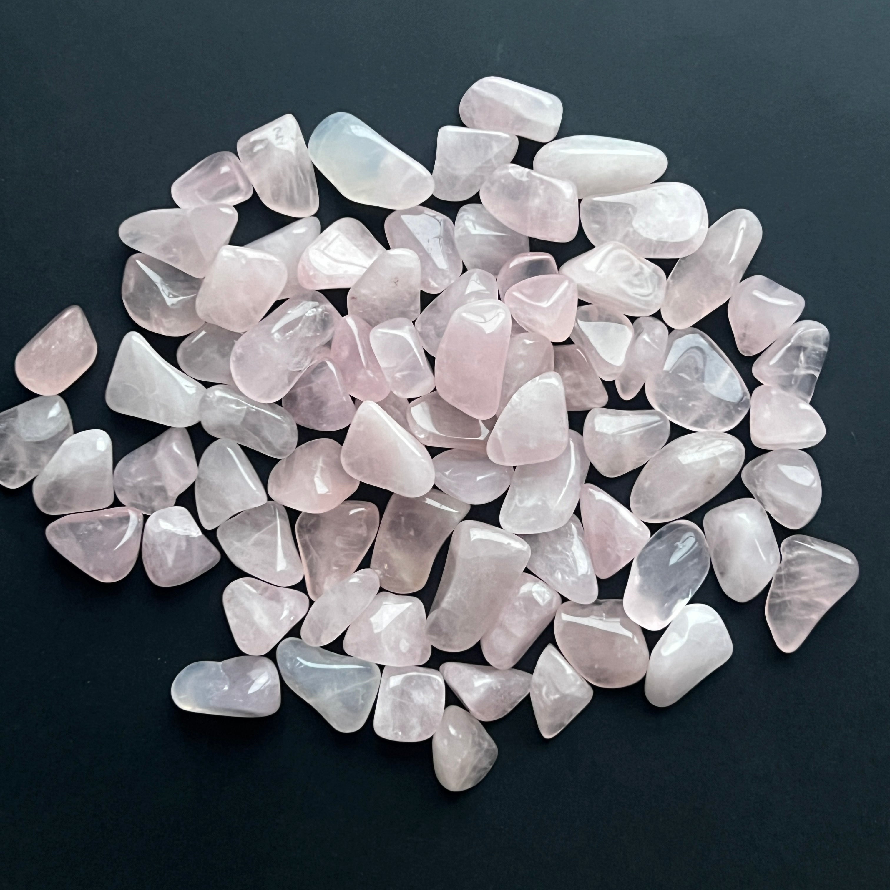Cuartul roz din Africa de Sud este apreciat pentru nuanțele sale calde și luminoase, care variază de la roz pal translucid până la tonuri mai saturate, lăptoase și delicate. În forma de chipsuri, aceste fragmente mari dezvăluie naturalețea pietrei: texturi fine, transparențe subtile și incluziuni delicate ce conferă profunzime fiecărui cristal.